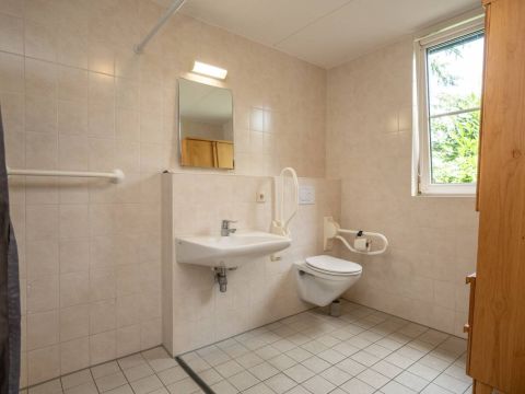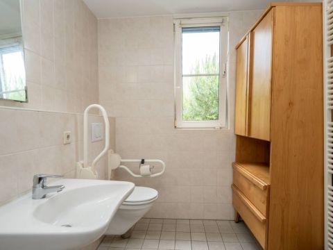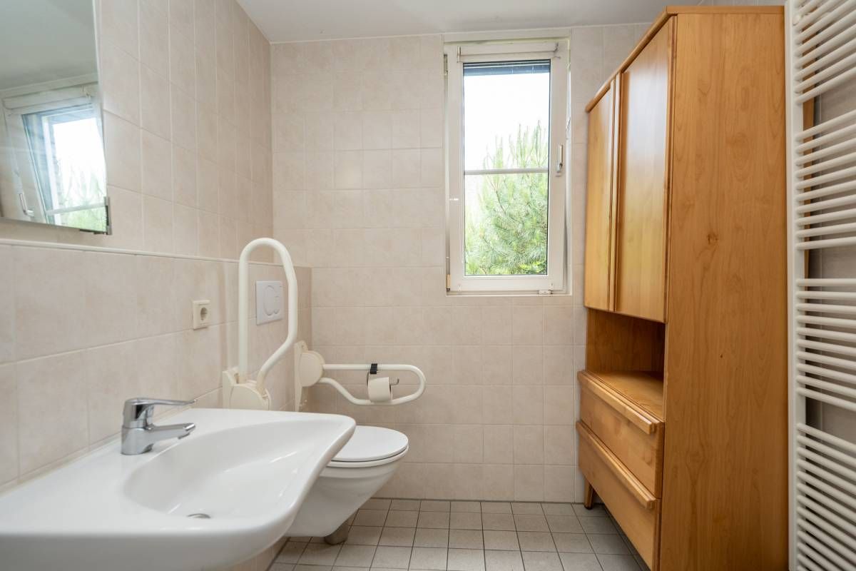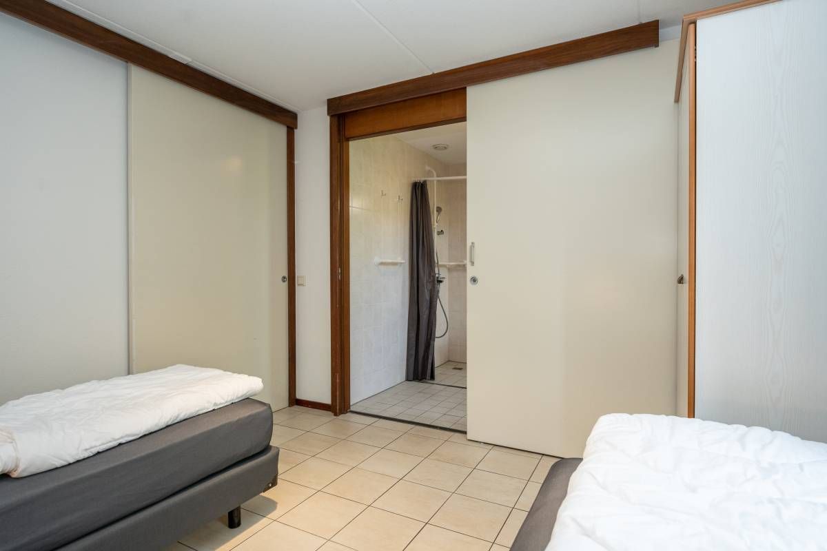 Via de hal komt u in de slaapkamer op de begane grond, deze is ruim van opzet met voldoende kastruimte en een schuifdeur naar de naastgelegen badkamer. De royale badkamer heeft een inloopdouche, wastafel, vrijhangend toilet en designradiator. De badkamer is ook uitermate geschikt voor mindervaliden.