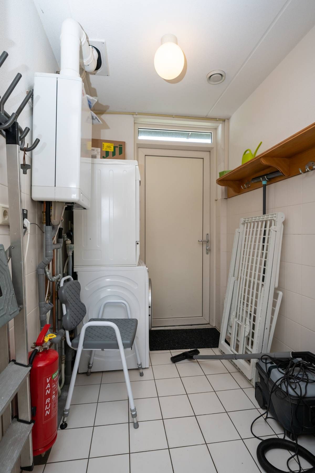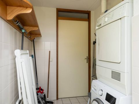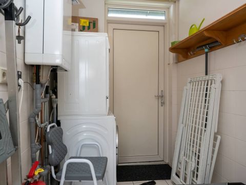 Tevens vindt u in de hal het separate toilet en de berging waar zich de opstelplaats bevindt voor de wasmachine en droger alsmede de HR CV-ketel.