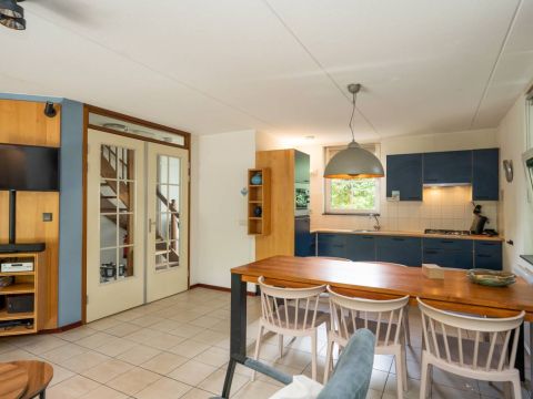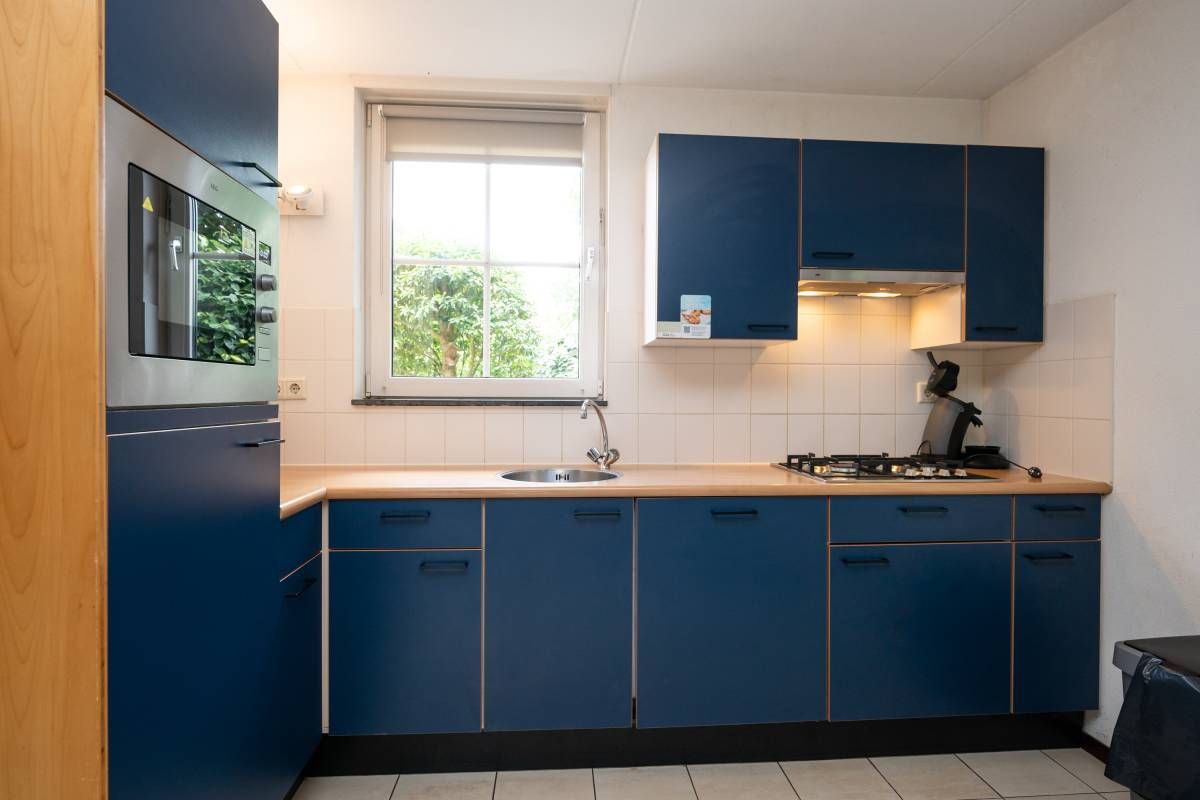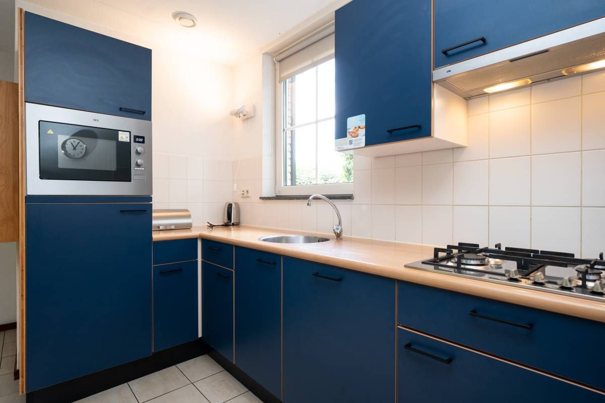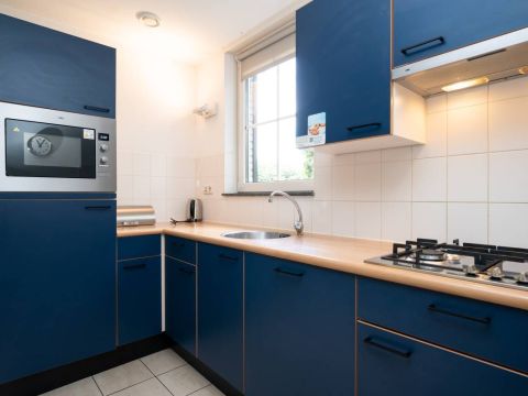 De keurige keuken beschikt over alle benodigde inbouwapparatuur o.a. gaskookplaat, vaatwasmachine, koelkast, oven en afzuigkap. Hier kunt u een heerlijke maaltijd bereiden terwijl u contact houdt met het gezelschap aan de eettafel of zithoek.