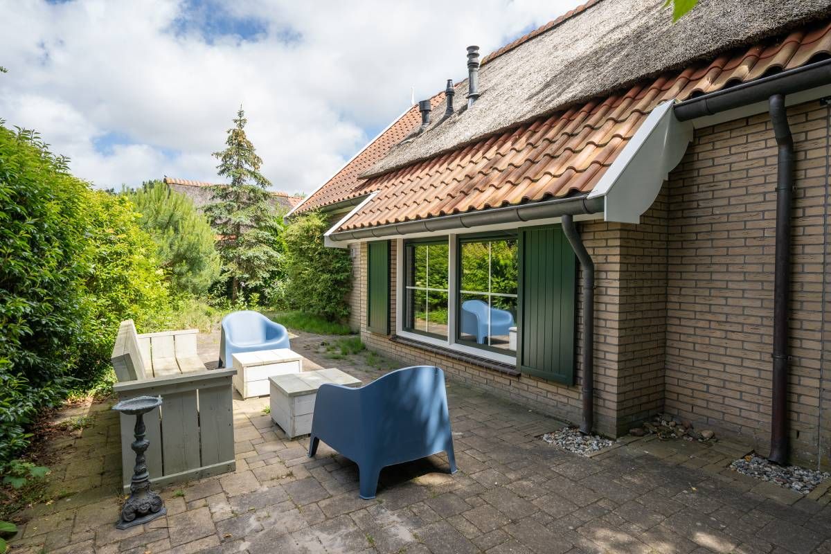 In het groen verscholen vindt u deze prachtige rietgedekte villa gelegen op “Villapark Kustpark Texel” nabij bos, duinen en Noordzeestrand, op een perceel eigen grond van 525 m².