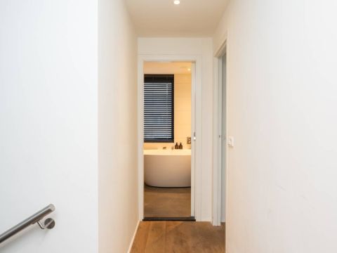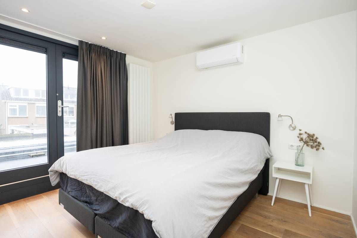 Op de eerste verdieping vindt u twee ruime slaapkamers, waarvan één met openslaande deur naar het platte dak, airco en zonnescreen. De gehele verdieping is voorzien van prachtige eiken vloerdelen.