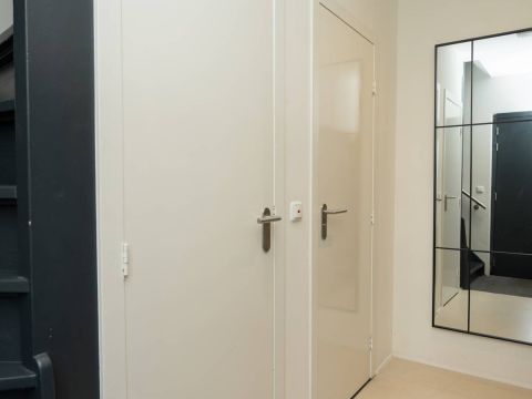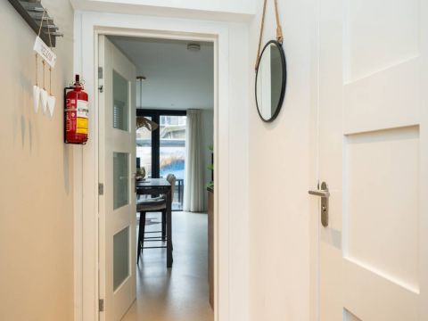 Aan de linkerzijde van de woning bevindt zich de recreatiewoning met eigen ingang. Deze woning is sfeervol ingericht en uitstekend onderhouden, ideaal voor verhuur of gasten. In de hal treft u de garderobe en het toilet, waarna toegang tot de woonkamer.