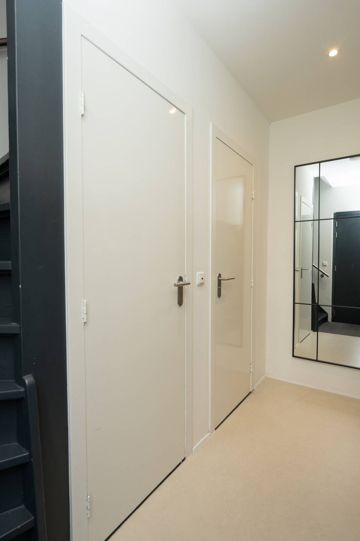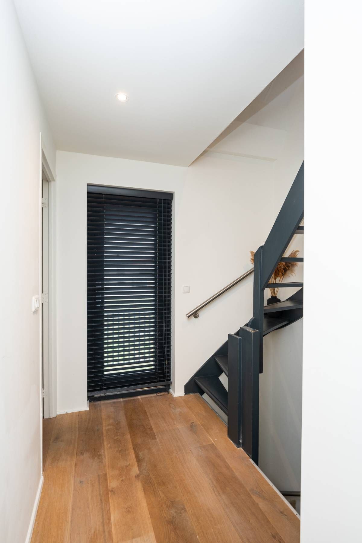 Via de entree komt u in de hal met trapopgang, trapkast, meterkast en modern toilet. Vanuit de hal bereikt u de lichte, sfeervolle woonkamer met veel daglicht door de grote raampartijen, een gezellige erker aan de voorzijde en een schuifpui naar de achtertuin.