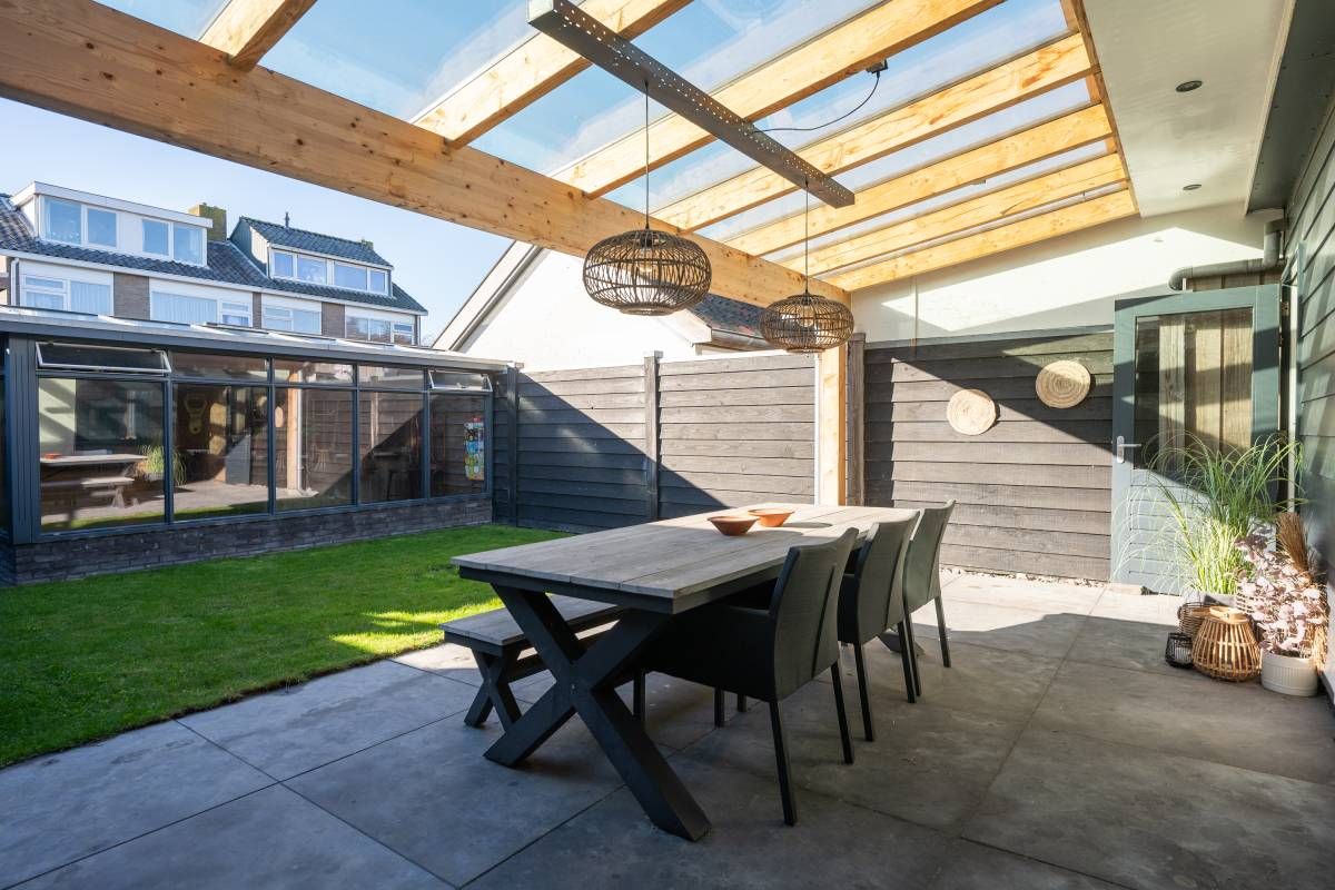 Achter de woning een heerlijke en keurig aangelegde tuin. Aan de woning is een prachtige overkapping/veranda gerealiseerd waar u heerlijk kunt zitten. De veranda is voorzien van zonwerend glas.