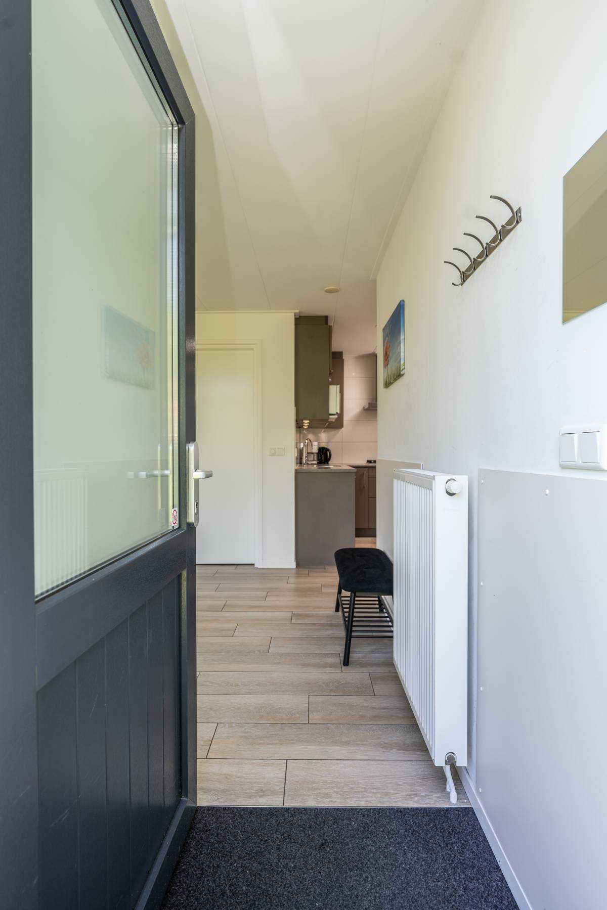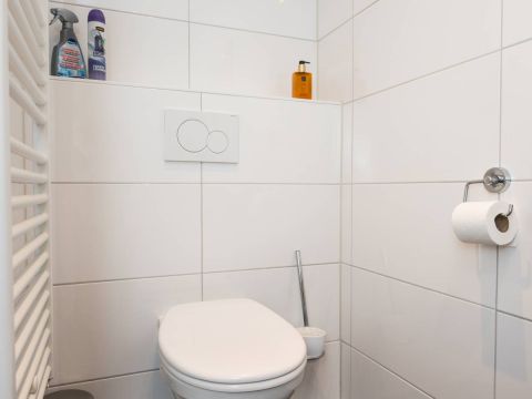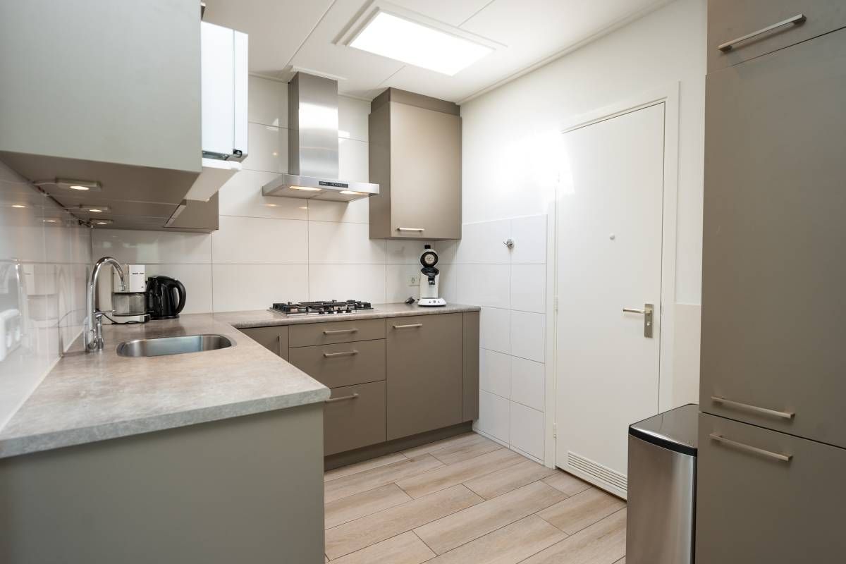 Op de vloer liggen keurige plavuizen wat een strakke look geeft en tevens onderhoudsvriendelijk is.