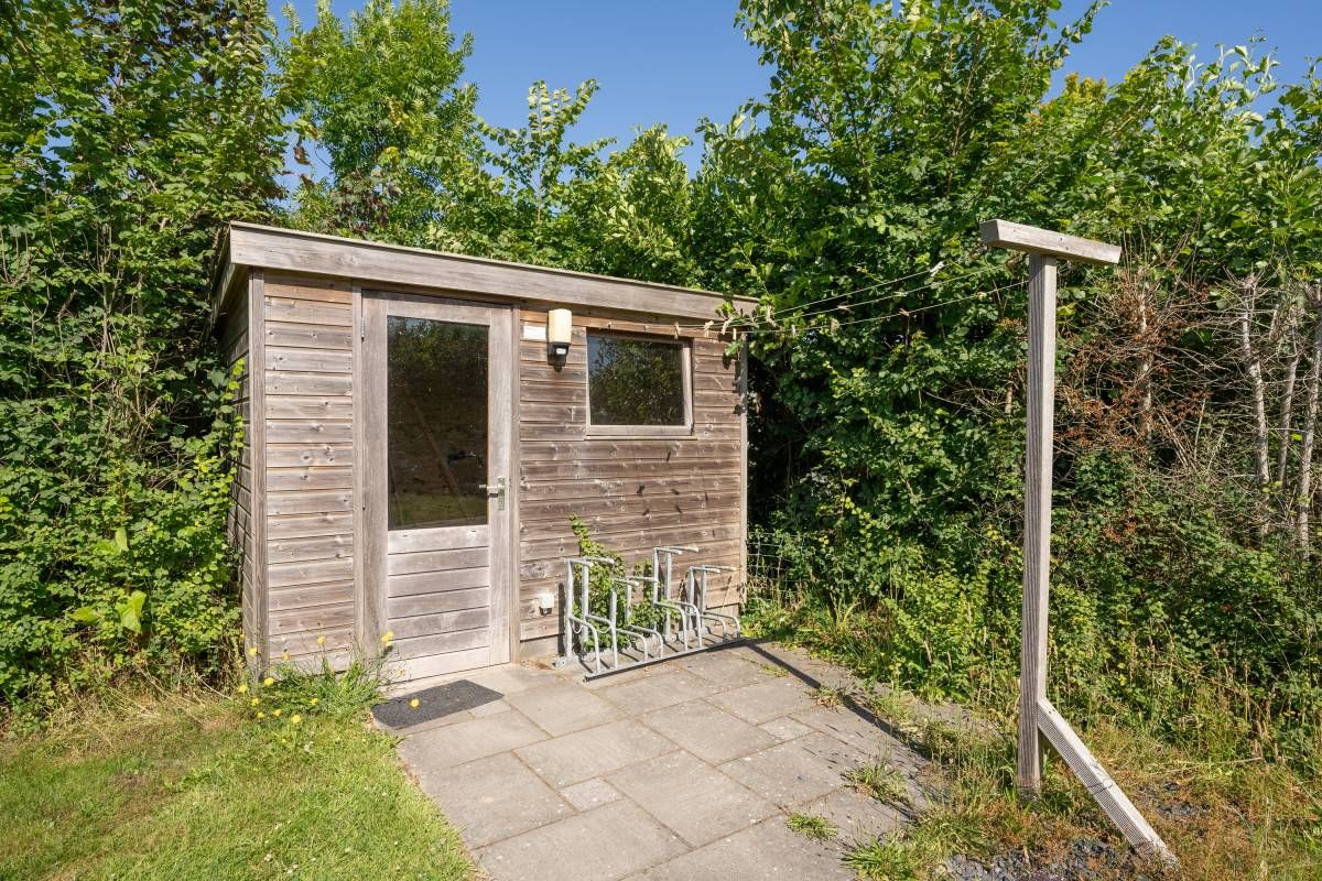 In de tuin treft u nog een vrijstaand houten tuinhuisje, ideaal voor het opbergen van uw tuinmeubelen en/of fietsen.