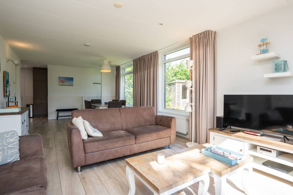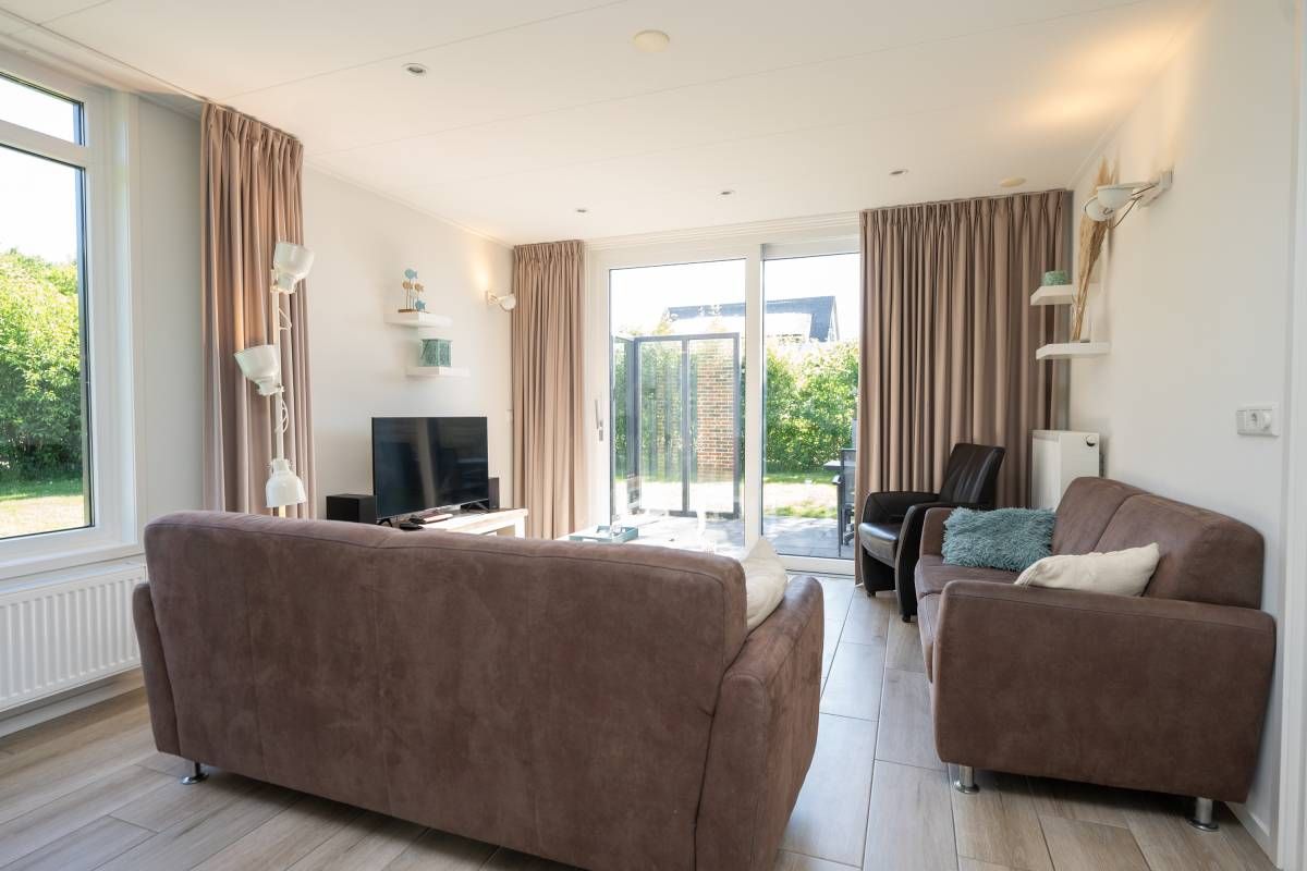 Stap binnen en u voelt zich hier direct thuis. De woonkamer is licht en gezellig, met een comfortabele zithoek waar je heerlijk kunt ontspannen na een dag op het eiland.