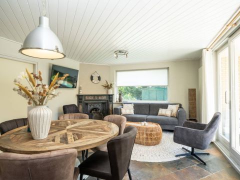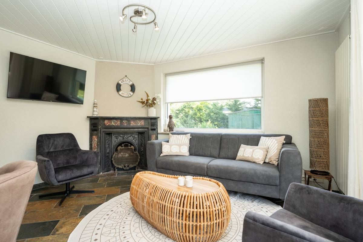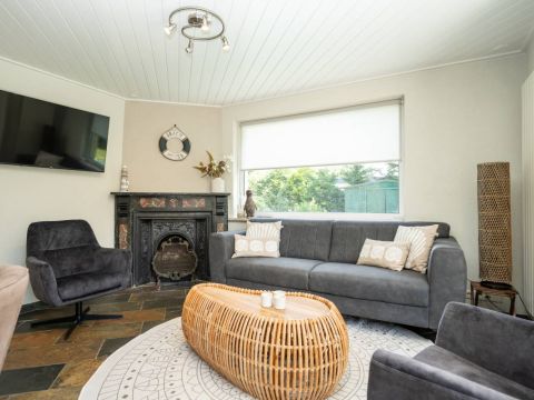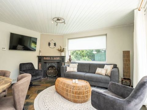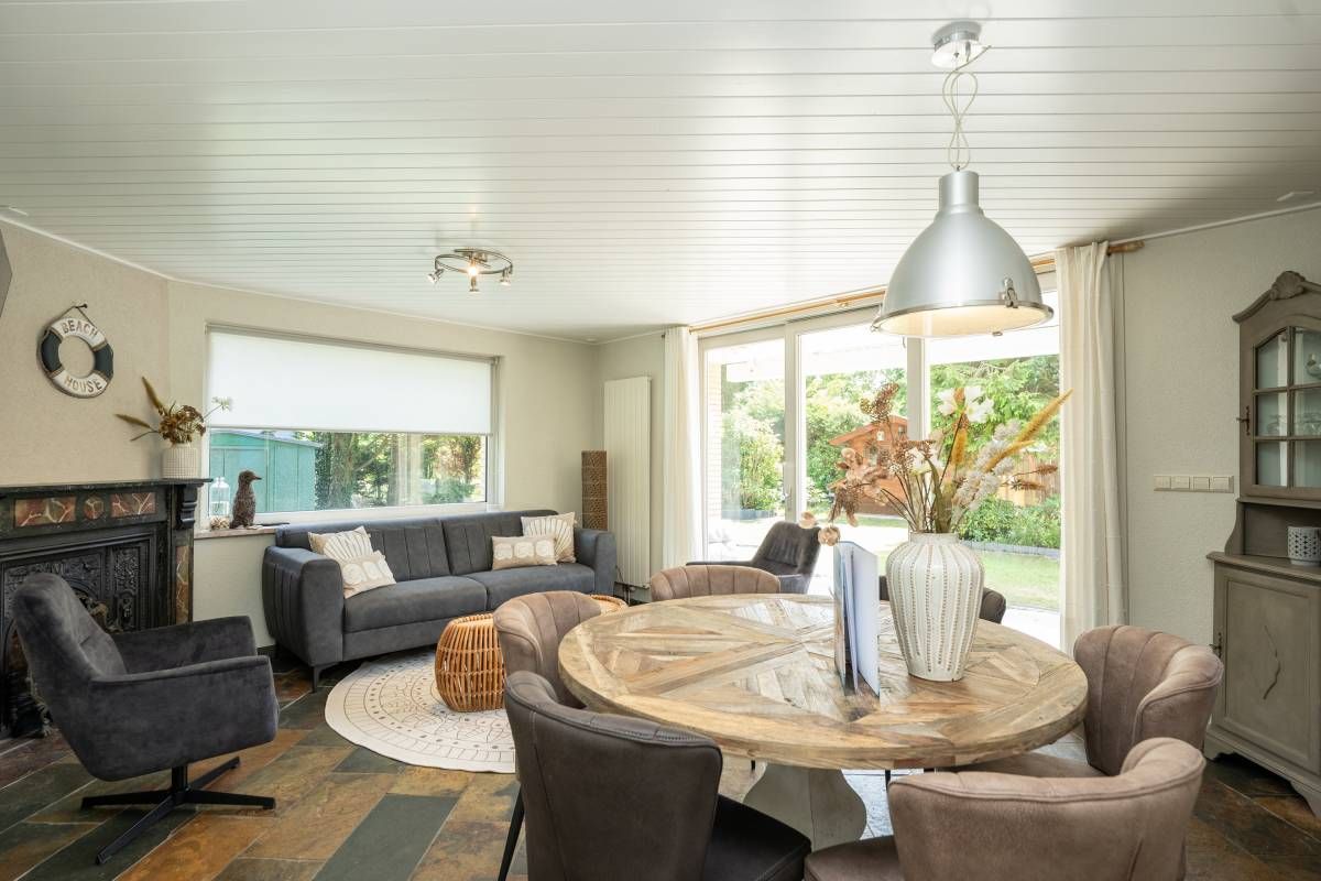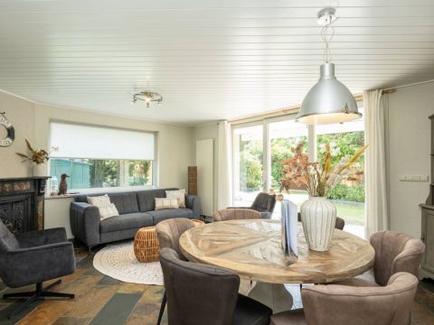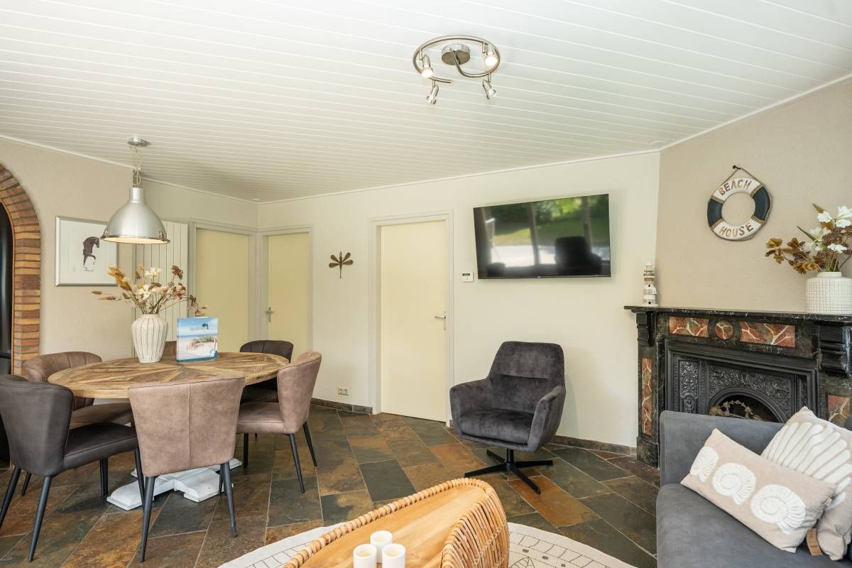 Via de keuken kom je in de warm ingerichte woonkamer ingericht met een comfortabele zithoek bij de openhaard waar je heerlijk kunt ontspannen en genieten van een haardvuur op de koudere dagen.