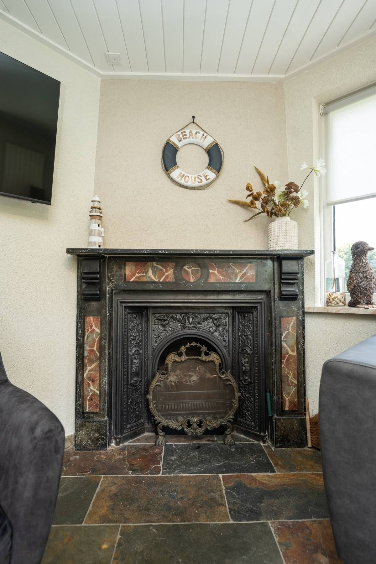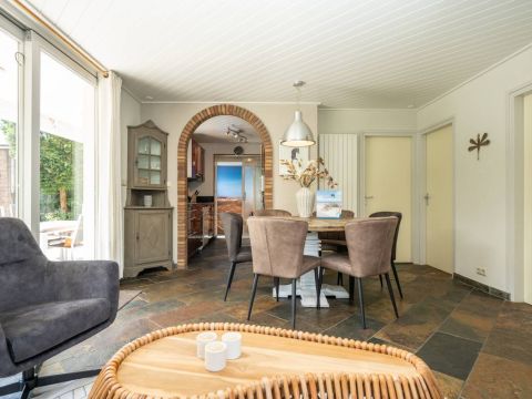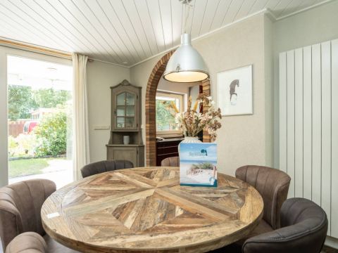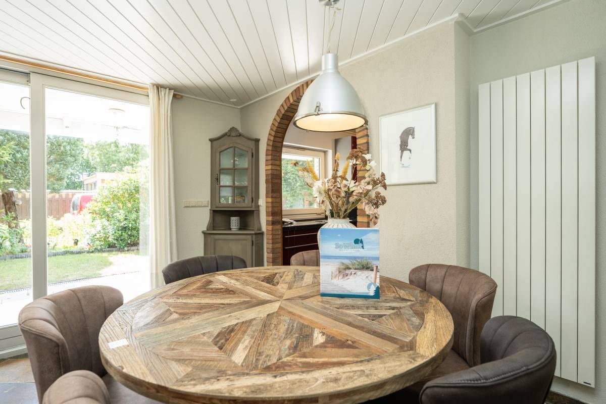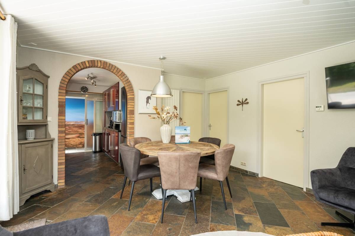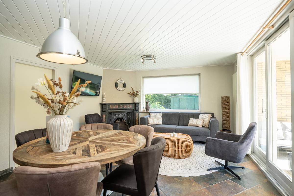 Via de keuken kom je in de warm ingerichte woonkamer ingericht met een comfortabele zithoek bij de openhaard waar je heerlijk kunt ontspannen en genieten van een haardvuur op de koudere dagen.