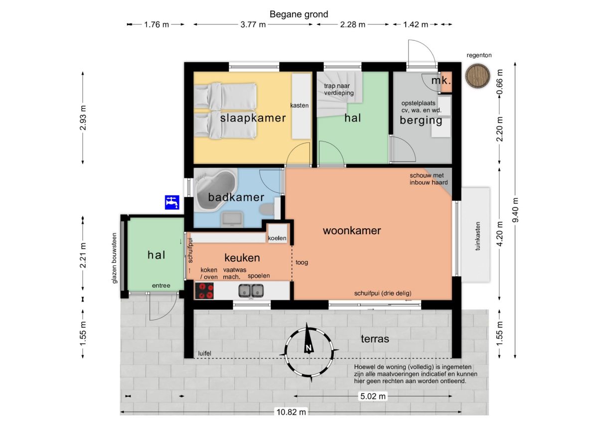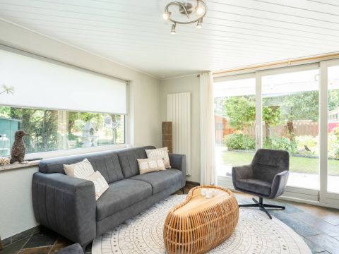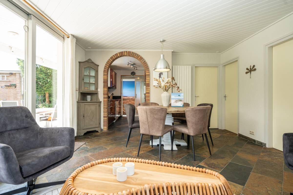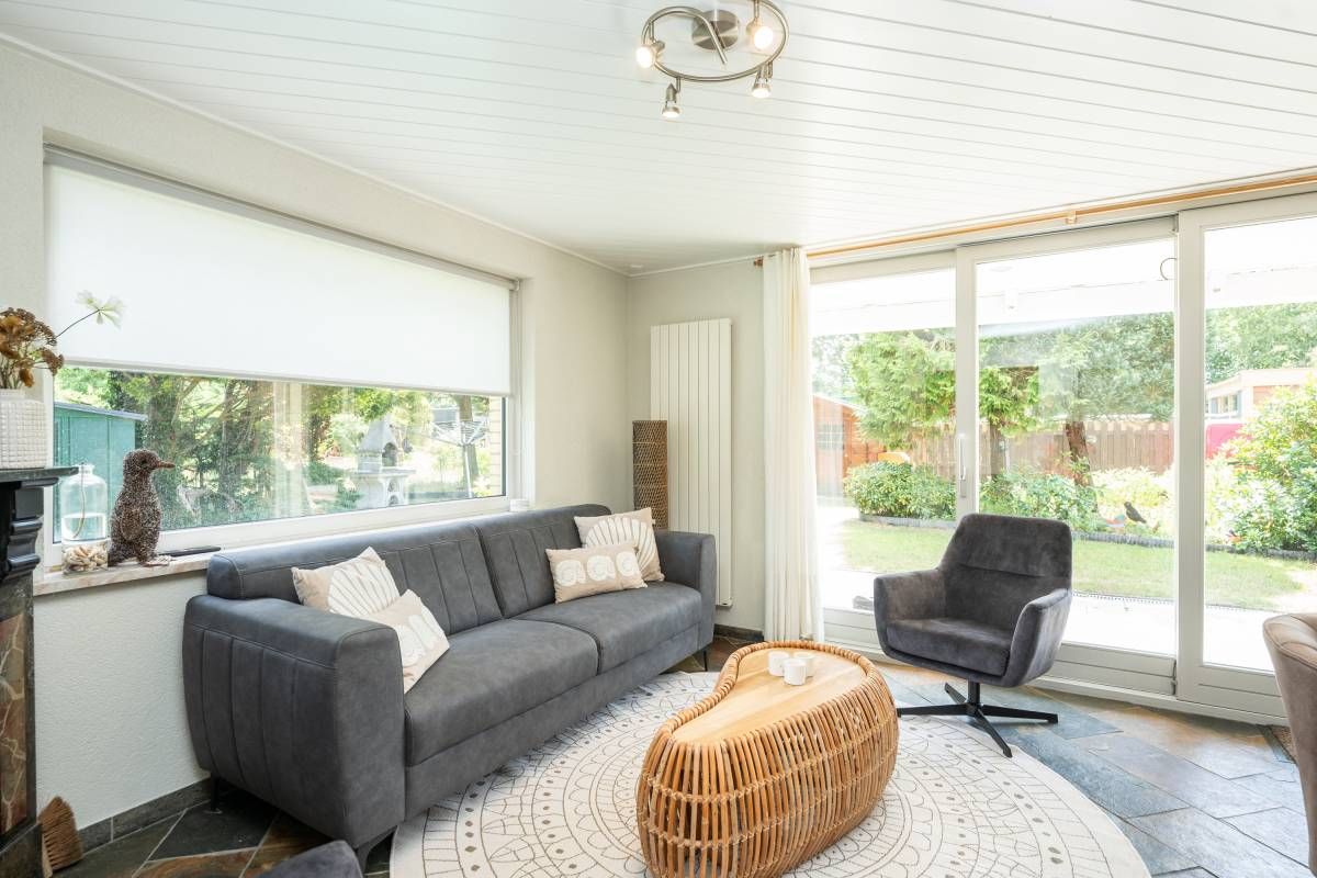 Dankzij de grote ramen en de schuifpui heeft de woning veel lichtinval en via de schuifpui komt u op het terras waar het in de zomer heerlijk vertoeven is.