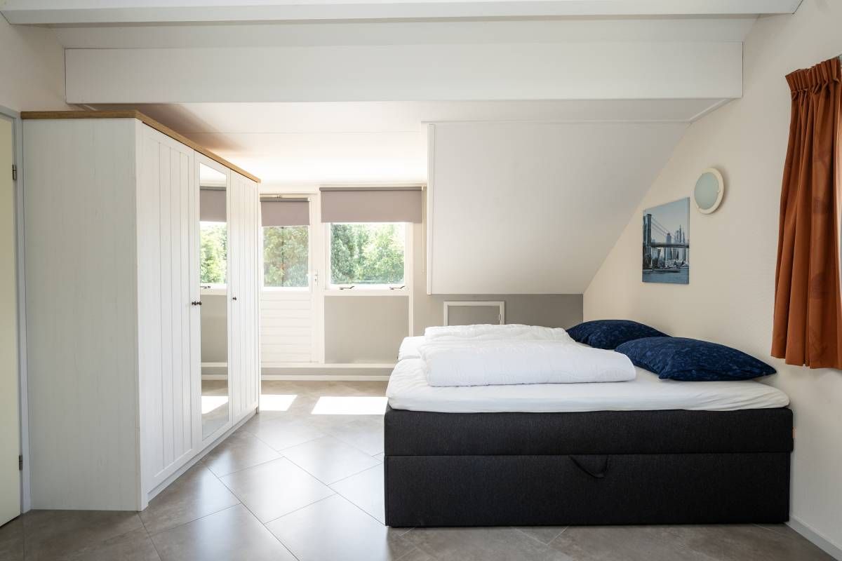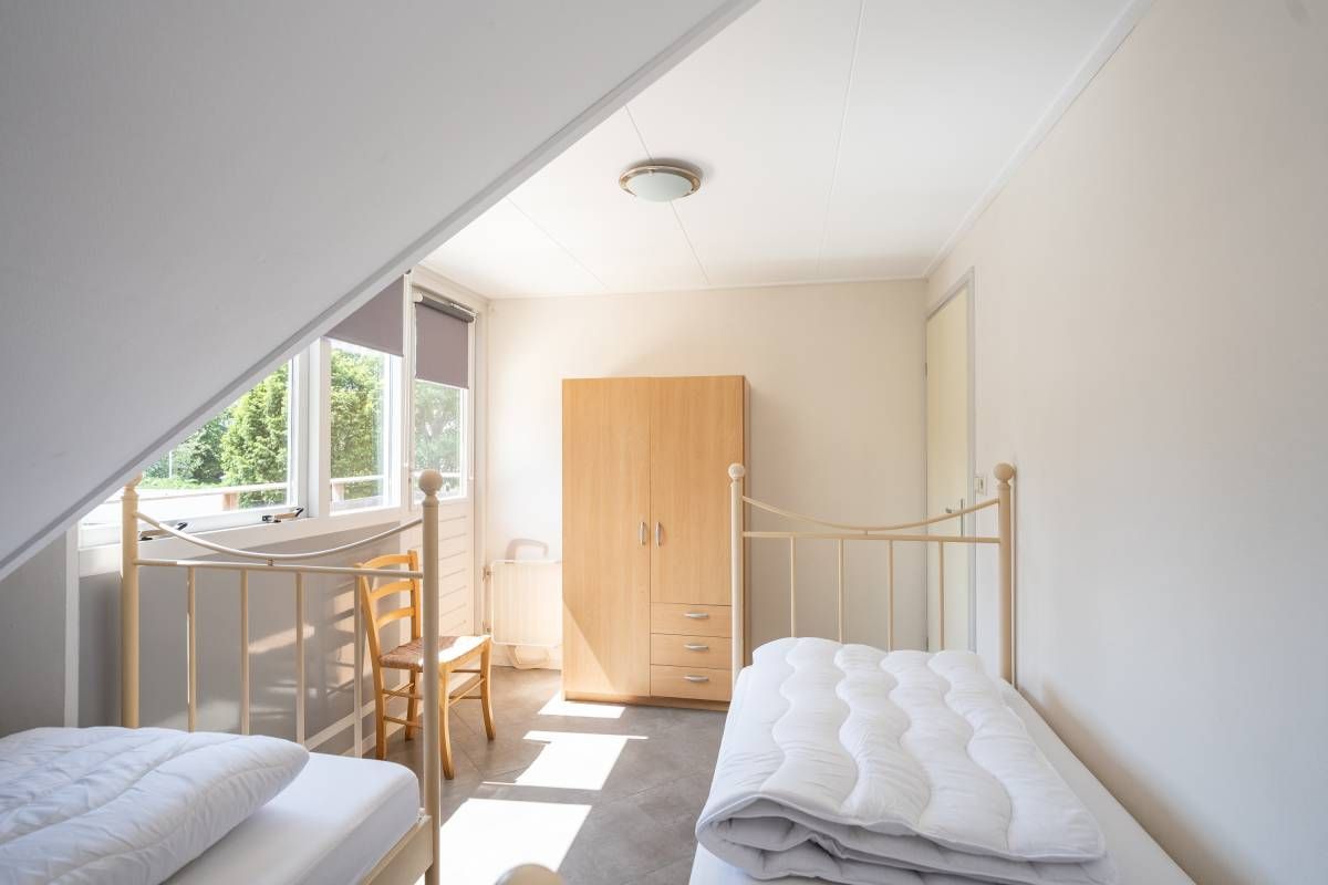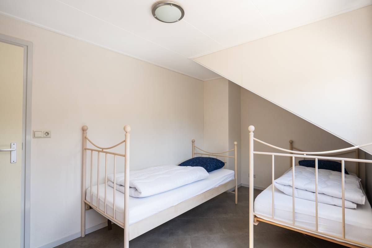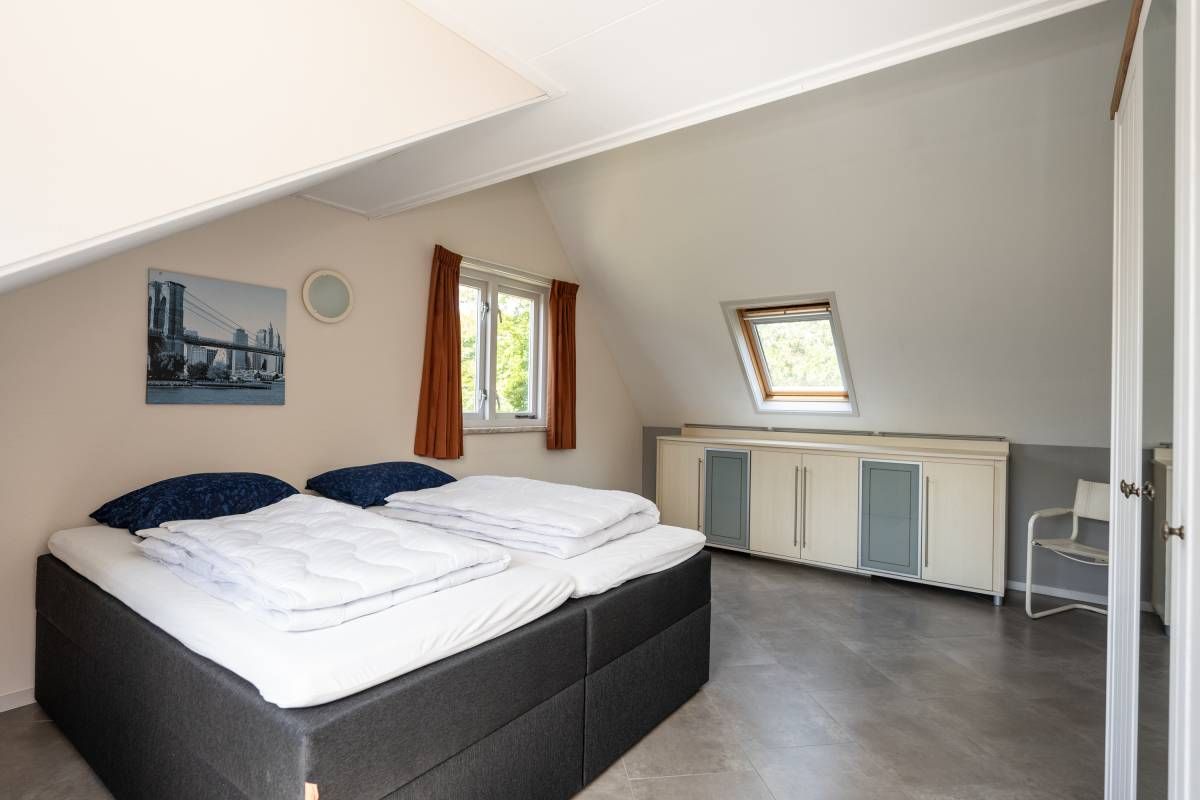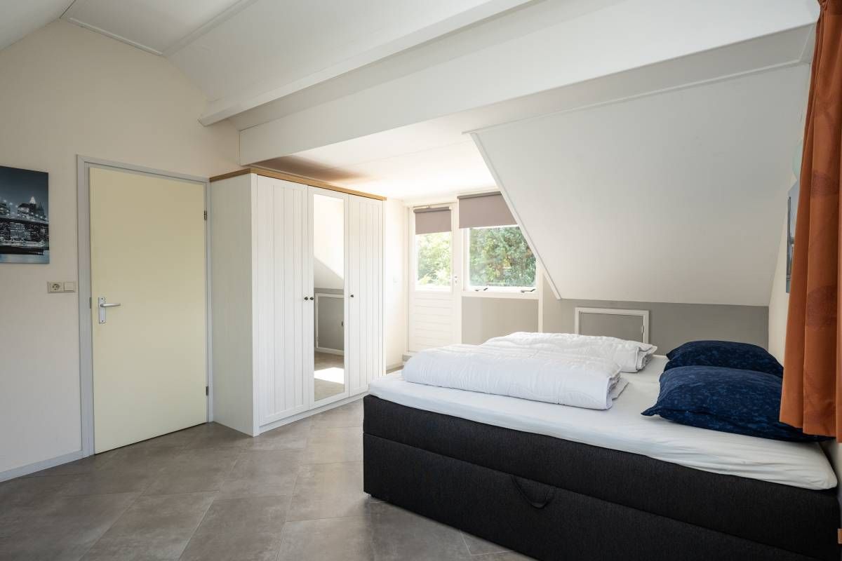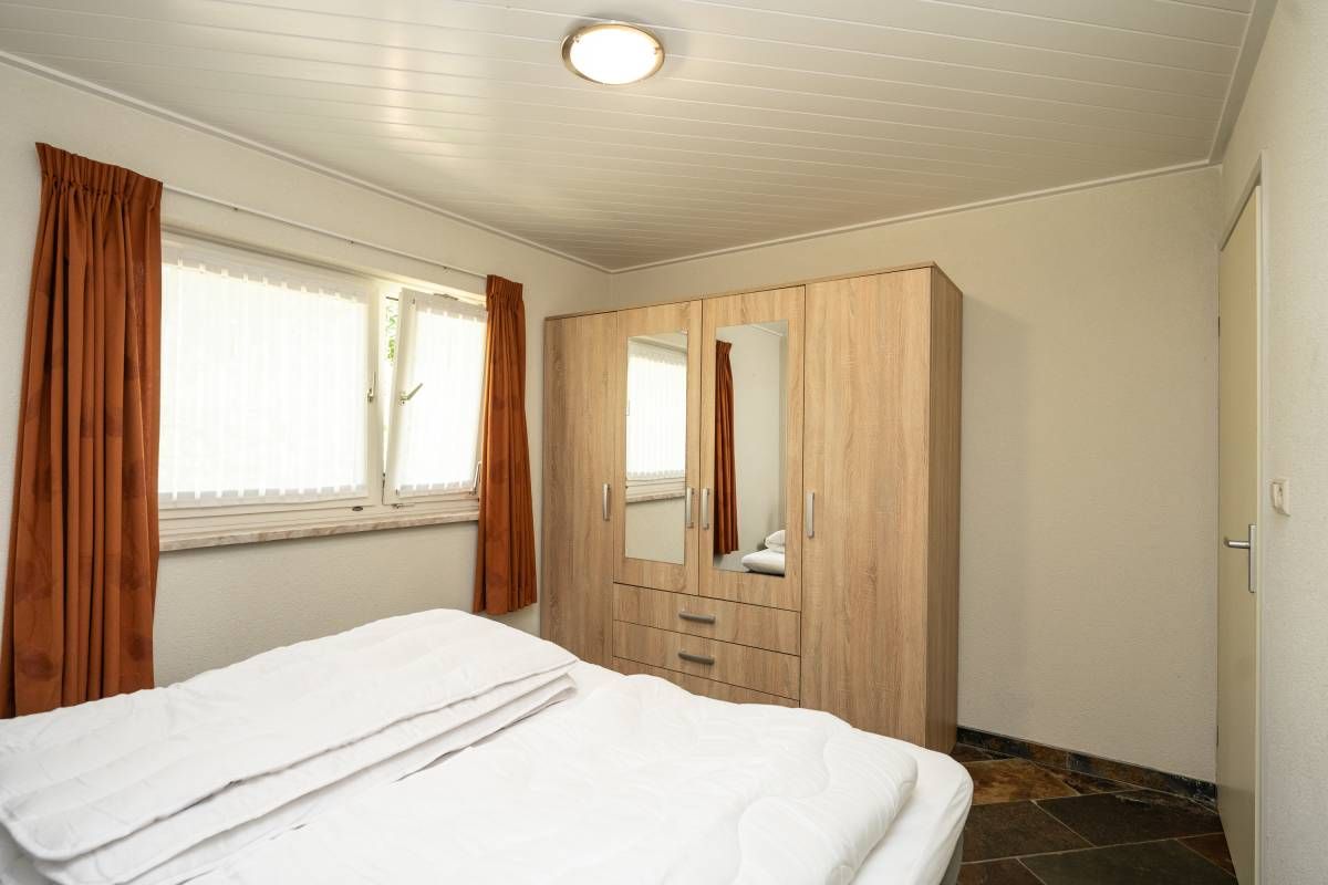 De woning beschikt over een tweepersoons slaapkamer op de beneden verdieping, met een ruime linnenkast.