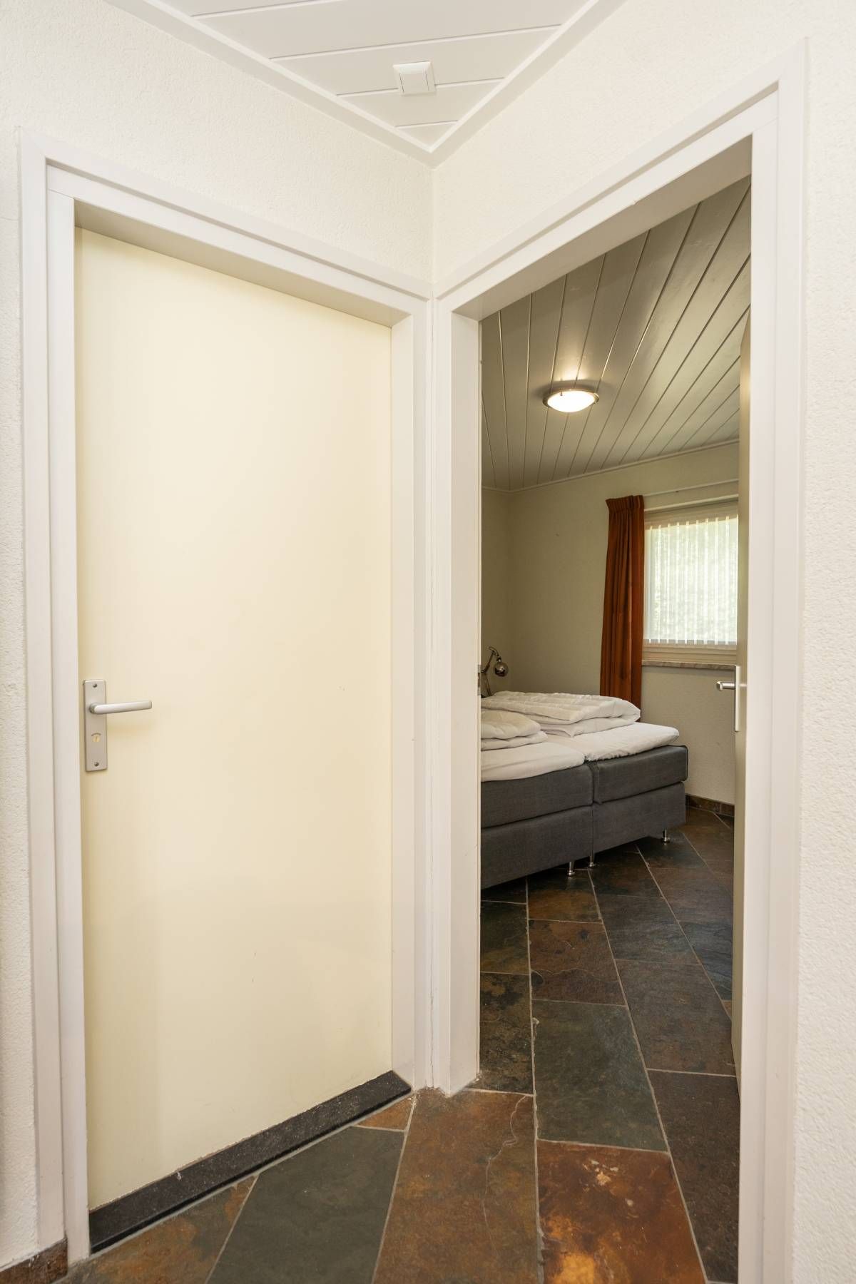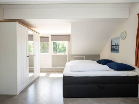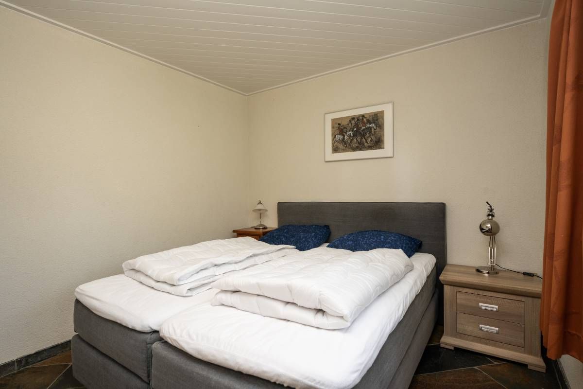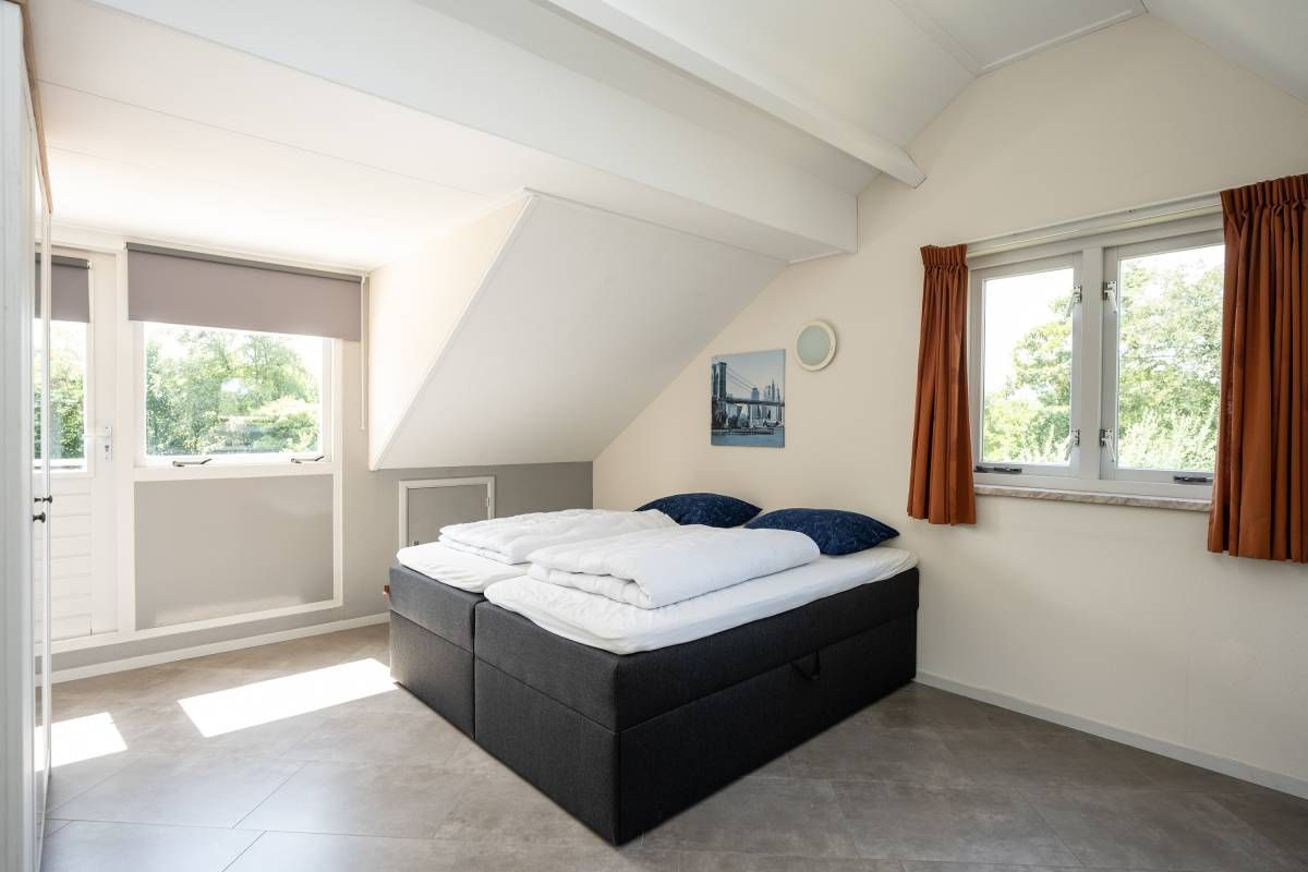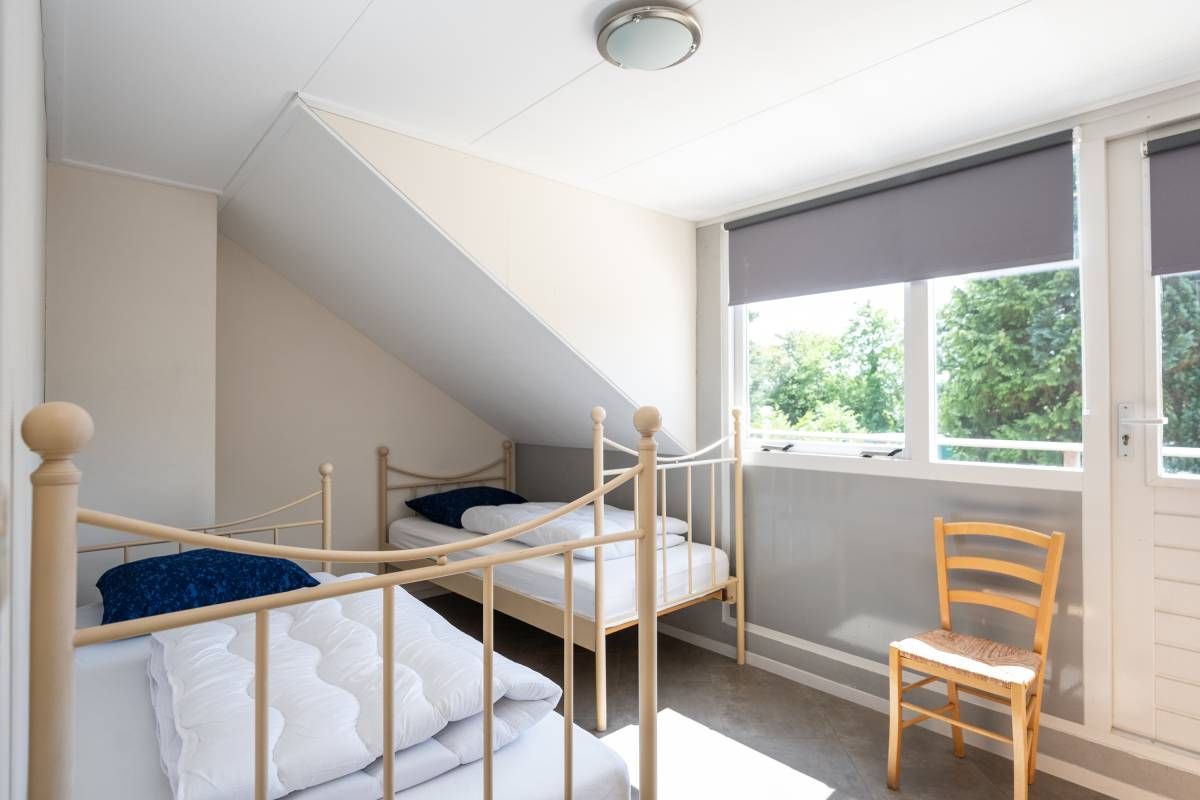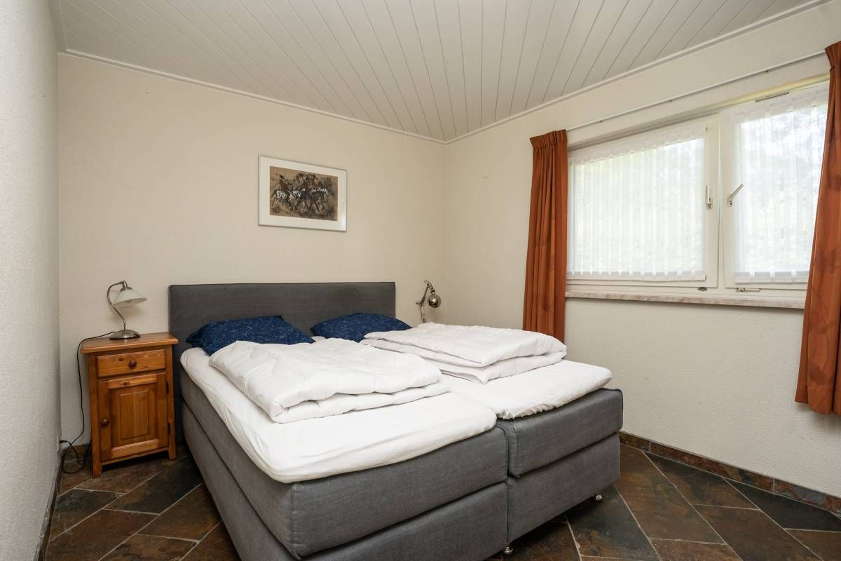 De woning beschikt over een tweepersoons slaapkamer op de beneden verdieping, met een ruime linnenkast.