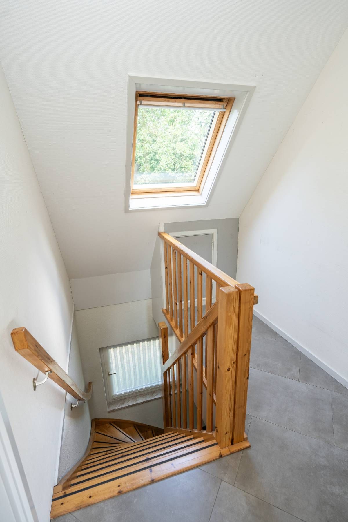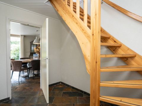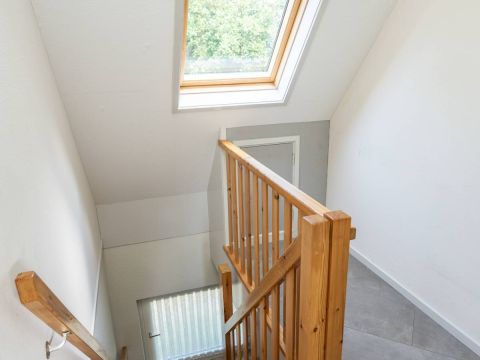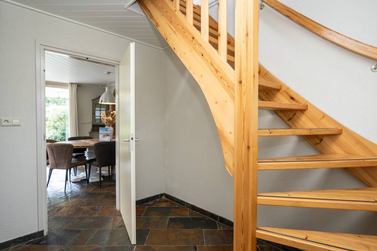 De trapopgang in de hal biedt toegang naar de verdieping met twee slaapkamers en een tweede badkamer.