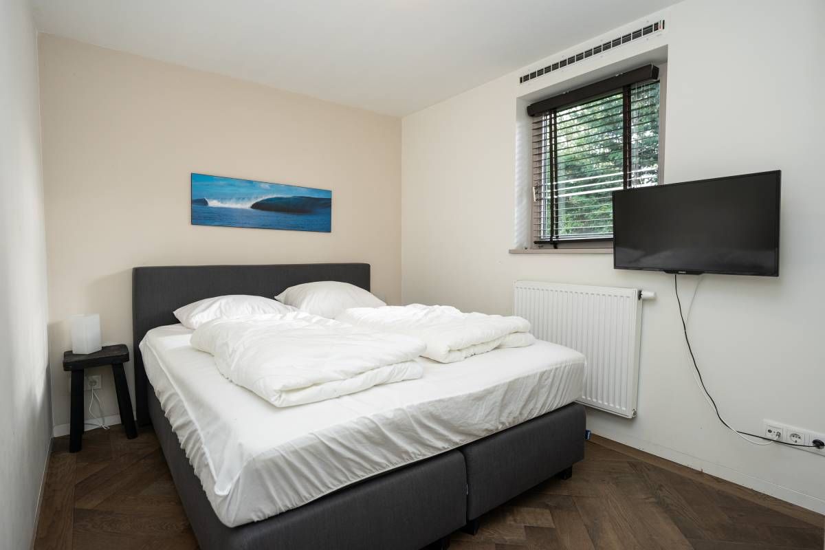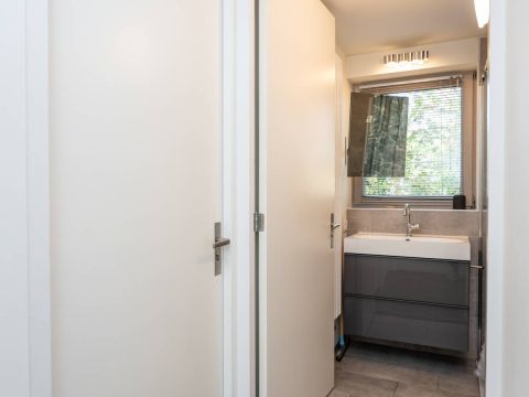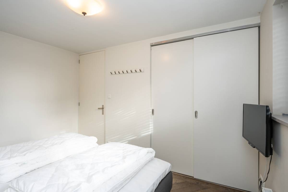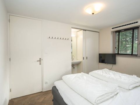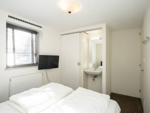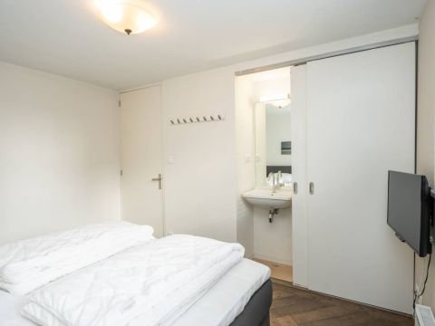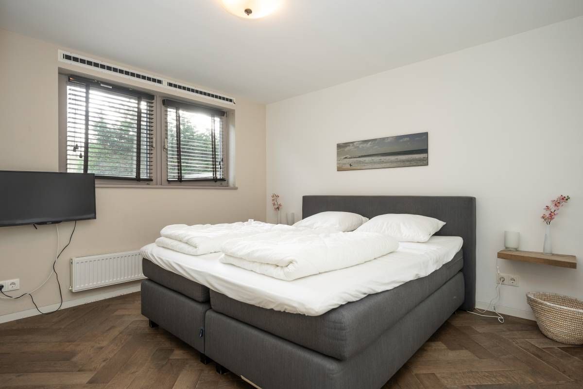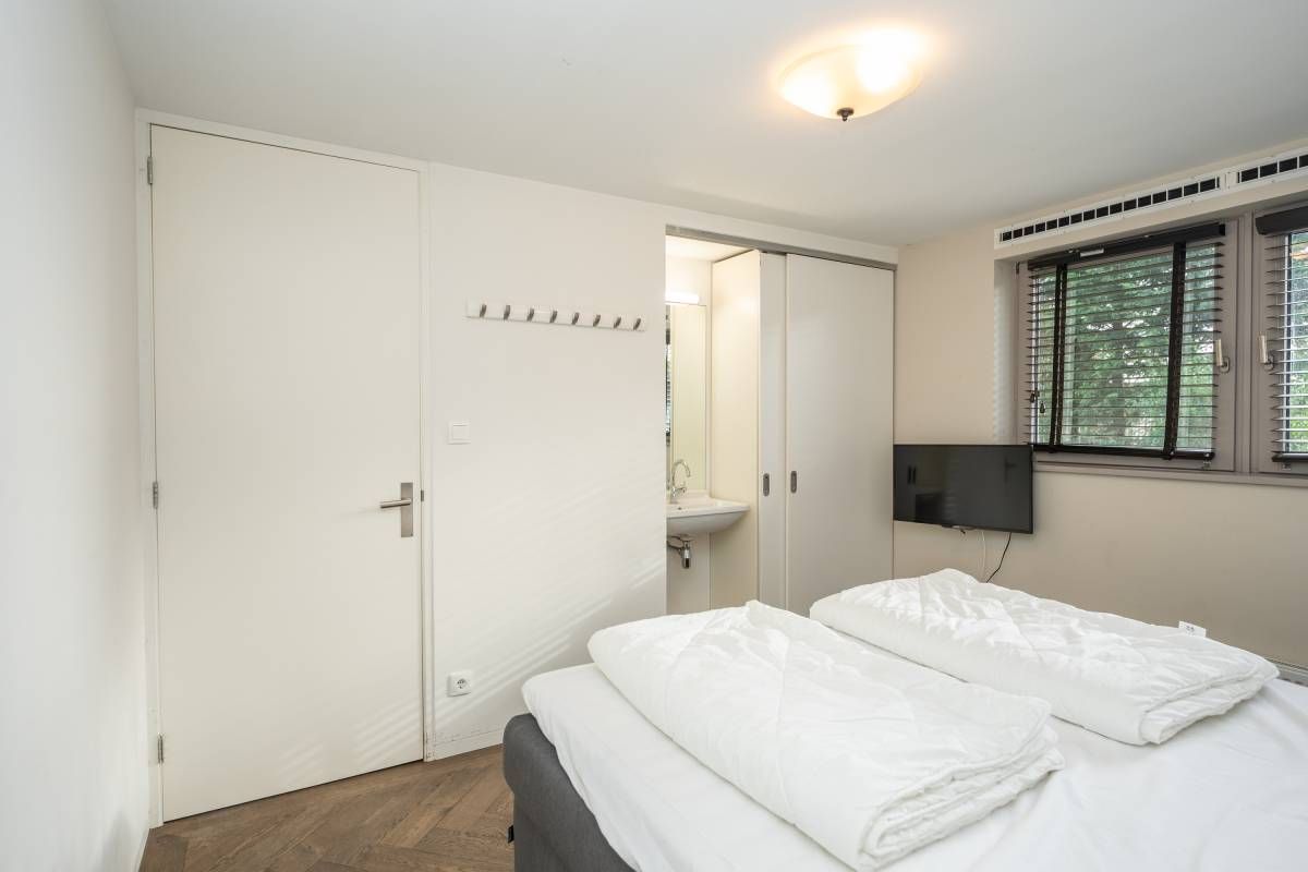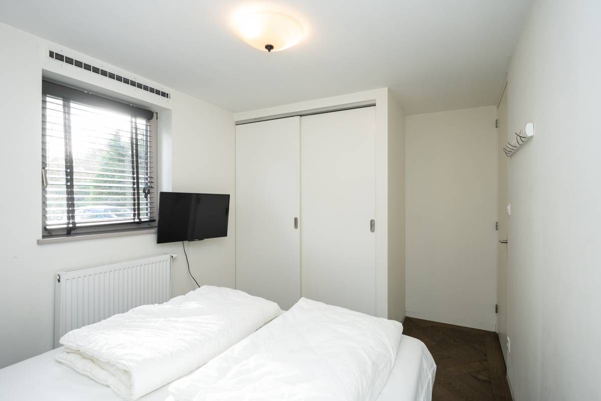 Twee slaapkamers beschikken over een kastenwand met ingebouwde wastafel achter de schuifdeur. De drempelvrije en mooie vloer loopt door over de gehele begane grond.