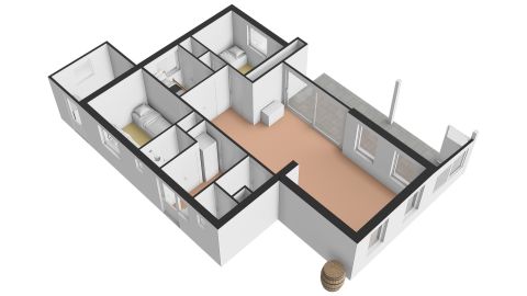 Via de keuken heeft u een doorloop naar de doucheruimte. De douche is eenvoudig uitgevoerd en grenst direct aan één van de slaapkamers.