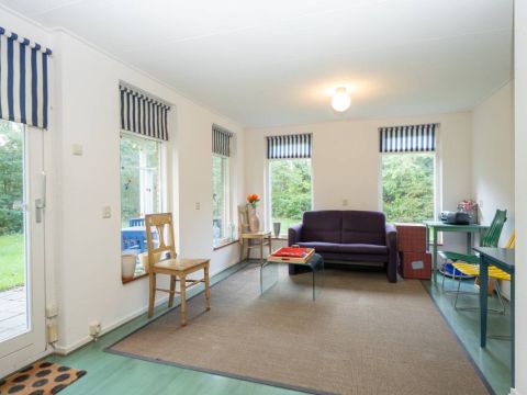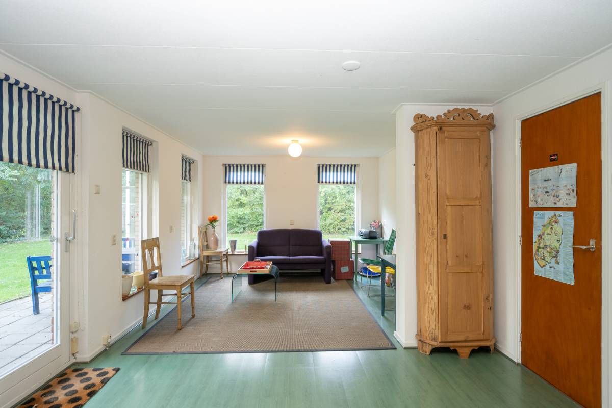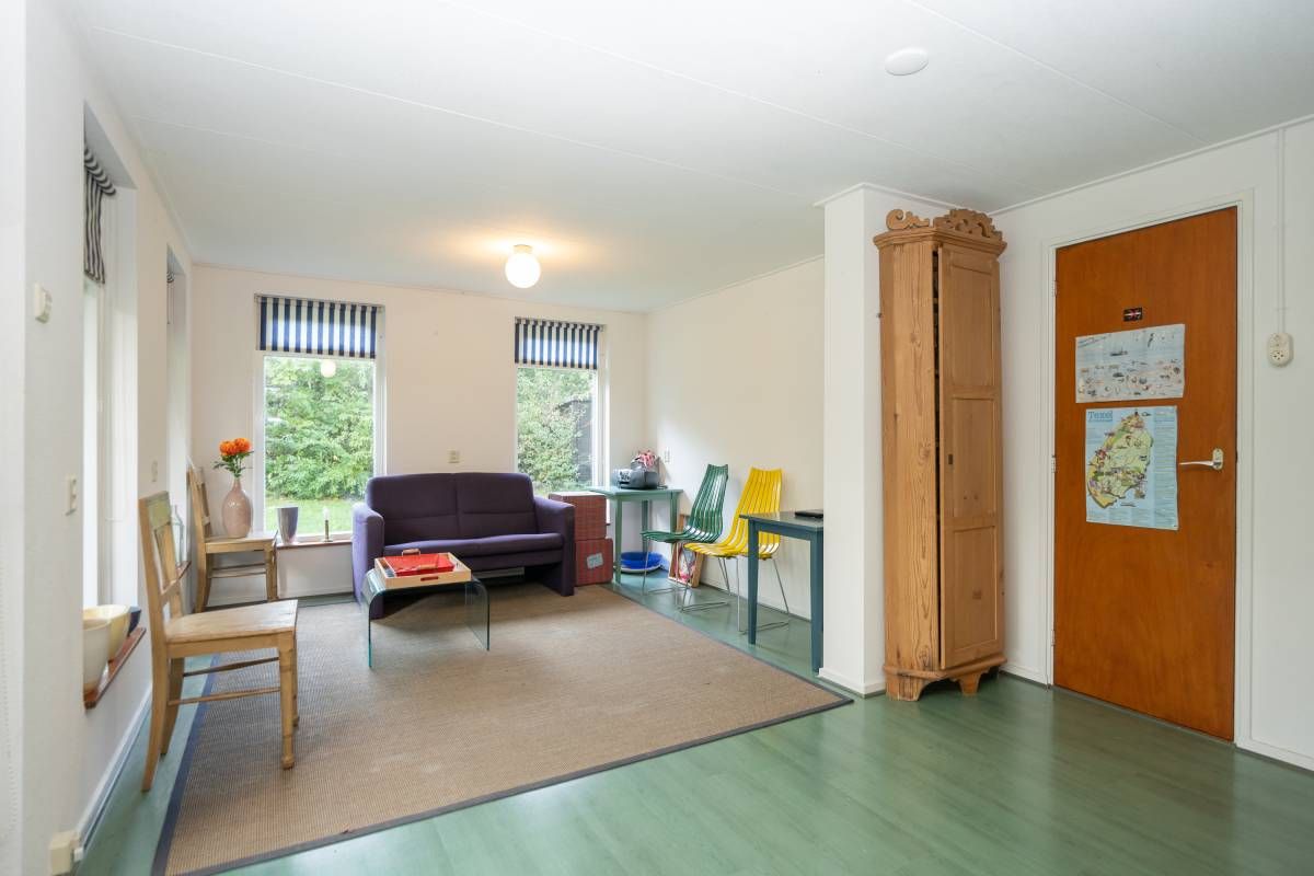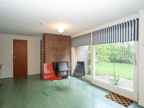 De lichte woonkamer vormt het hart van de woning. De diverse raampartijen en de schuifpui zorgen voor een mooie verbinding tussen binnen en buiten. Zodra u de schuifdeur opent, loopt u de heerlijke groene tuin in. De woonkamer wordt verwarming door een gashaard (welke in 2020 is vernieuwd).