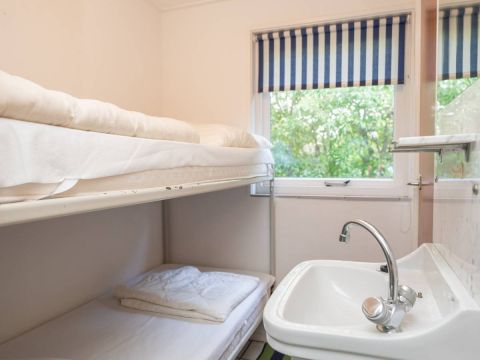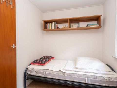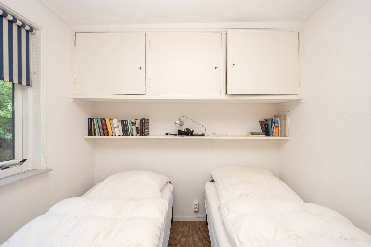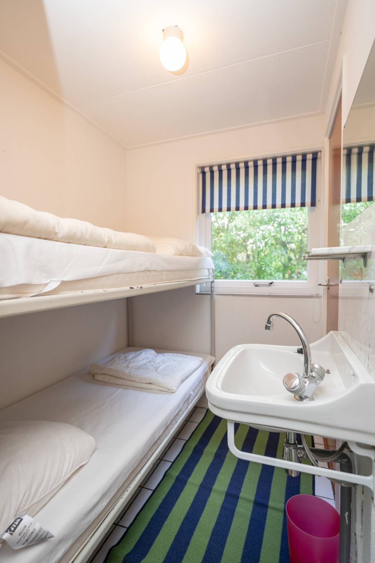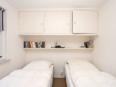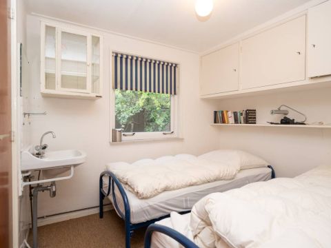 Deze eerste slaapkamer is van prima formaat en beschikt over een wastafel. De twee overige slaapkamers zijn bereikbaar via de woonkamer. Beide kamers zijn ook voorzien van een wastafel en vaste kasten. Ook deze kamers bieden voldoende ruimte en zijn geschikt voor meerdere slaapplaatsen.