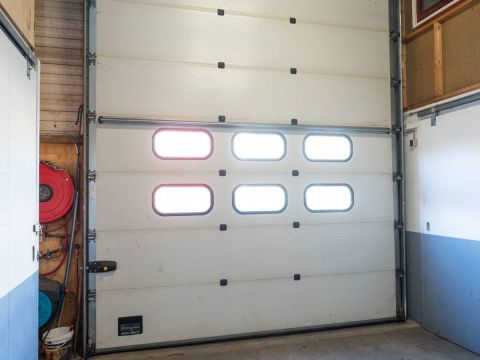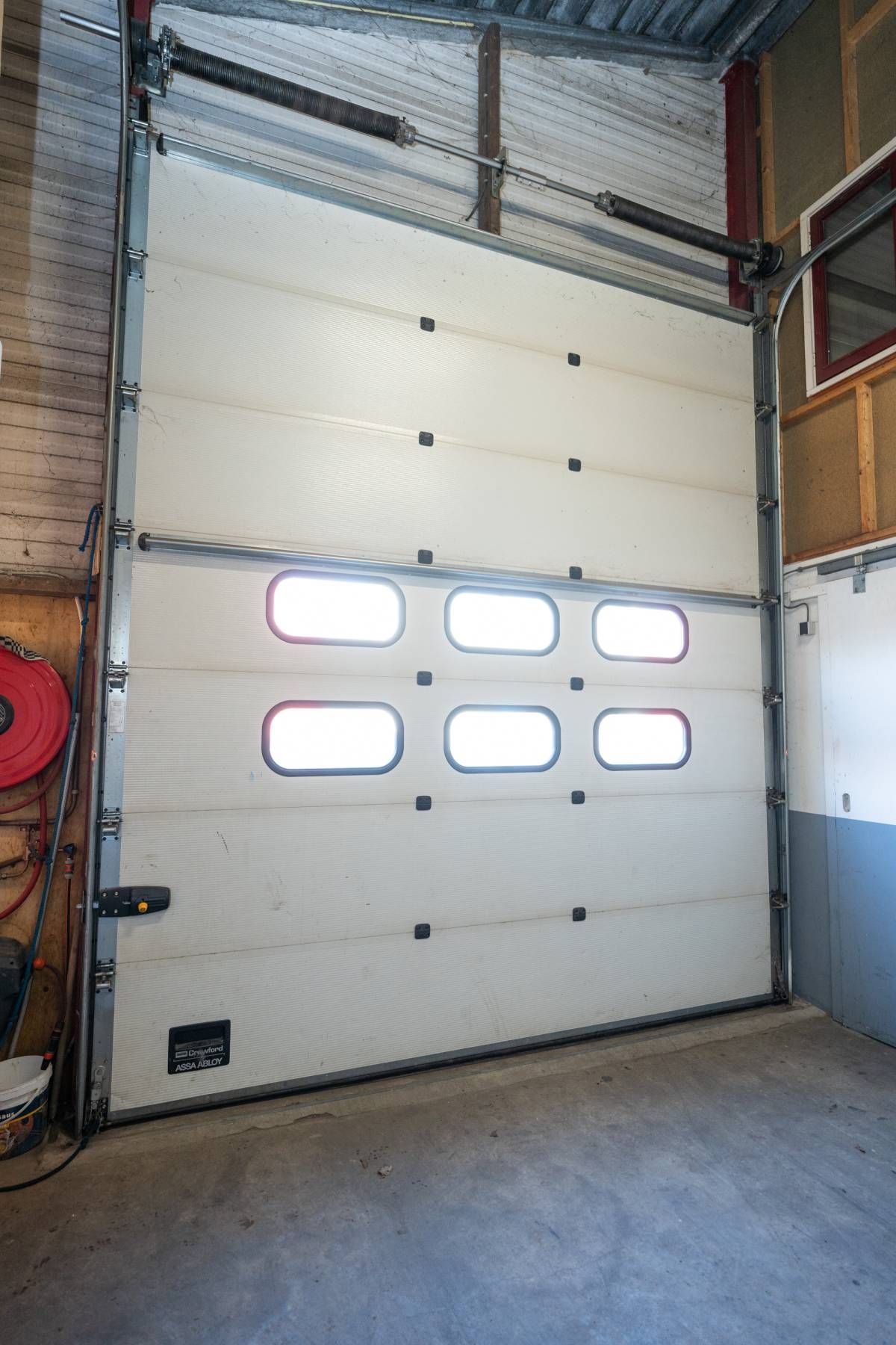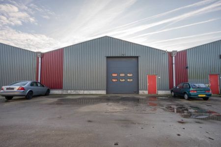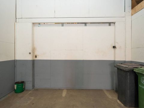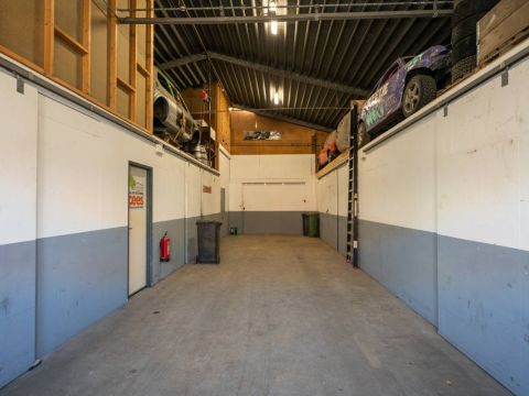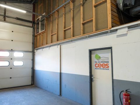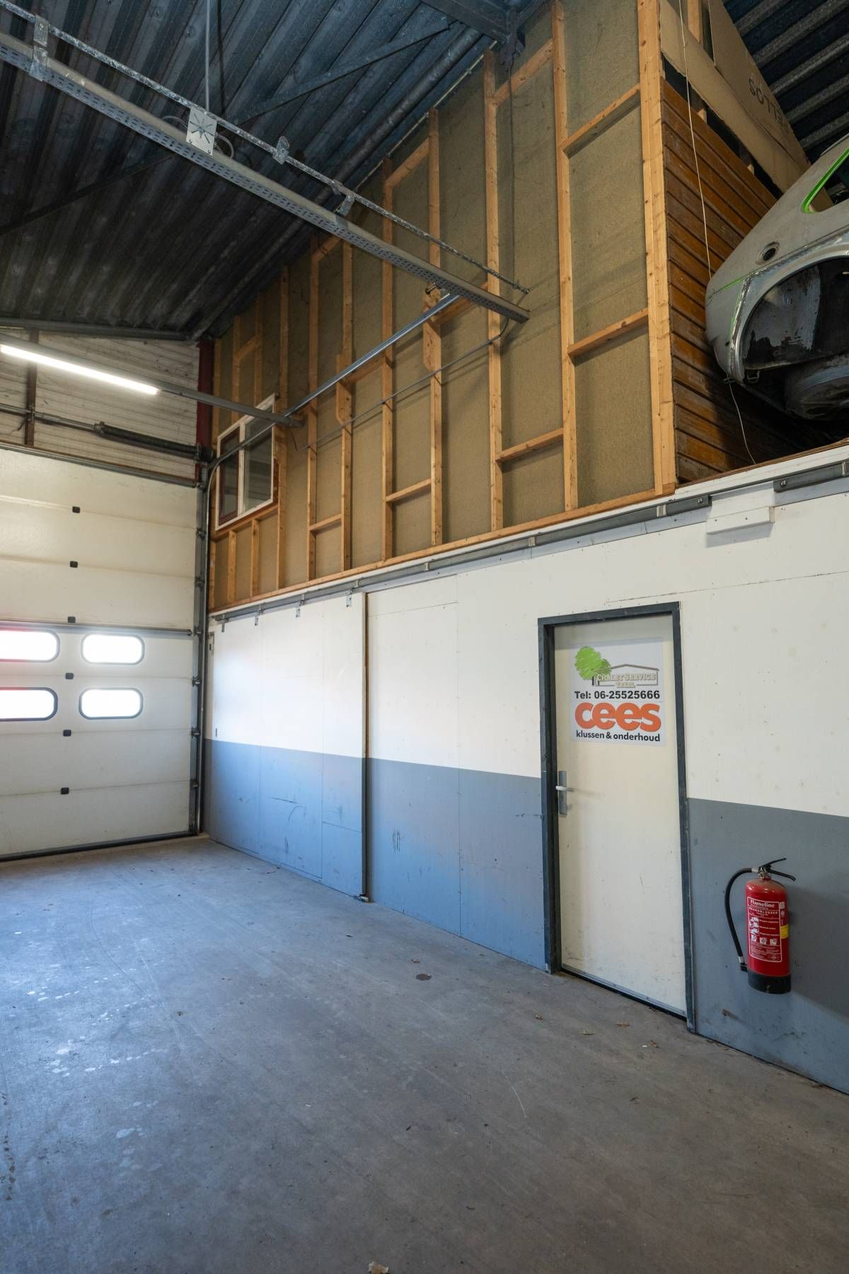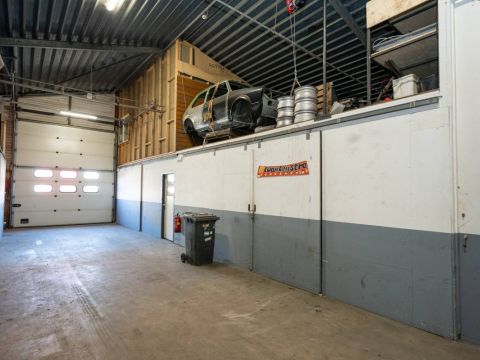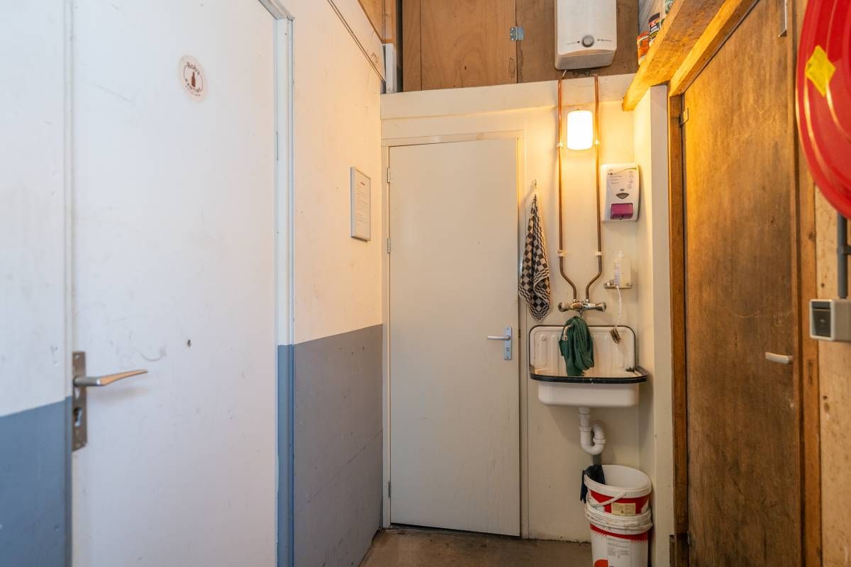 De brede roldeur en royale hoogte maken het object uitstekend geschikt voor opslag, werkplaats en stalling.