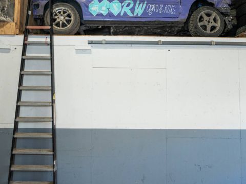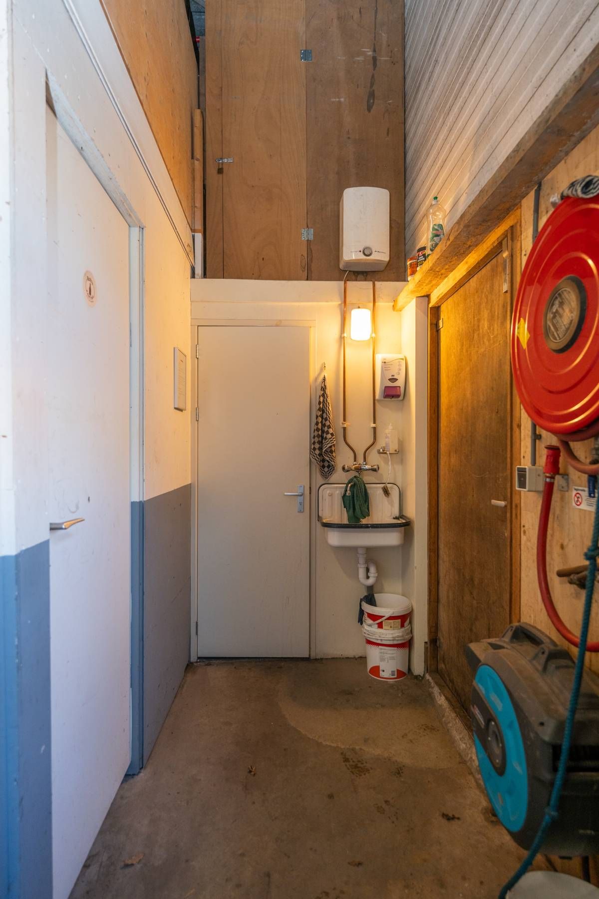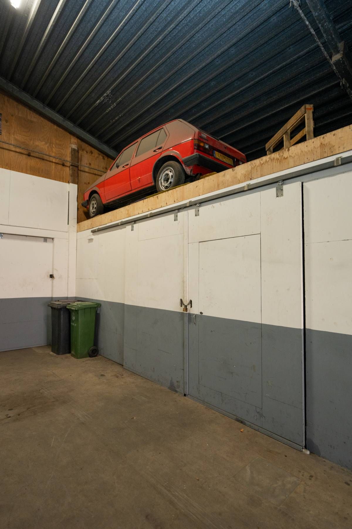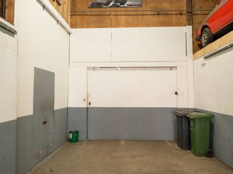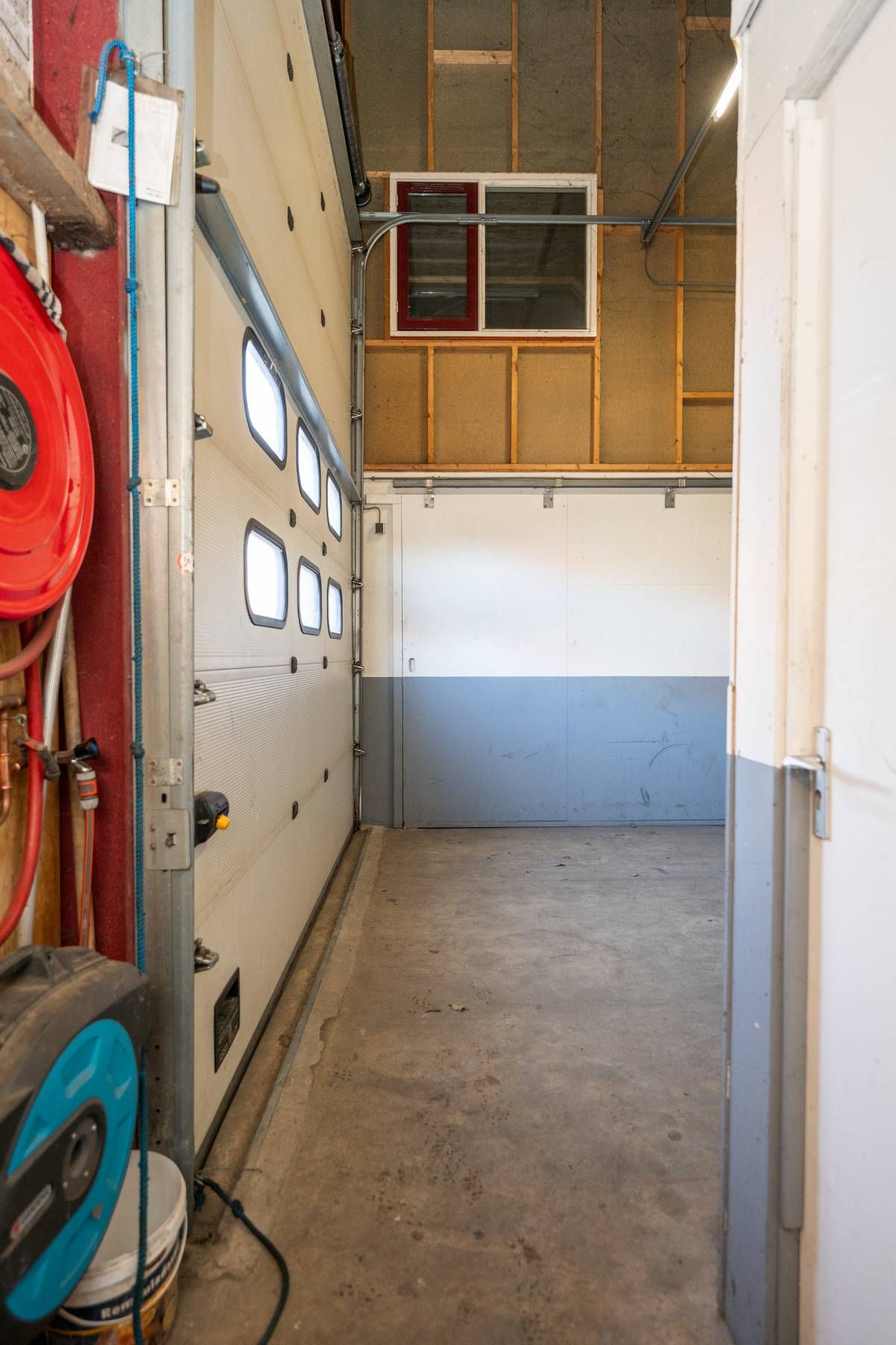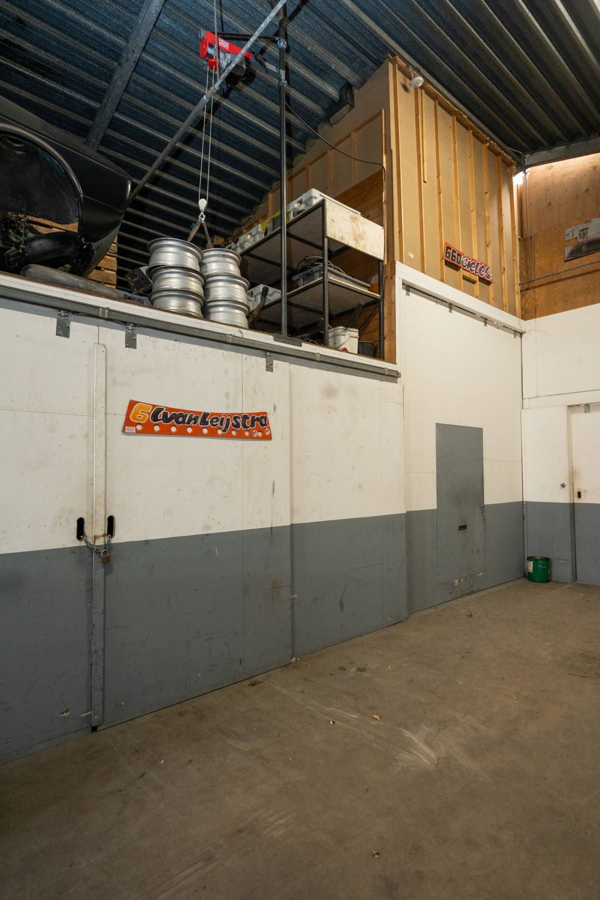 De brede roldeur en royale hoogte maken het object uitstekend geschikt voor opslag, werkplaats en stalling.