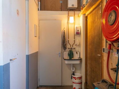 • Voorzien van elektra, toilet en stortgootsteen met warm water