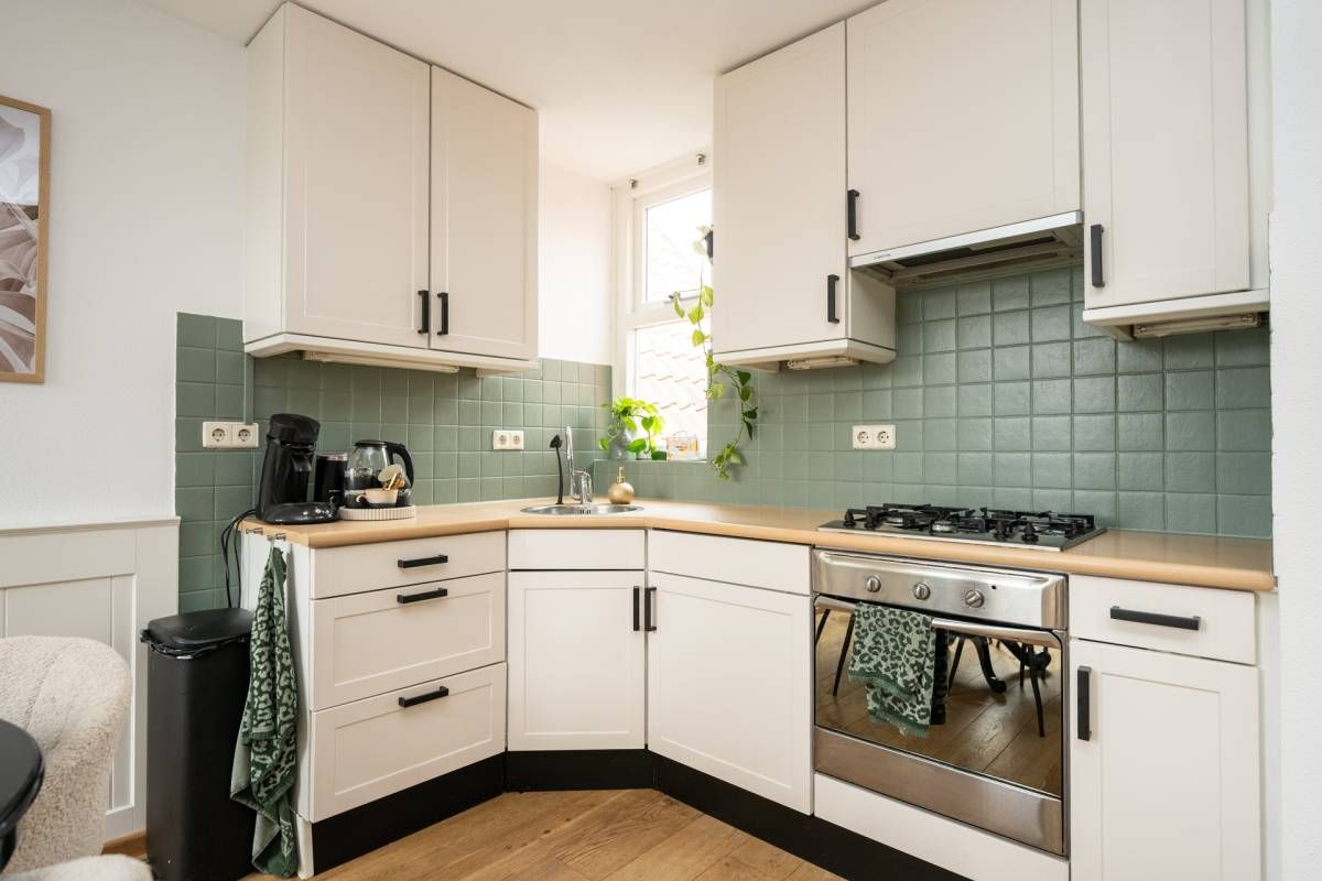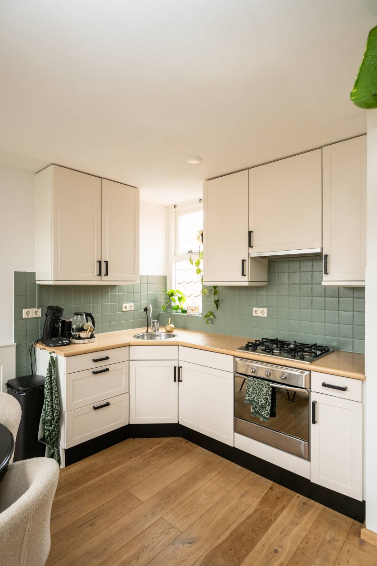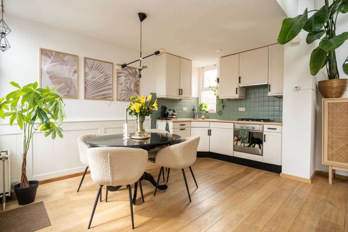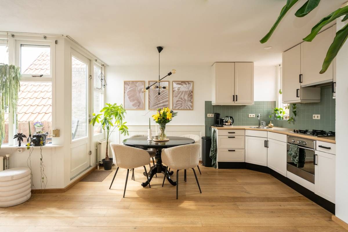 Aansluitend vindt u de praktische open keuken, voorzien van de benodigde apparatuur en voldoende kastruimte. Een fijne plek om te koken, waarbij u in contact blijft met de woonkamer.