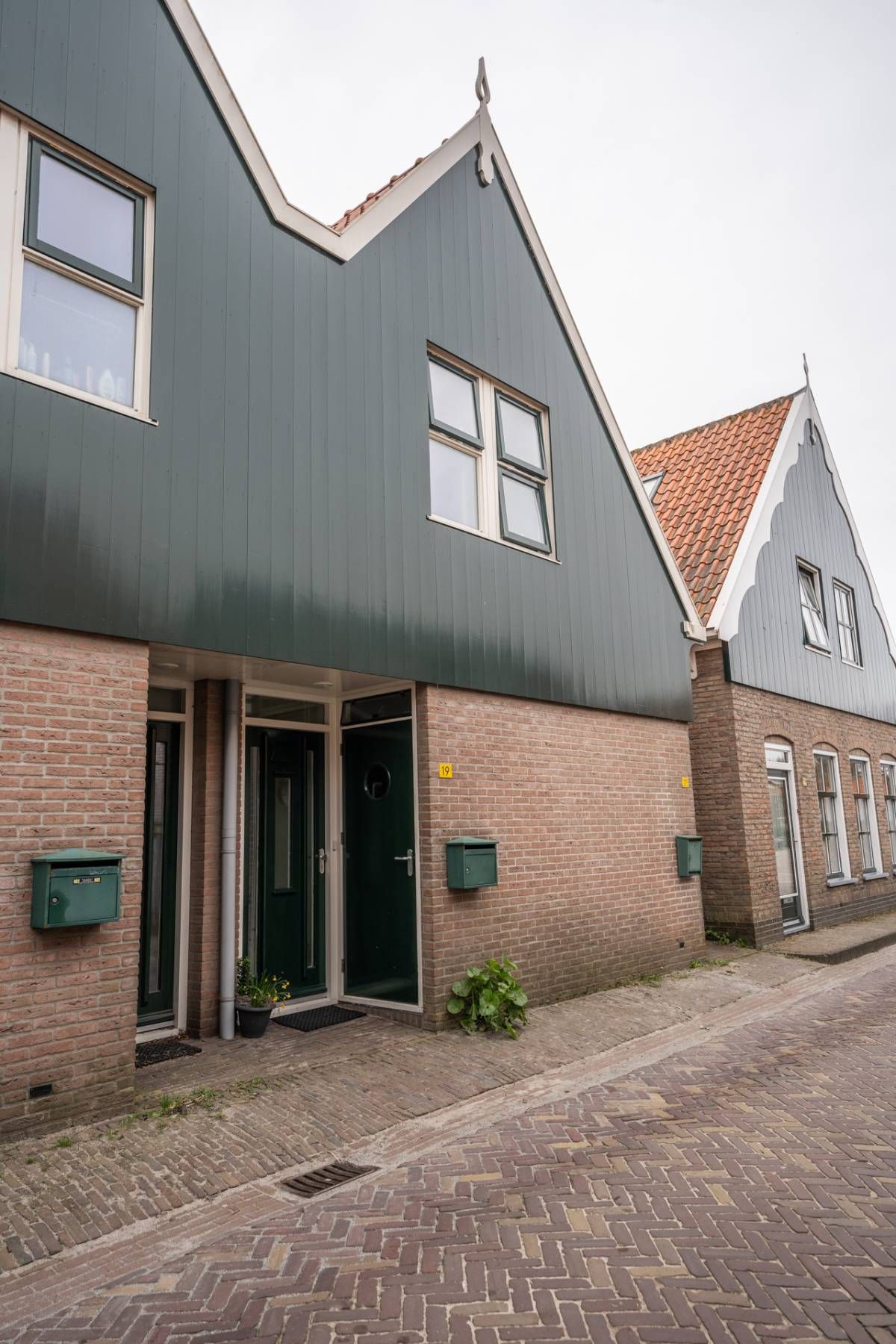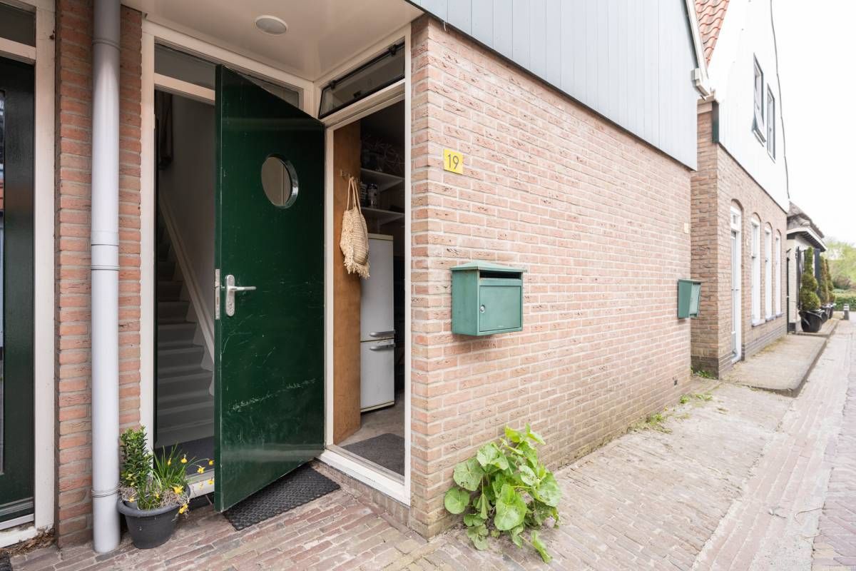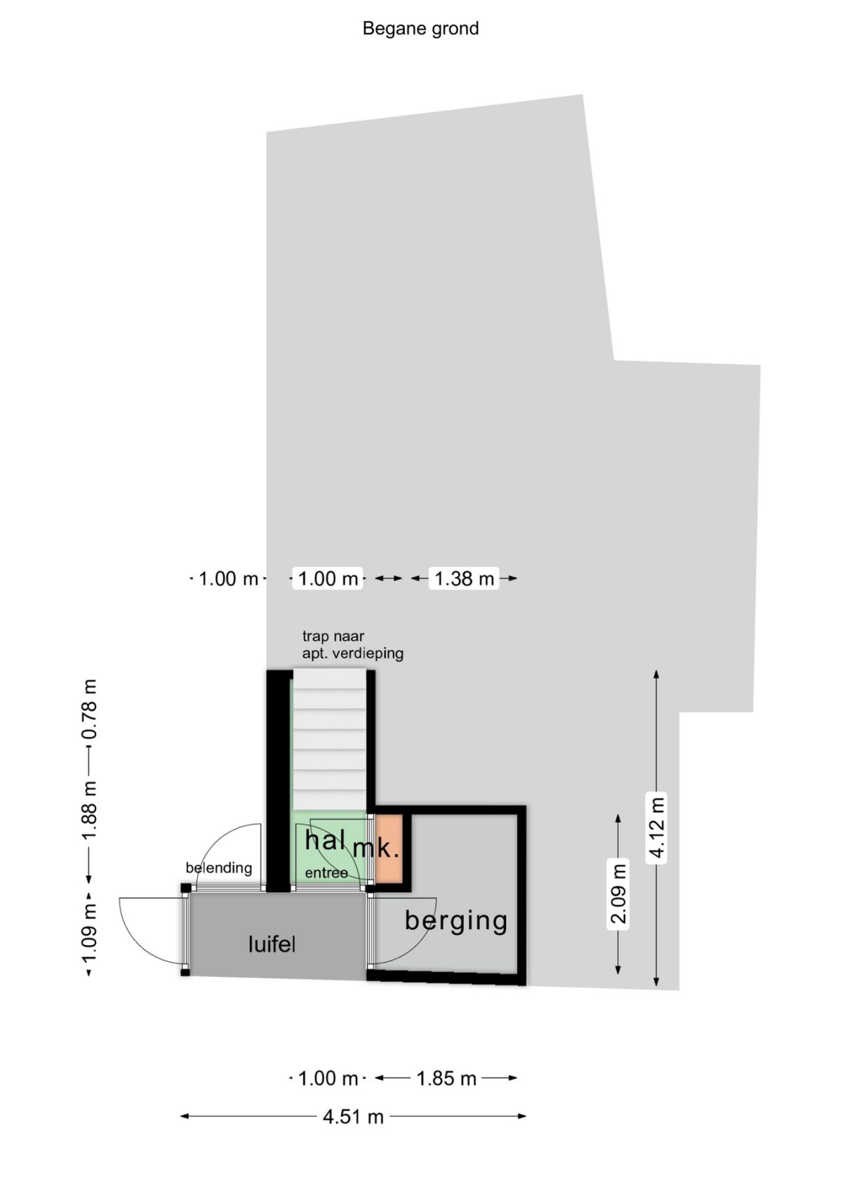 Entree aan de voorzijde van het pand met toegang tot de hal. Via de trap bereikt u het appartement op de eerste verdieping.