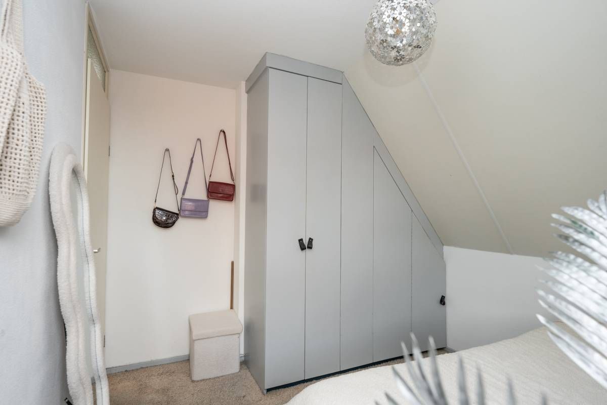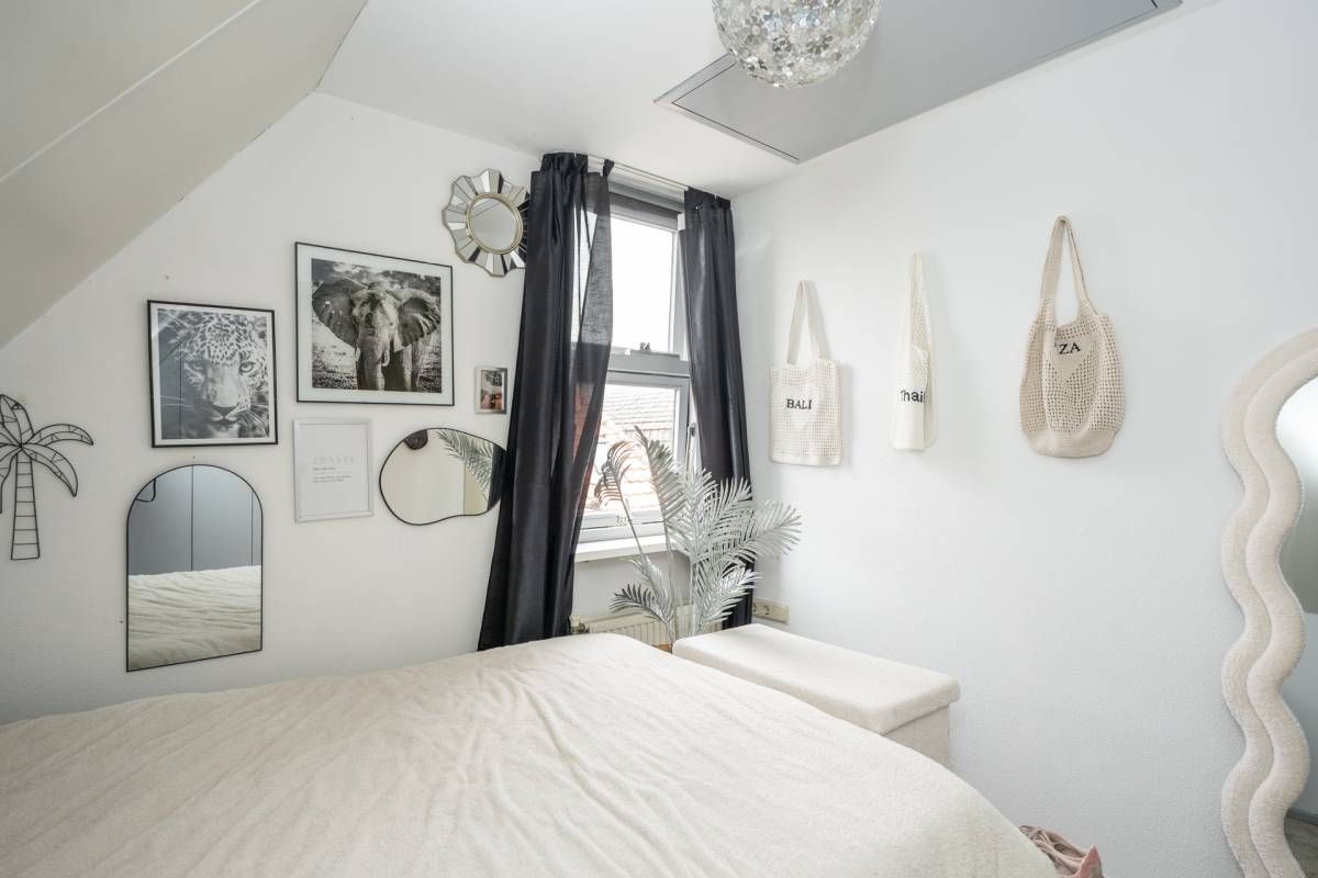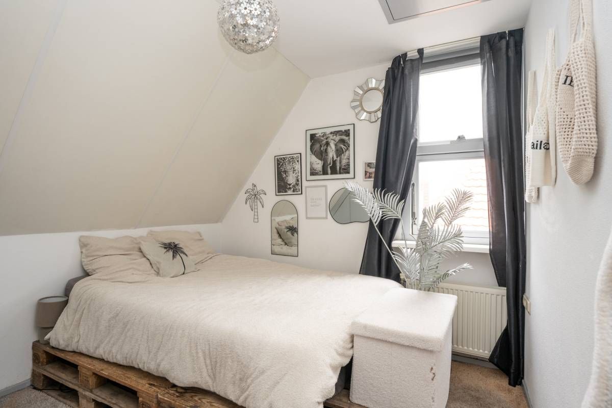 Het appartement beschikt over een slaapkamer, die praktisch is ingedeeld en voorzien van een vaste kast onder de schuine wand.