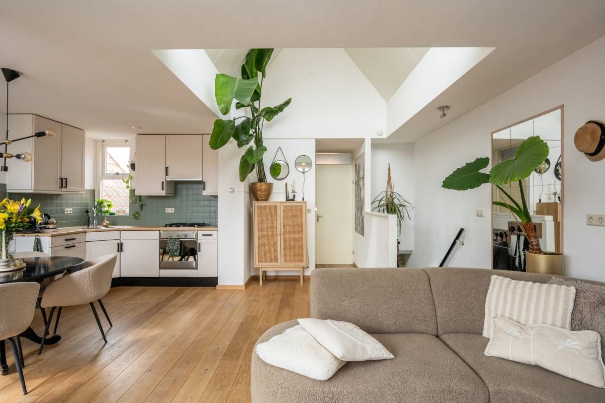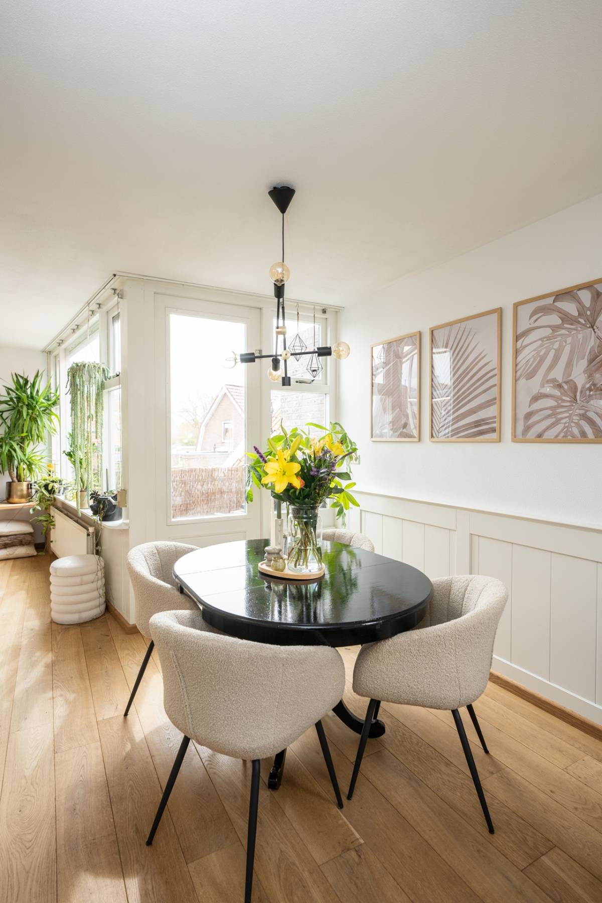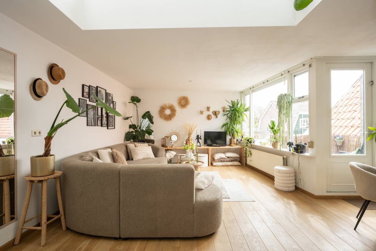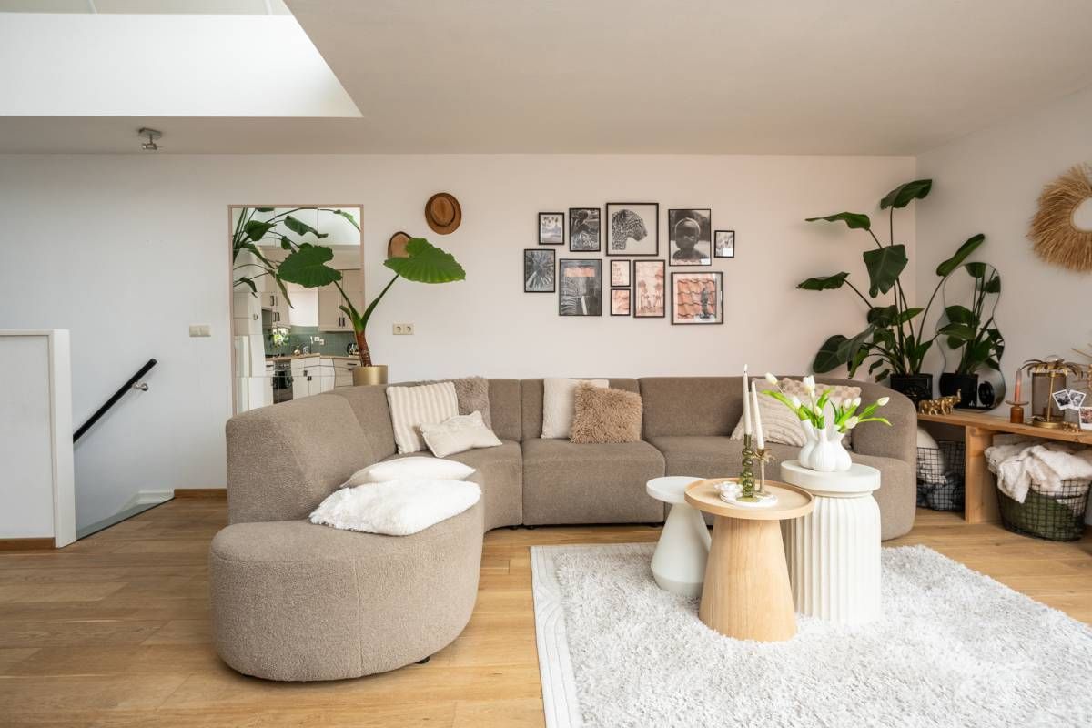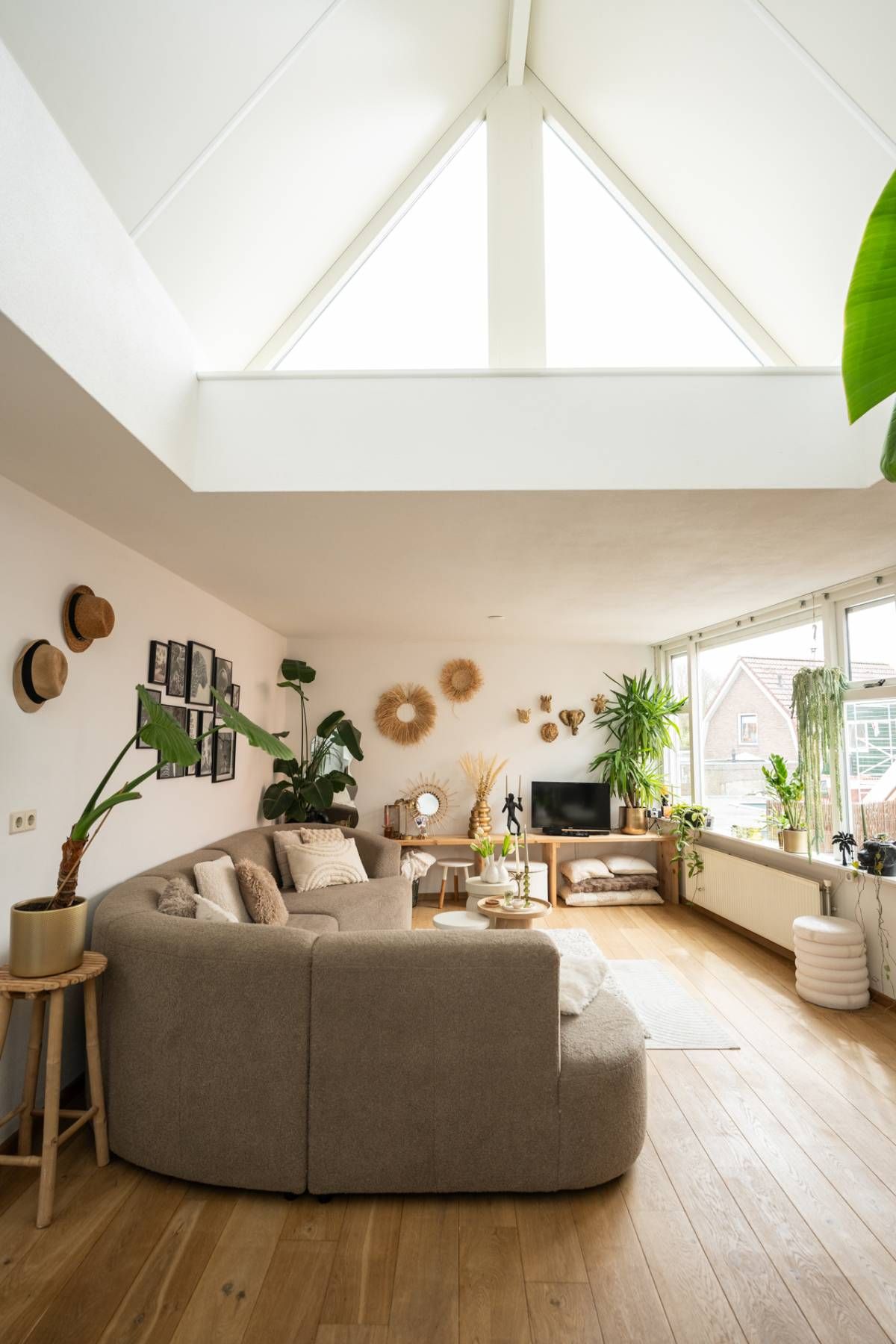 De woonkamer is zonder twijfel het hart van de woning. Deze ruimte is heerlijk licht dankzij de grote ramen en de prachtige lichtkoepel, wat zorgt voor een ruimtelijk en aangenaam gevoel. De open indeling maakt het geheel extra prettig en geeft de woning een warme en knusse uitstraling. Een plek waar u zich direct thuis voelt.