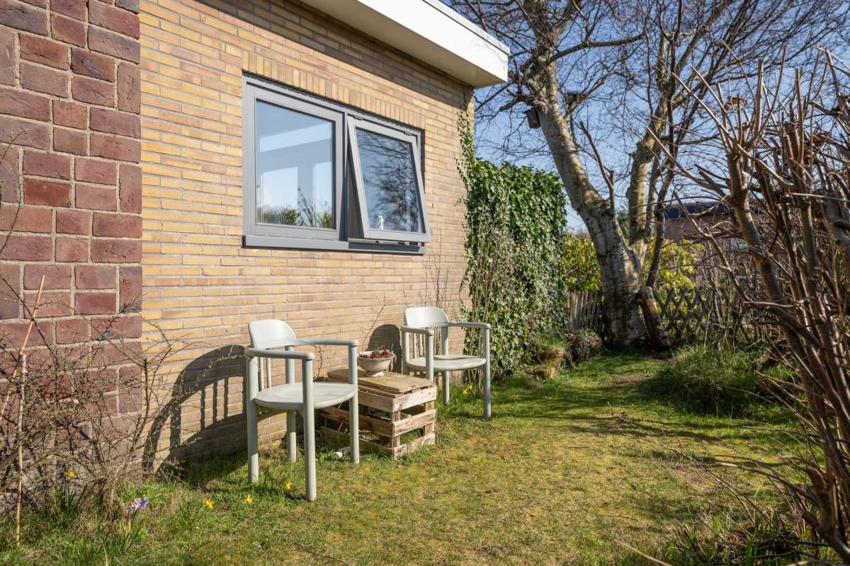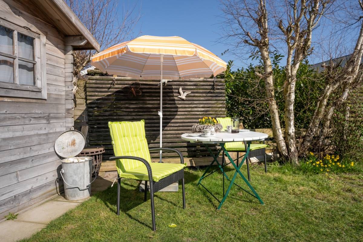 De knusse tuin biedt meerdere zitplekken, zodat je zowel van de zon als van een aangenaam schaduwplekje kunt genieten van de Texelse frisse en gezonde buitenlucht.