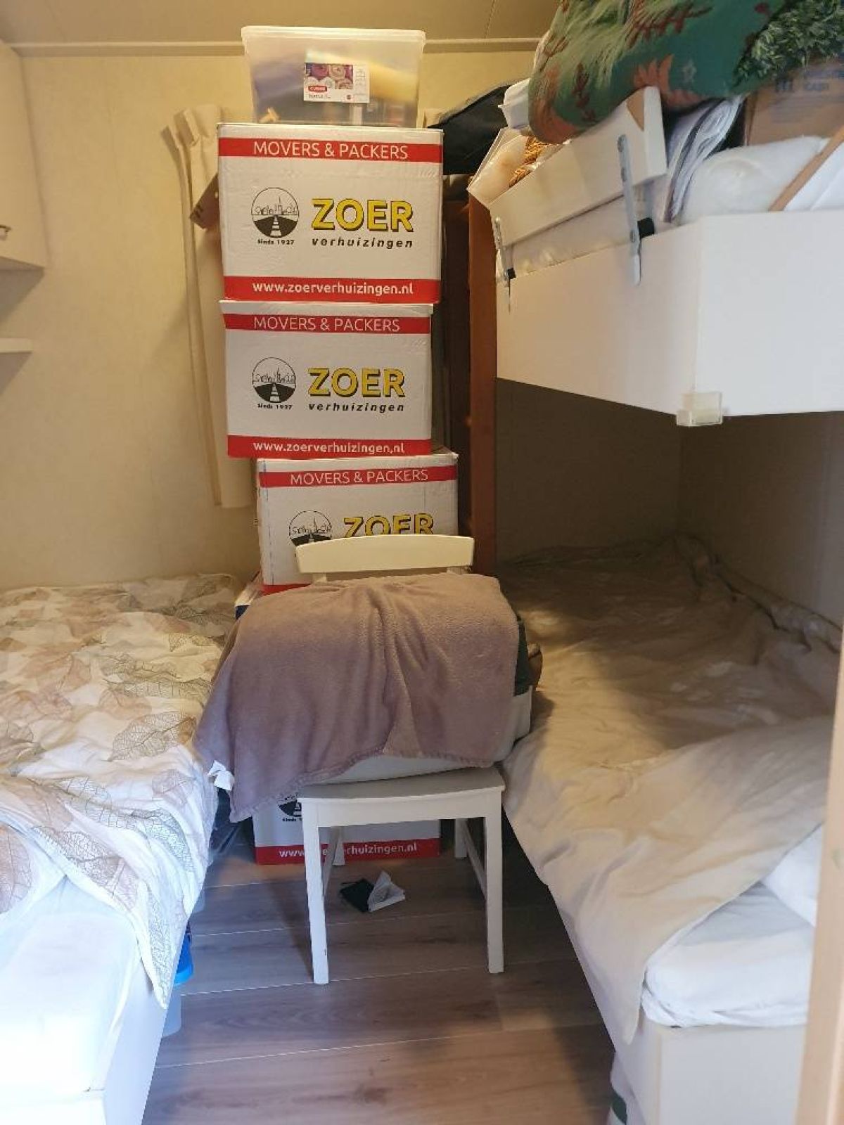 Het chalet is geschikt voor maximaal vijf personen en beschikt over twee slaapkamers. De hoofdslaapkamer heeft een comfortabel tweepersoonsbed en voldoende opbergruimte. De tweede slaapkamer is ingericht met een stapelbed en een eenpersoonsbed, perfect voor een gezinnetje.