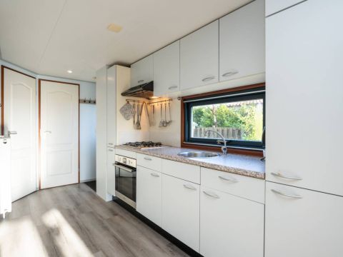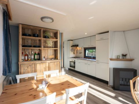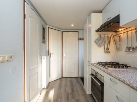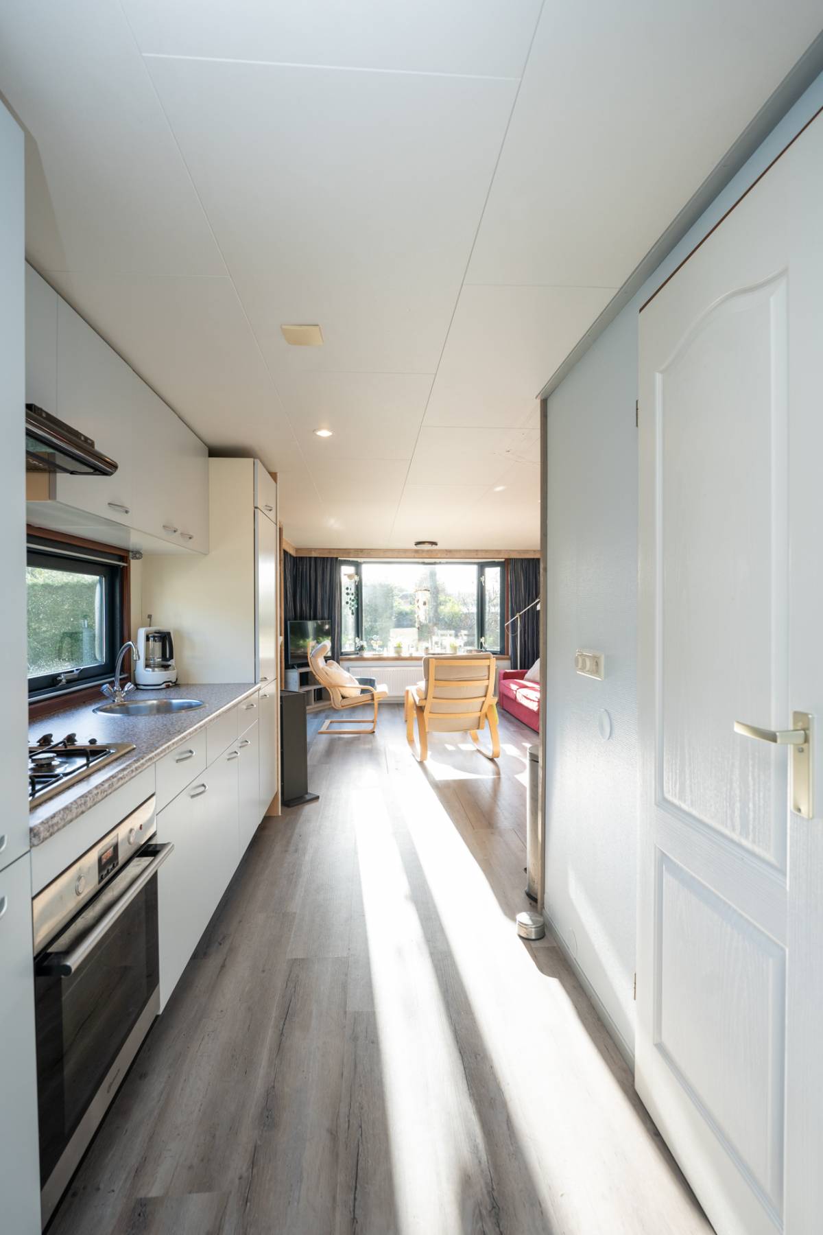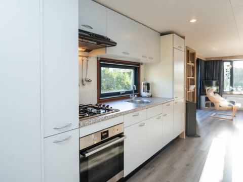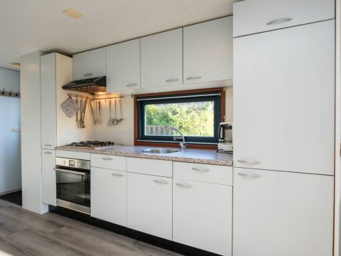 De open keuken is netjes en uitgerust met onder andere een gaskookplaat, afzuigkap, oven en koelkast, waardoor u hier moeiteloos heerlijke maaltijden kunt bereiden.