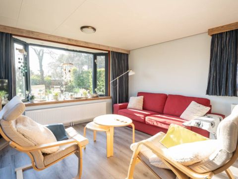 Indeling | De woonkamer is licht en beschikt over een gezellige zithoek en een gashaard. Dankzij de grote raampartijen geniet u van volop natuurlijk licht en uitzicht op het groen.