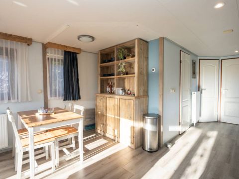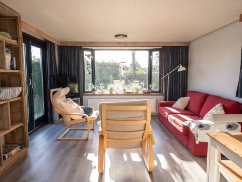 In de hal vindt u een garderobe en een kast met de cv-ketel, waarmee het chalet het hele jaar door aangenaam warm te houden is.