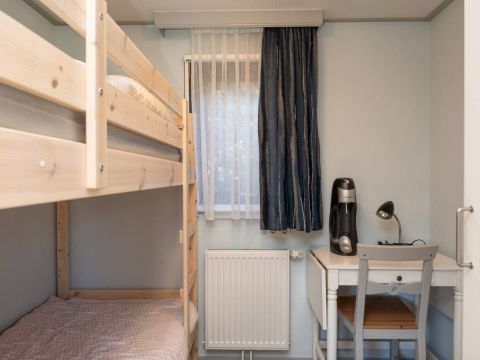 Het chalet beschikt over twee slaapkamers. De eerste slaapkamer is iets ruimer van opzet en voorzien van een tweepersoonsbed en opbergkasten. De tweede slaapkamer beschikt over een stapelbed.
