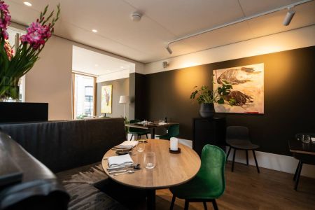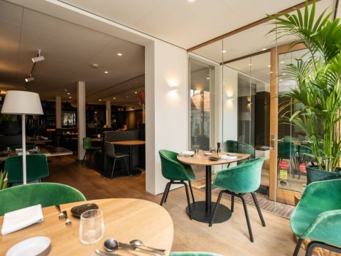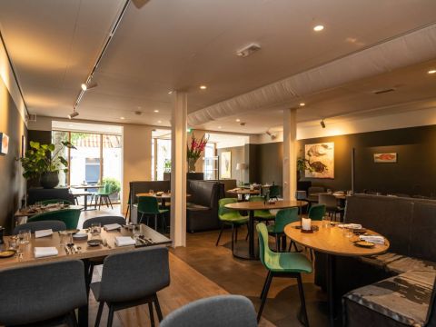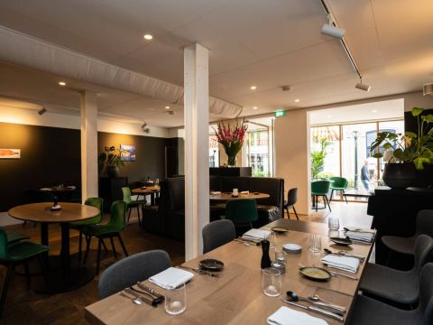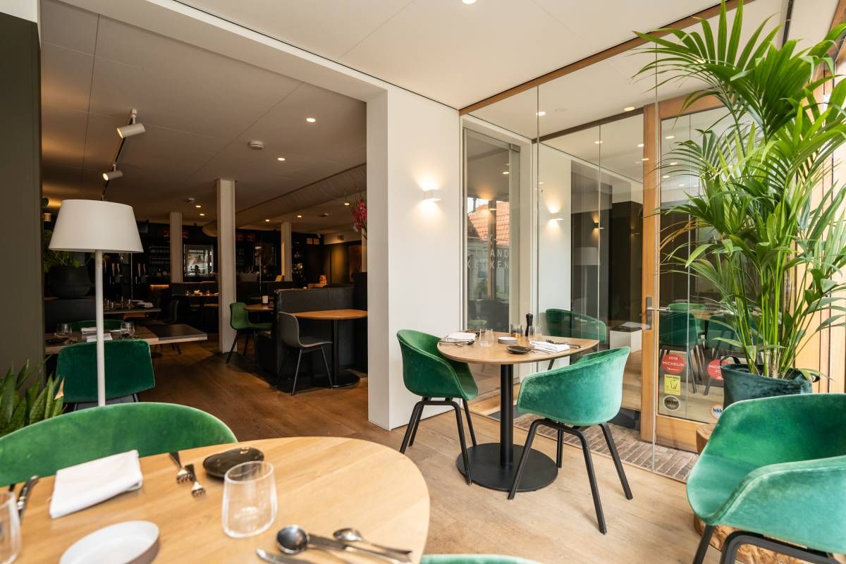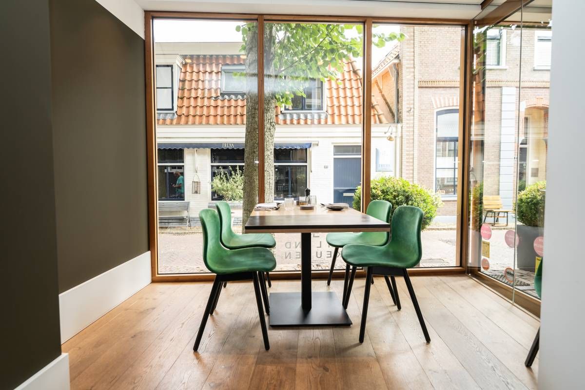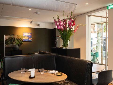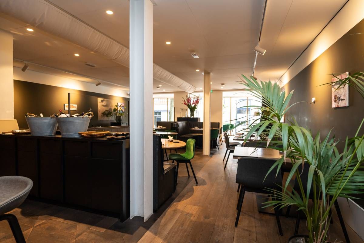 Capaciteit restaurant: Het eetgedeelte is groot ca. 60 m2 met een bijzonder mooi grote pui van glas, het restaurant biedt (ruim) plaats aan 50 gasten.