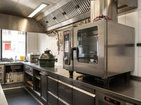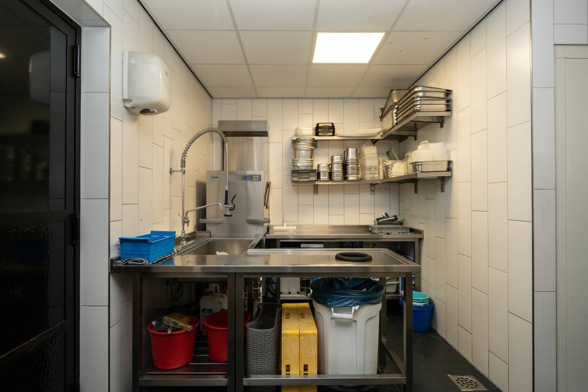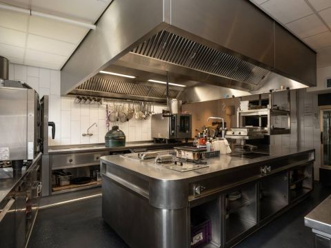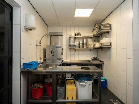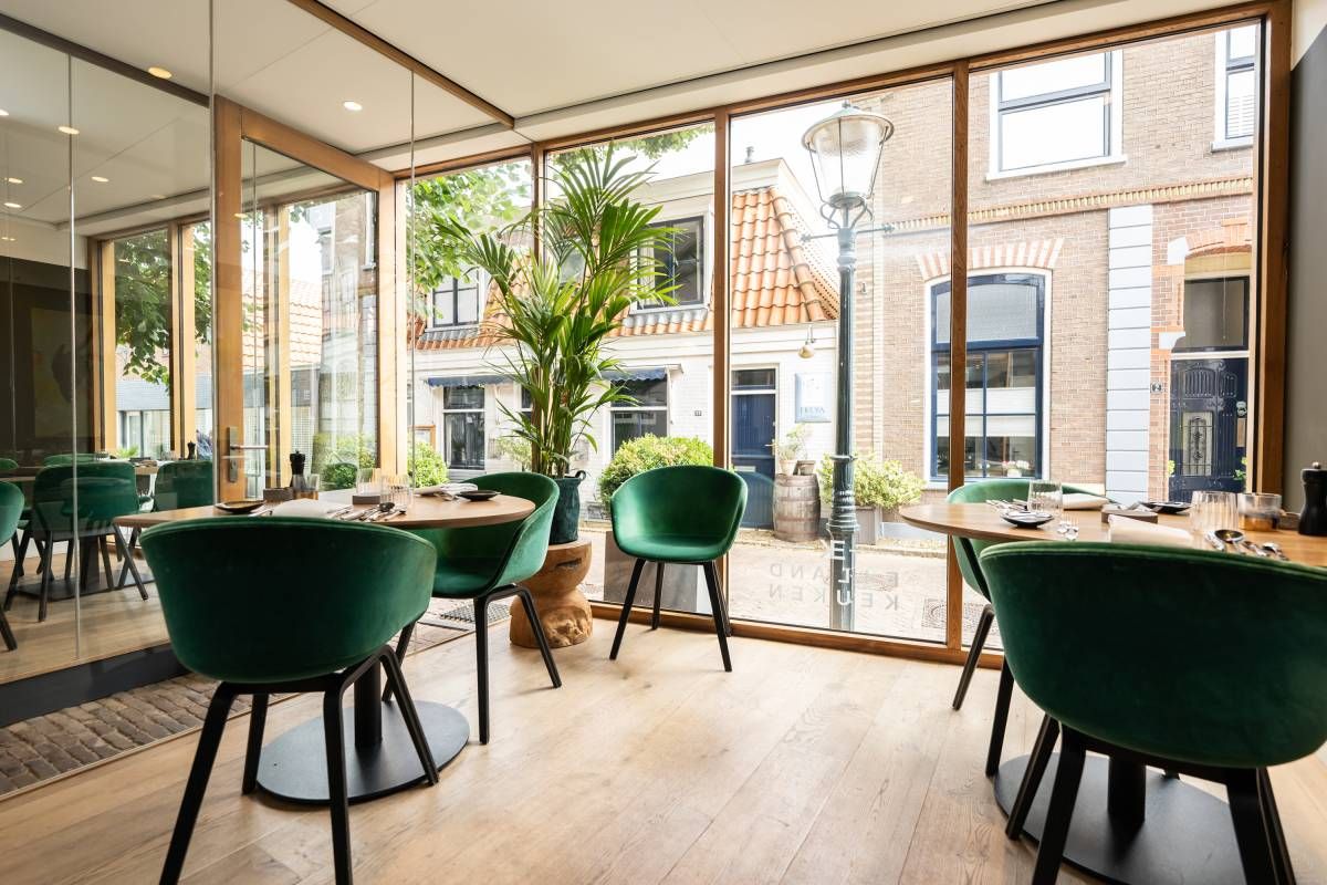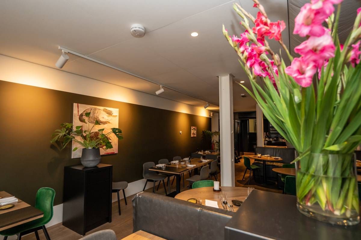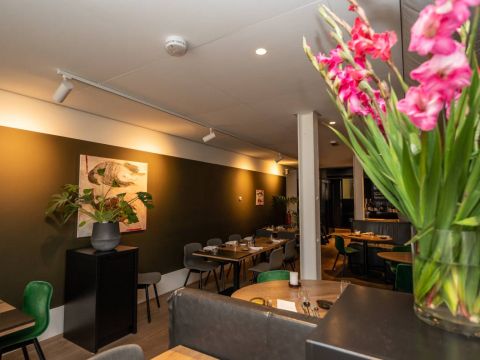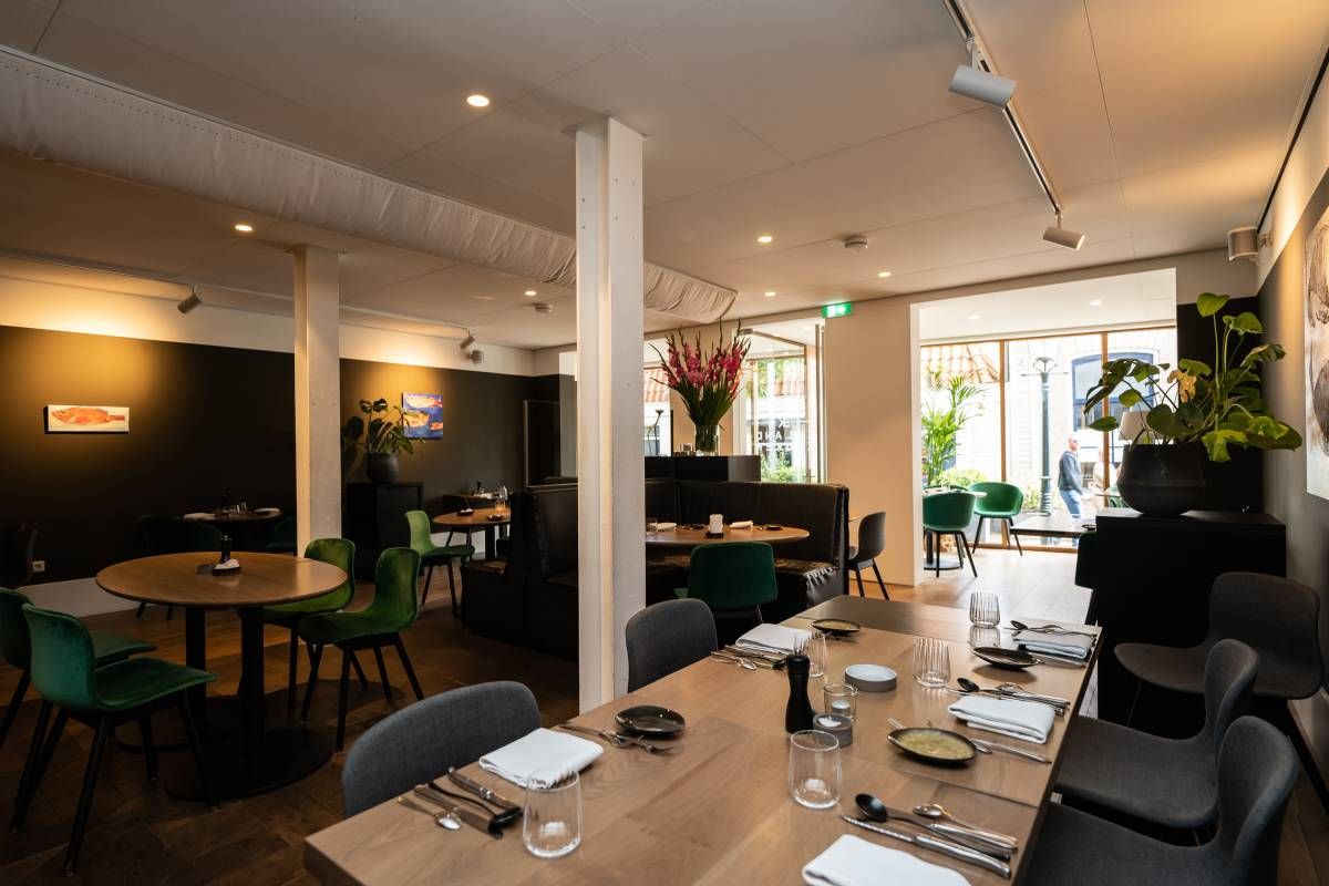 Het eetgedeelte is groot ca. 110 m² met een bijzonder mooi grote pui van glas, het restaurant biedt (ruim) plaats aan 50 gasten.
