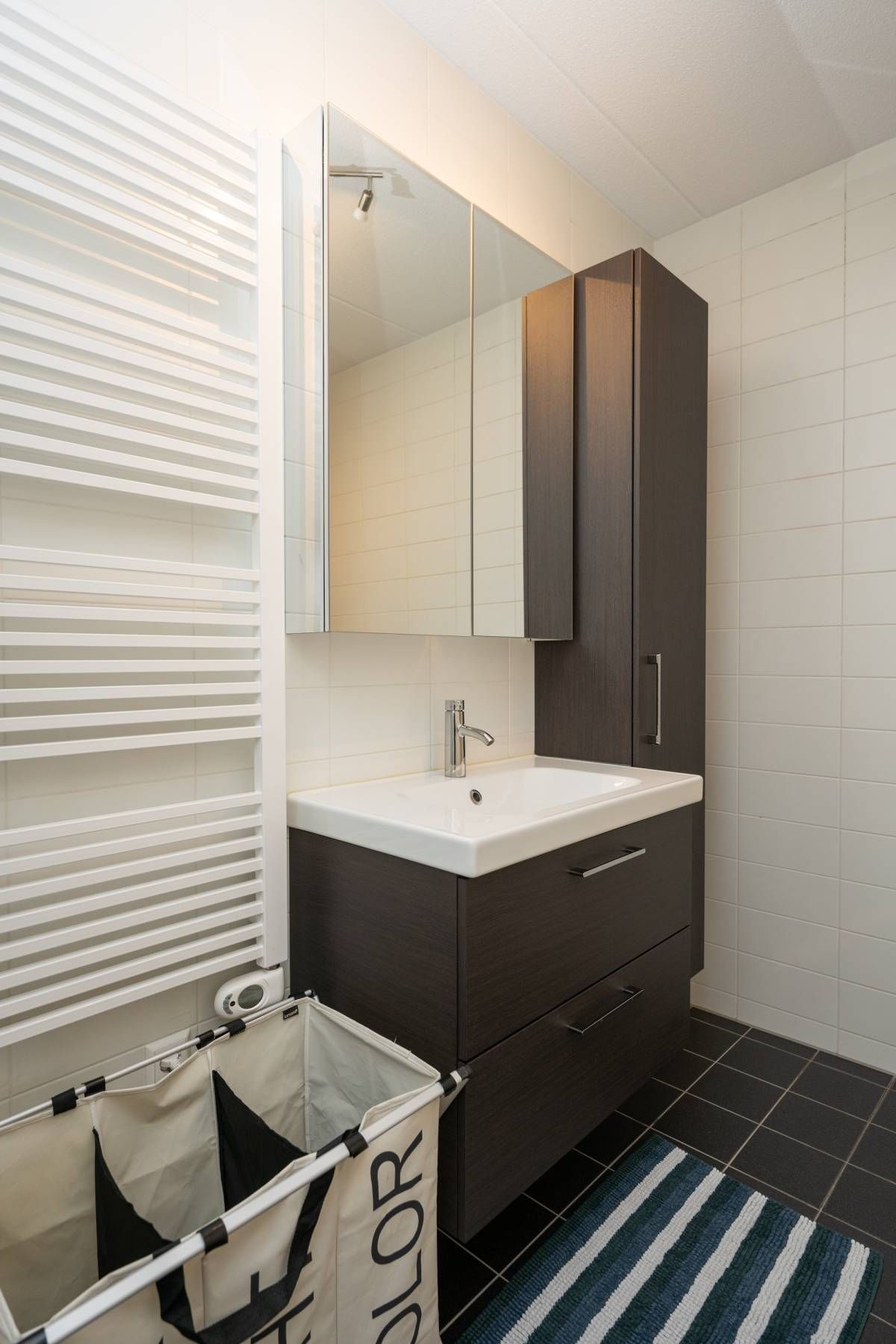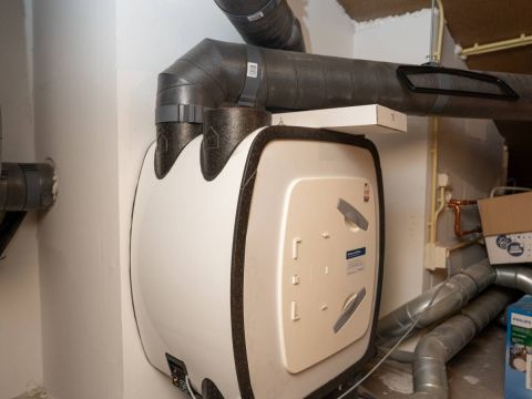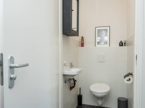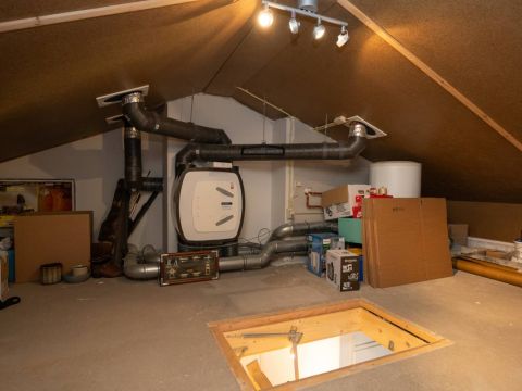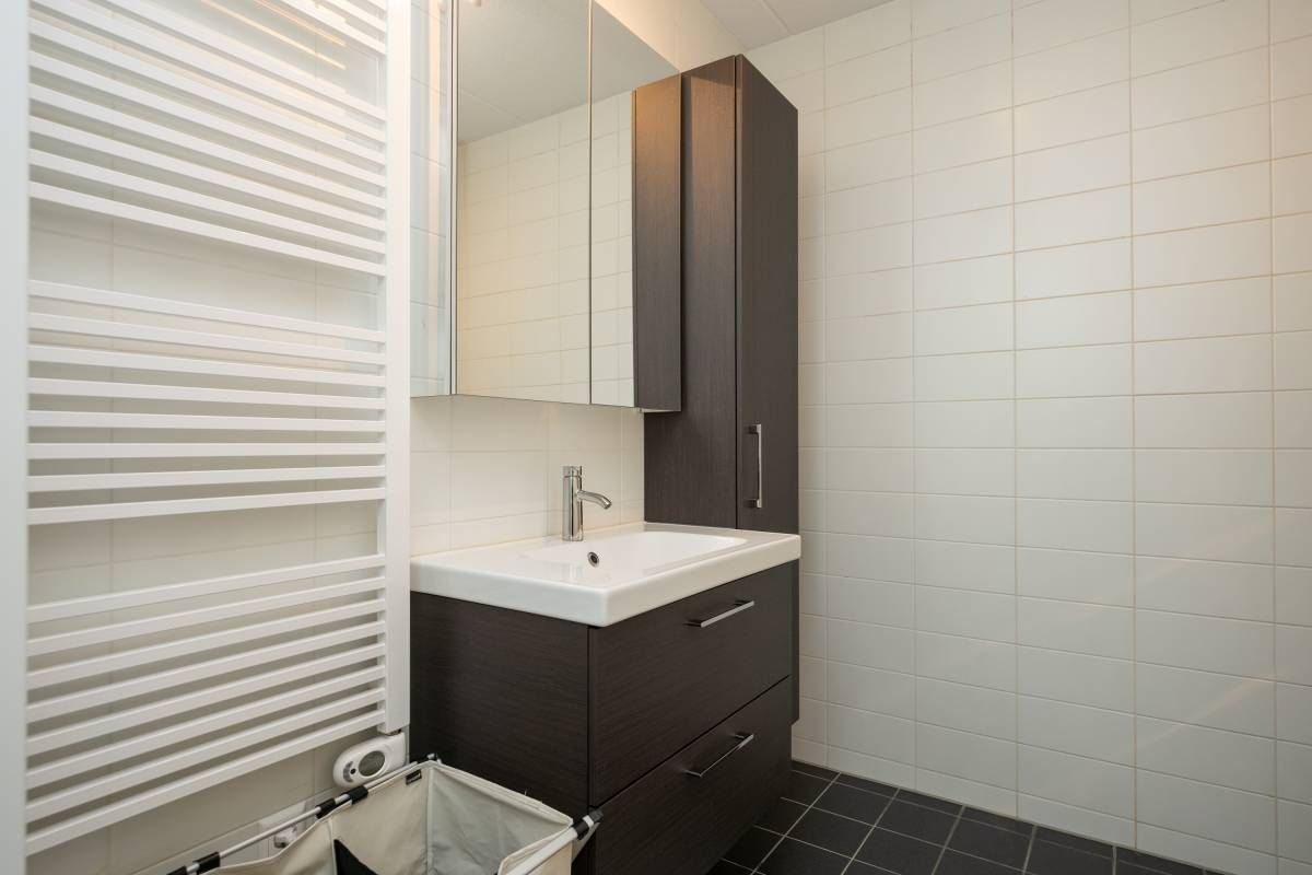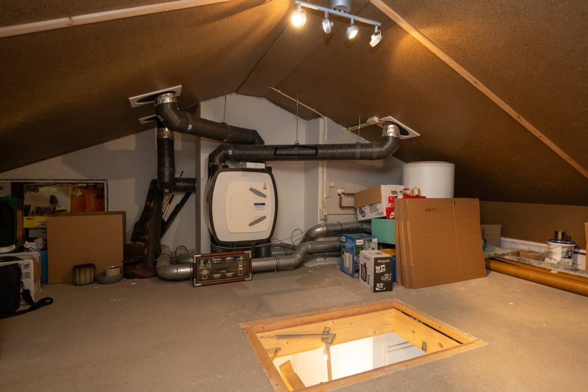 De keurig afgewerkte badkamer is voorzien van een douche, een wastafelmeubel en een designradiator. Via een vlizotrap bereikt u de goed geïsoleerde bergzolder, ideaal voor extra opslag.