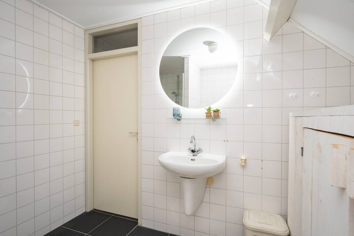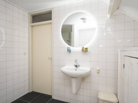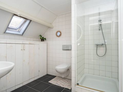 De tweede badkamer beschikt een douche, een toilet en een wastafel.