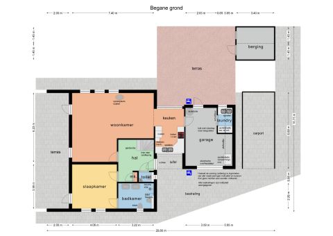 Via de keuken doorloop naar de garage (ca. 25 m²). De garage zelf is ruim opgezet en beschikt over een elektrische garagedeur, een bergzolder die bereikbaar is via een vlizotrap en een apart gedeelte waar de wasmachine en droger keurig zijn opgesteld. Hier vindt u tevens de verwarmingsinstallatie, een zonneboiler en de unit van het stofzuigsysteem.