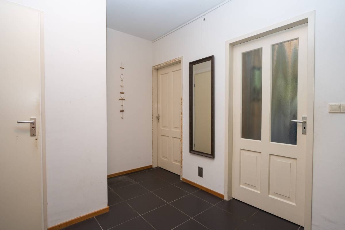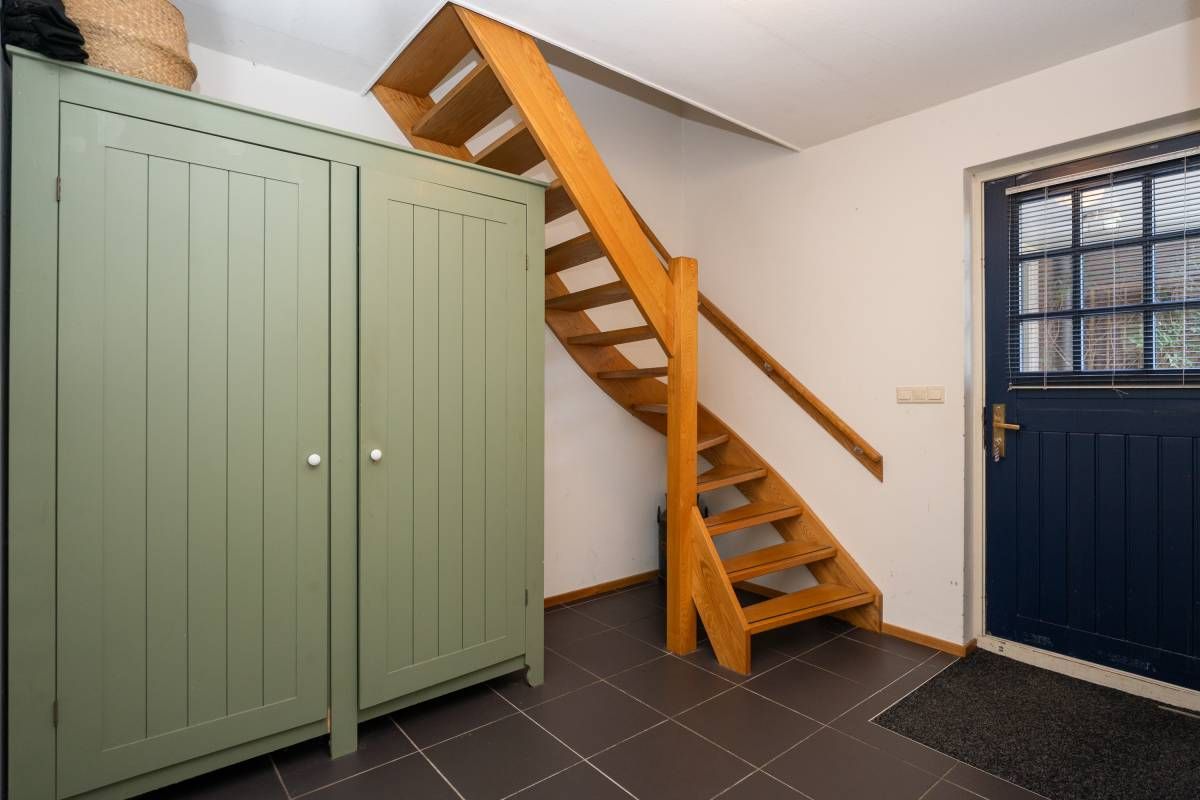 In de hal bevinden zich de trapopgang naar de verdieping, de meterkast en het toilet. Vanuit hier bereikt u de royale slaapkamer met aangrenzende badkamer.