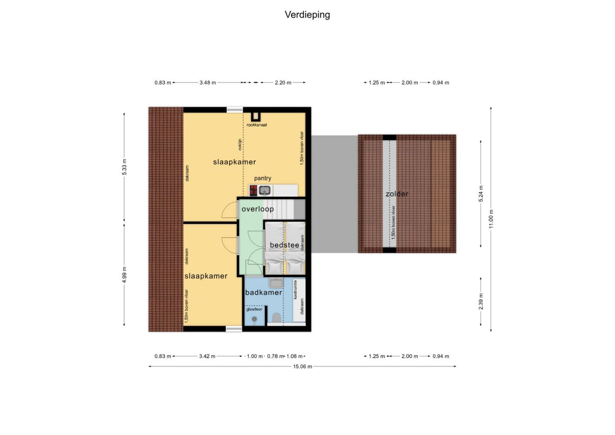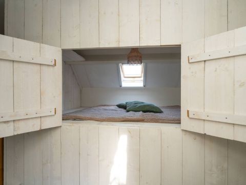 Op de overloop is een sfeervolle bedstede aanwezig geschikt voor twee personen. Hoe knus is dat!?