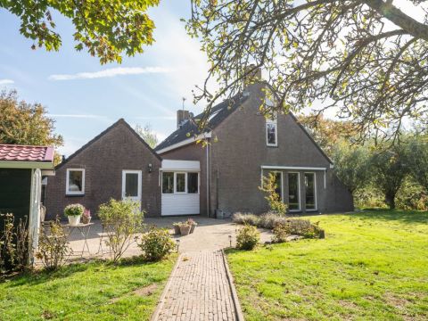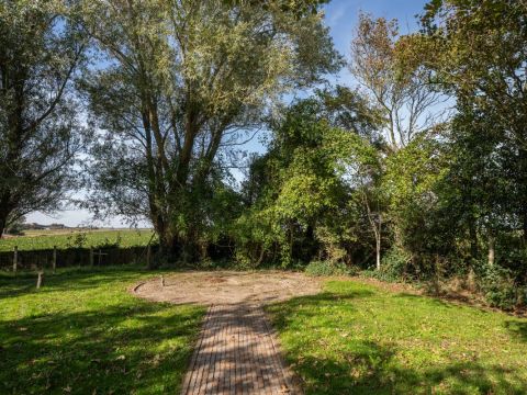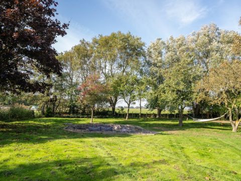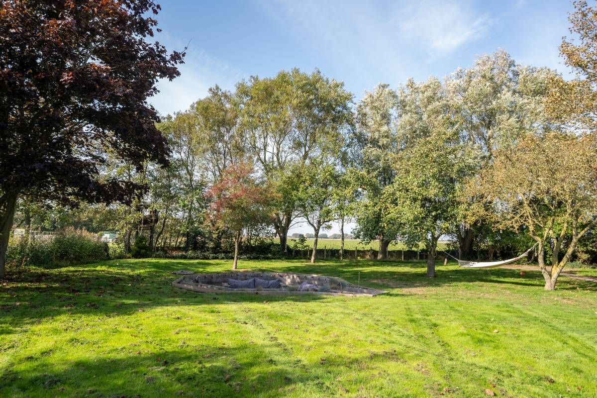 Achter de woning ontvouwt zich een ware oase van rust: een uitgestrekte tuin met prachtig uitzicht over de weilanden, waar u volledige privacy ervaart.