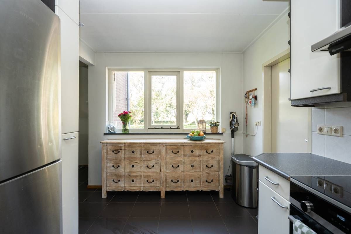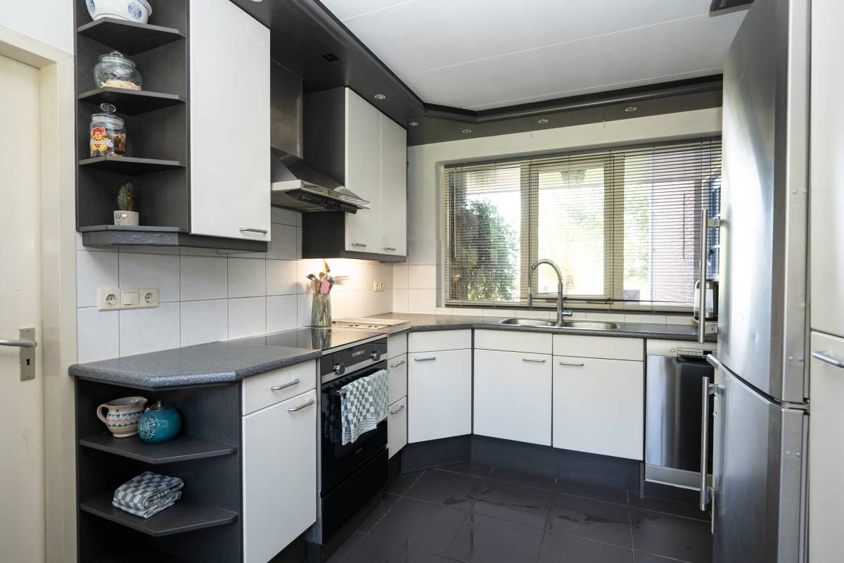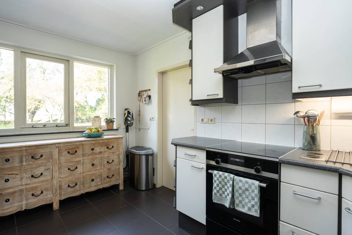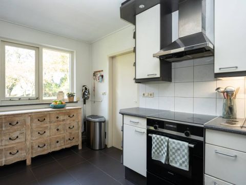 De halfopen keuken is van diverse gemakken voorzien waaronder onder andere een vaatwasmachine, kookplaat, oven, afzuigkap en koelkast.