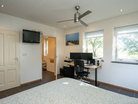 Dankzij de ruime indeling en de directe toegang tot het zijterras is dit ook een fijne plek voor eventuele gasten.