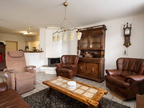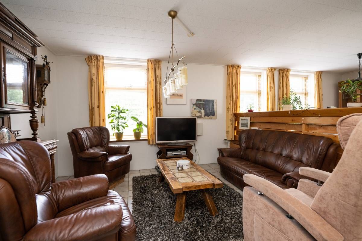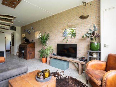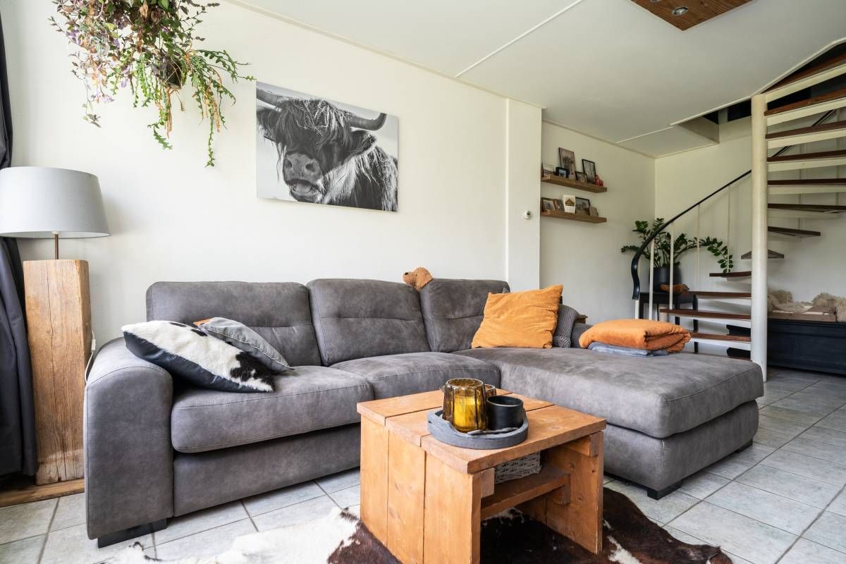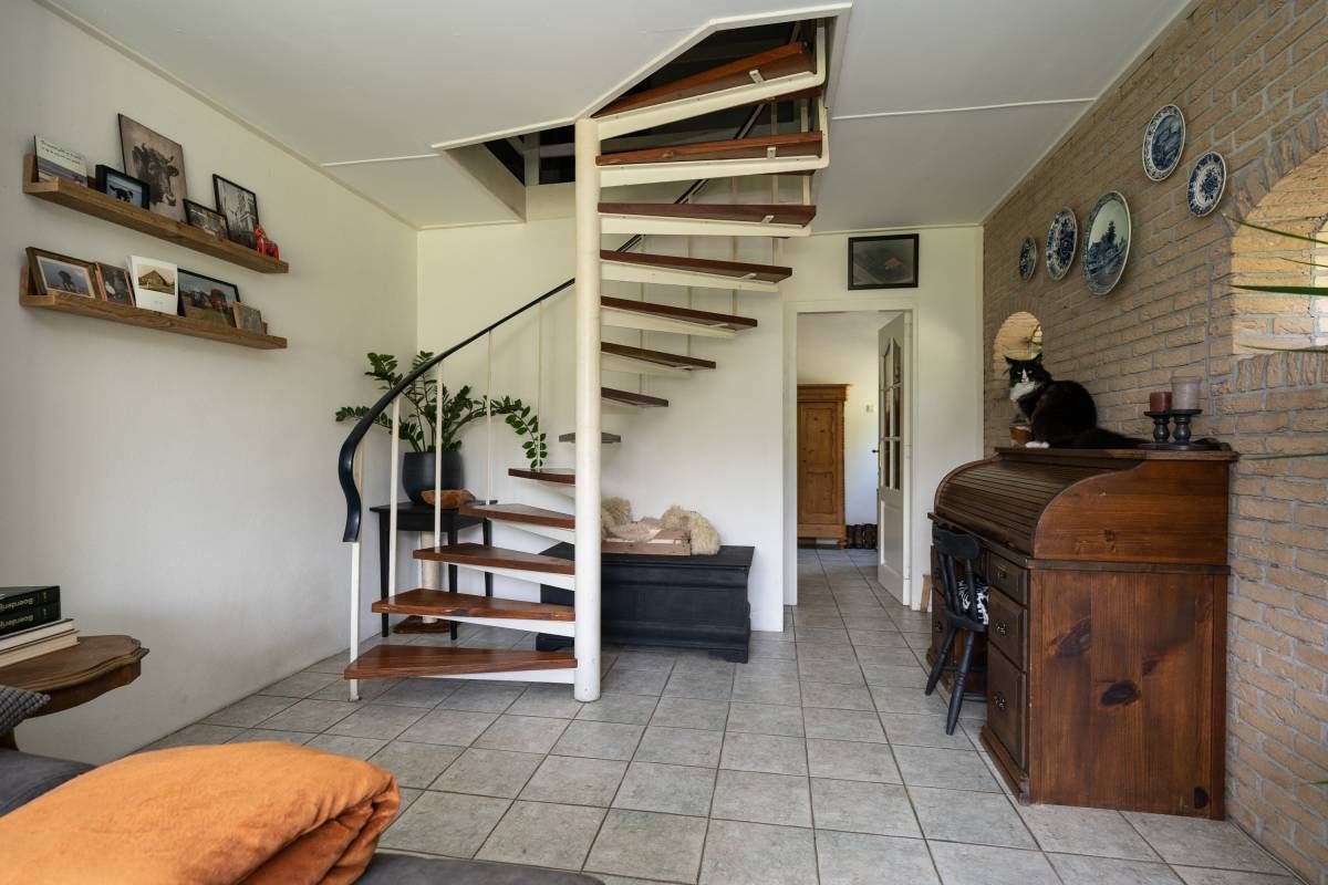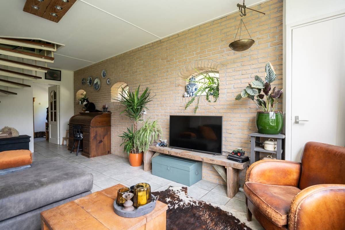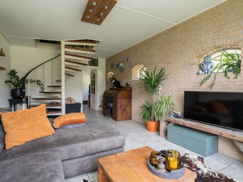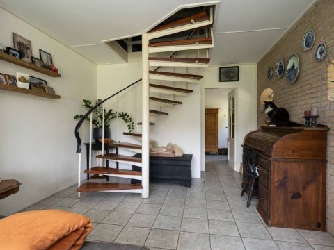 Aan de rechterzijde van de woning een tweede woongedeelte met knusse woonkamer (v.v. plavuizenvloer), hier een prettige lichtinval. Middels de spiltrap in de ruimte bereikt u de verdieping van dit woongedeelte.