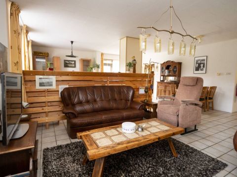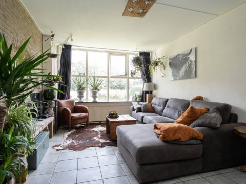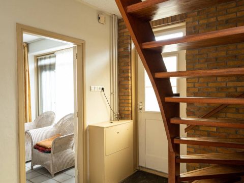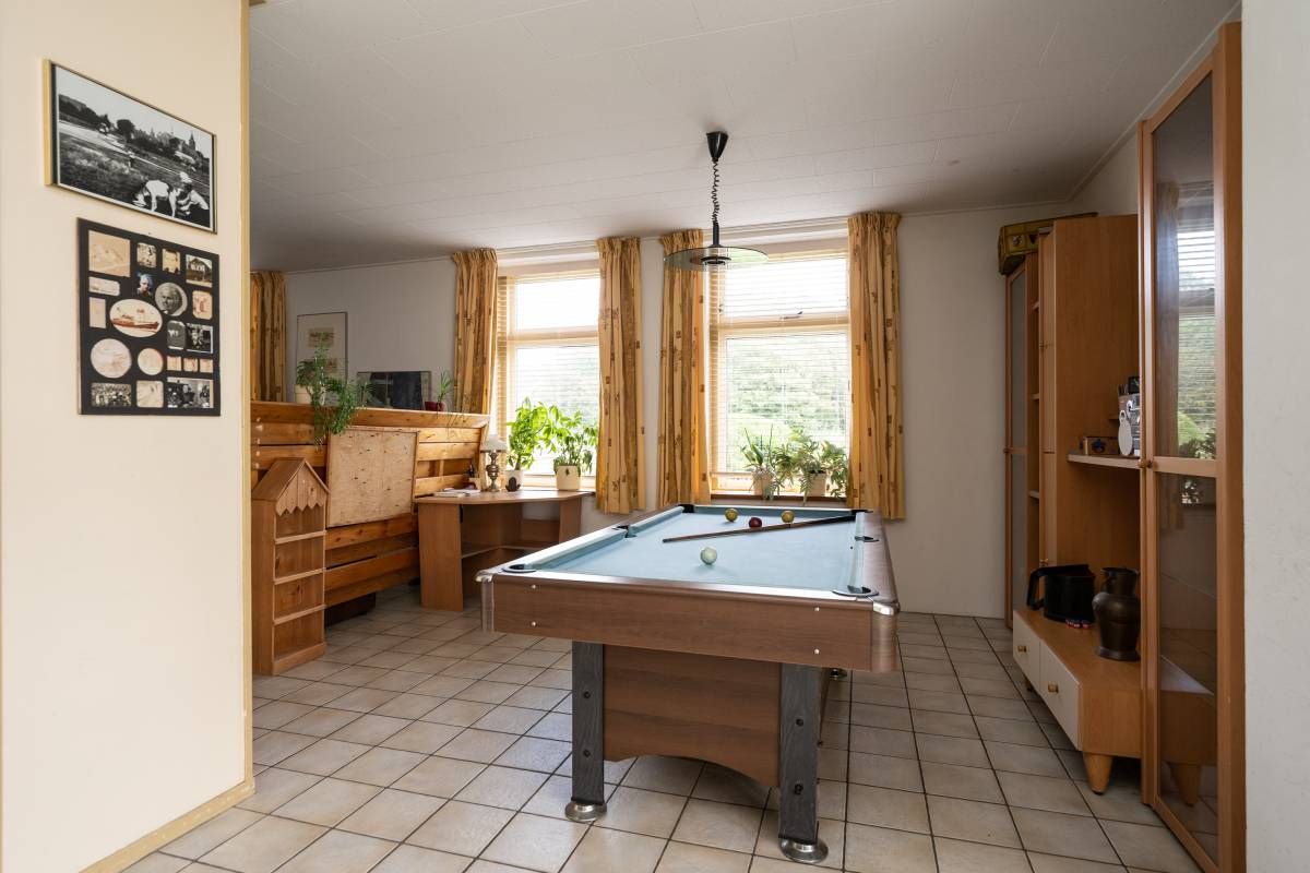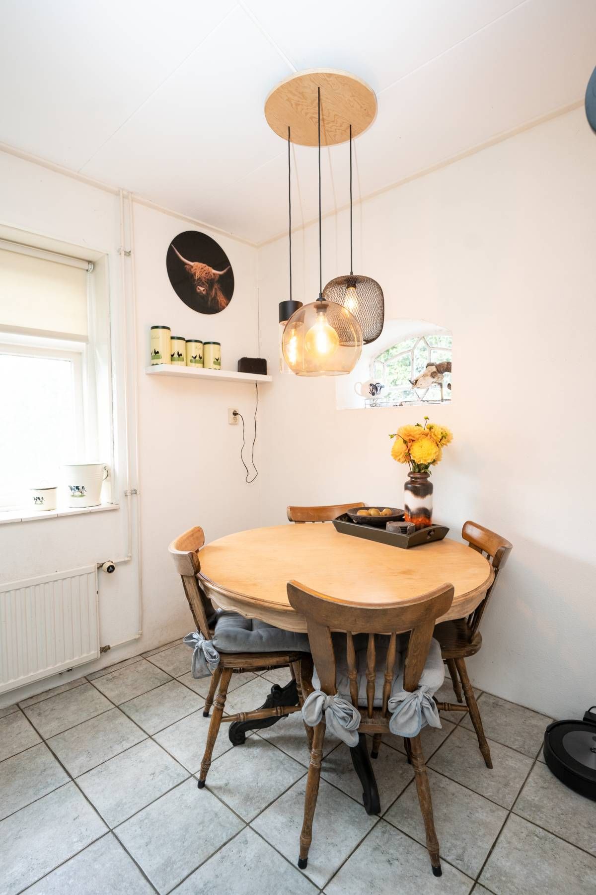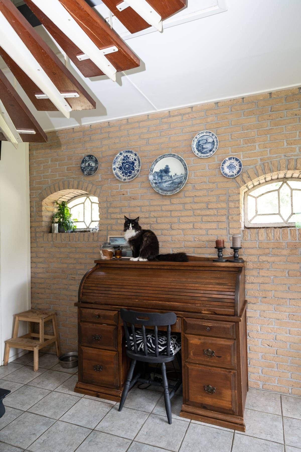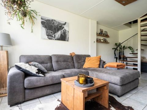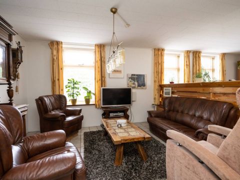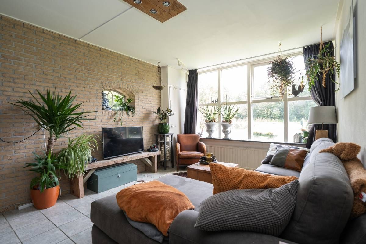 Aan de rechterzijde van de woning een tweede woongedeelte met knusse woonkamer (v.v. plavuizenvloer), hier een prettige lichtinval. Middels de spiltrap in de ruimte bereikt u de verdieping van dit woongedeelte.
