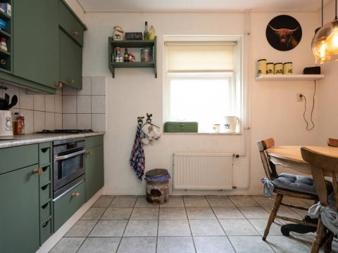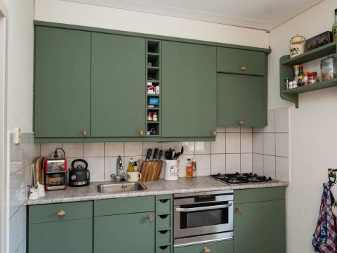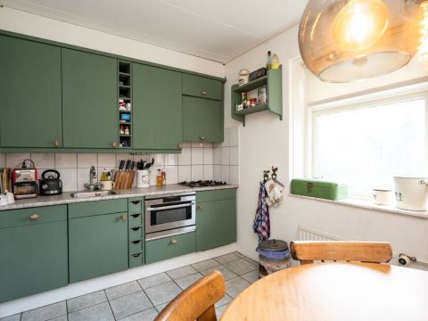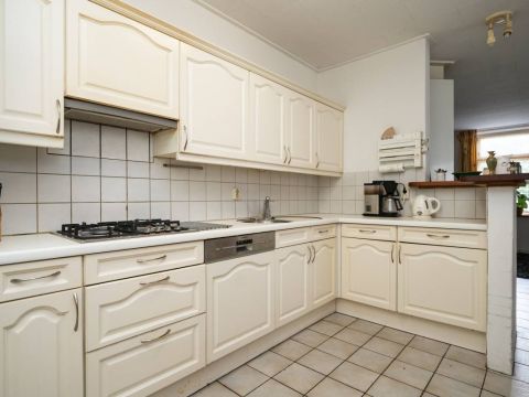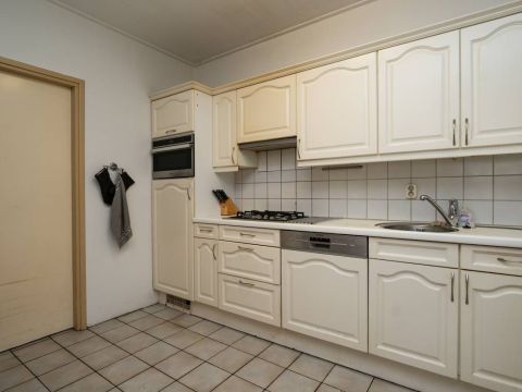 De keuken is eenvoudig maar biedt voldoende werk– en kastruimte en is voorzien van diverse inbouwapparatuur.
