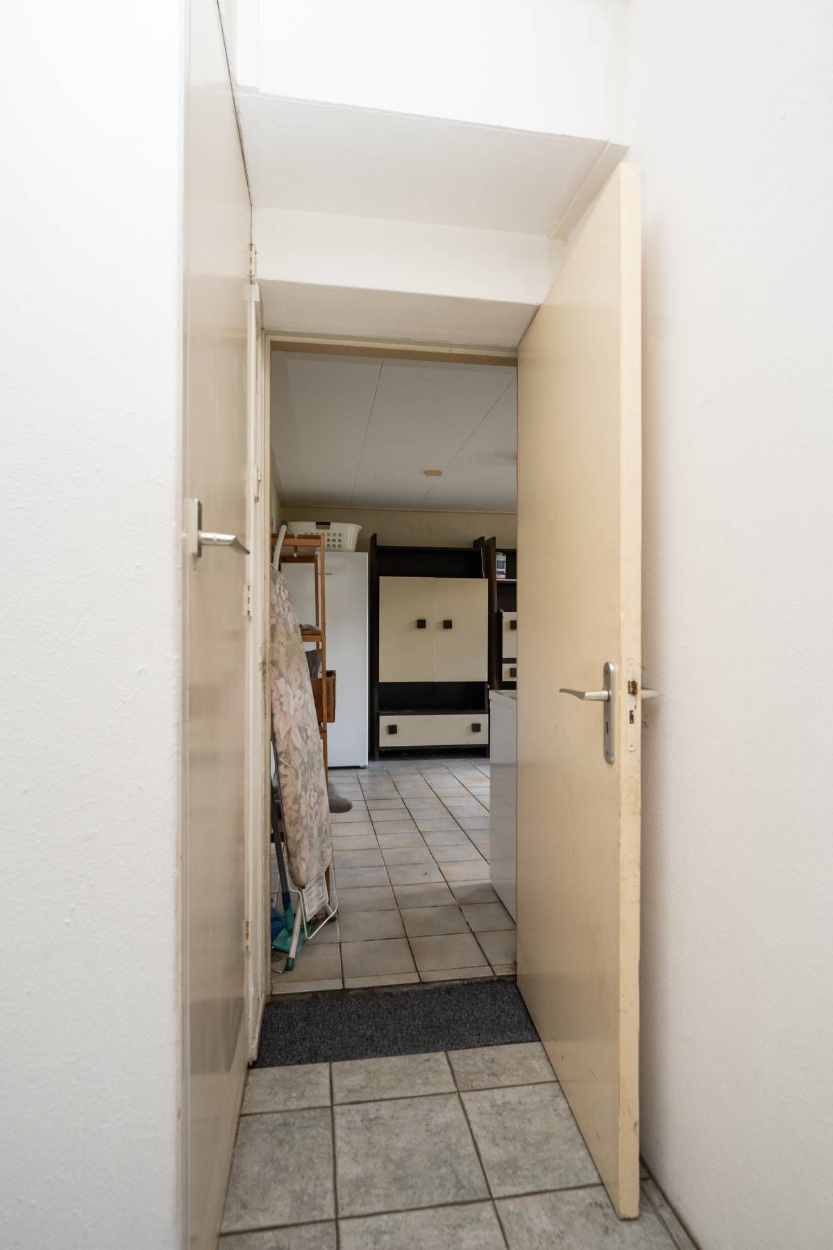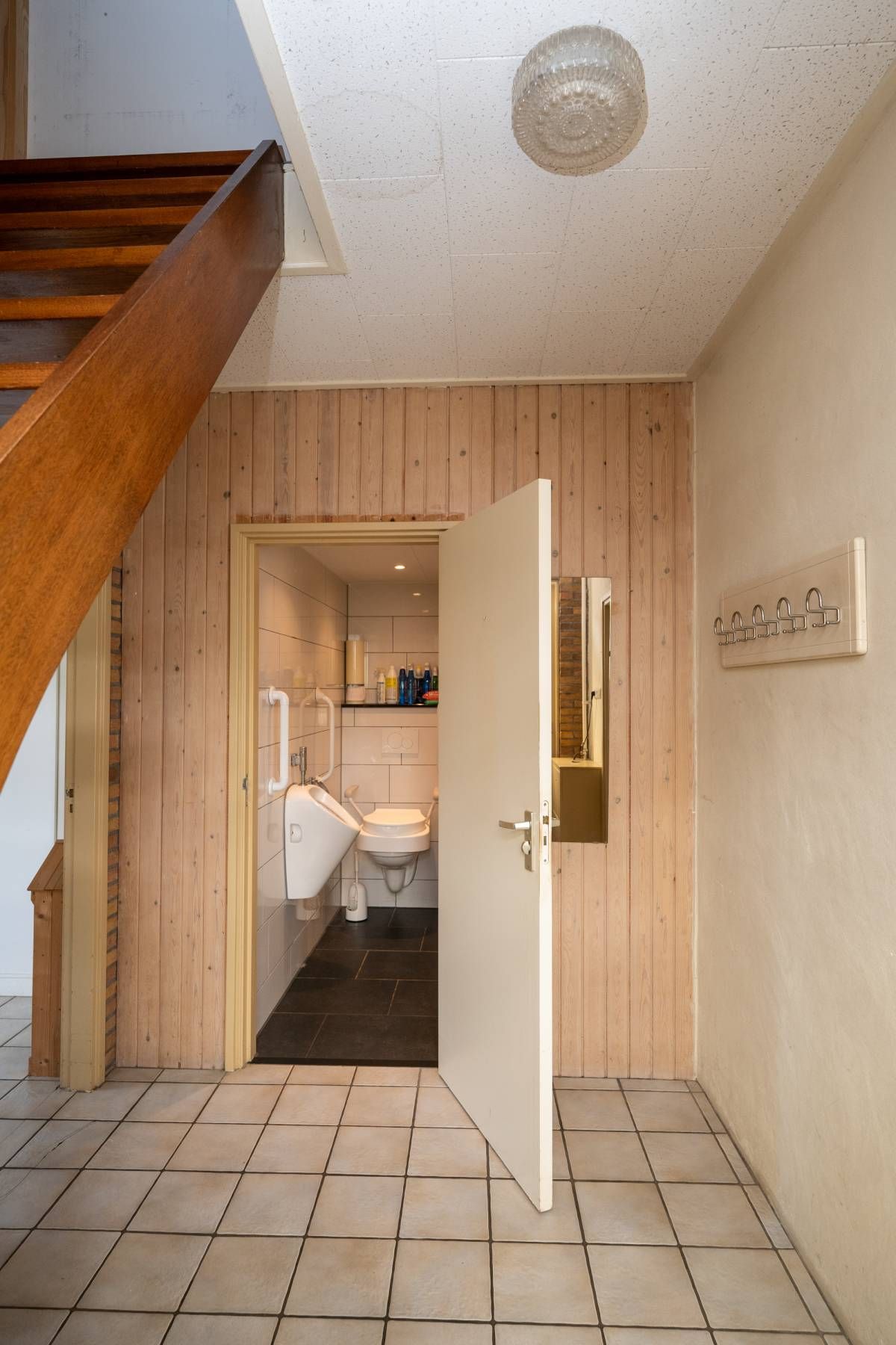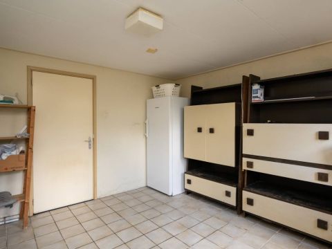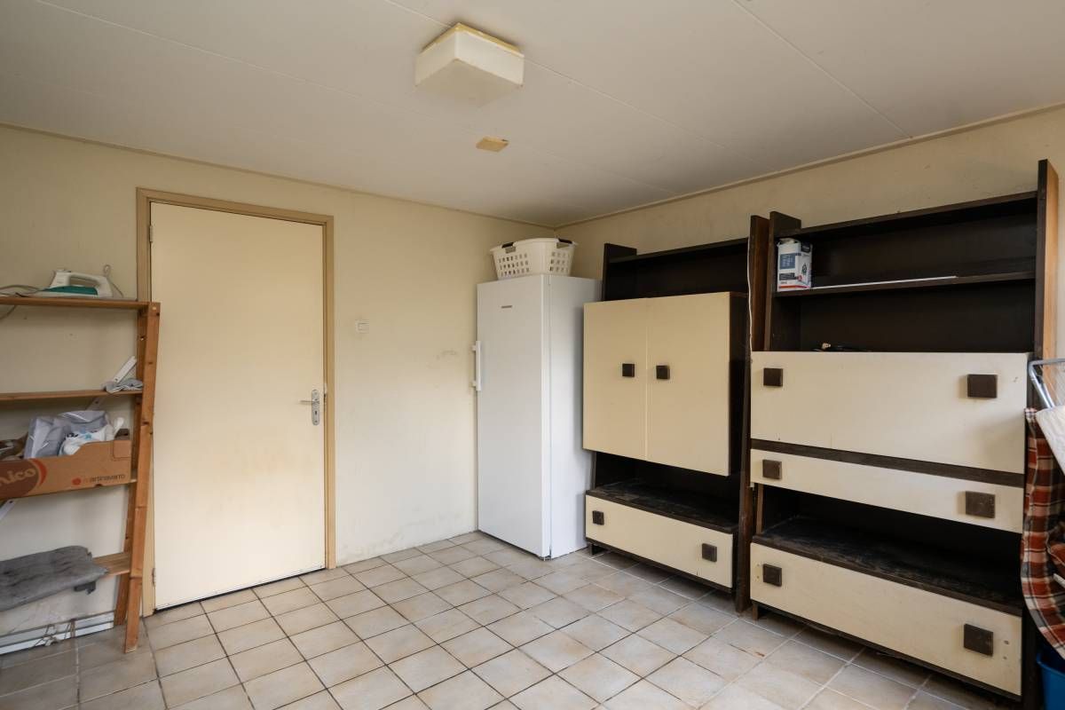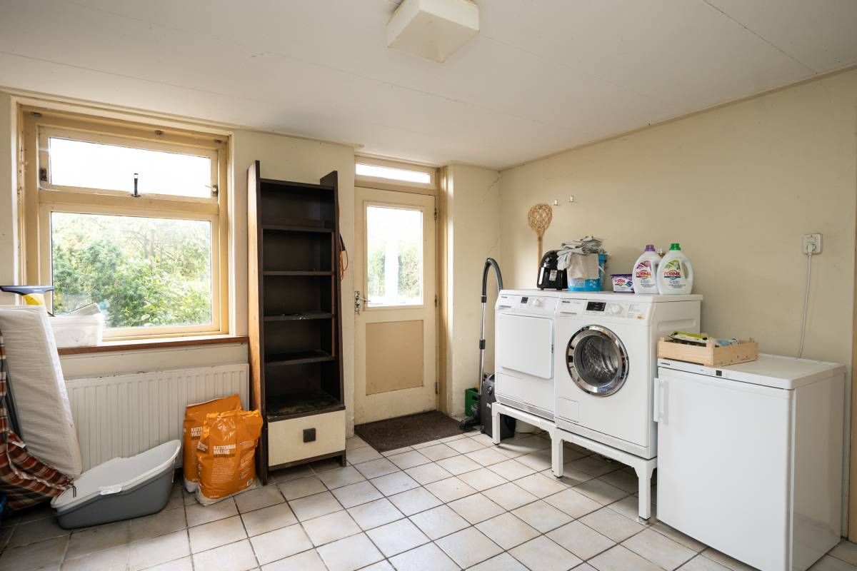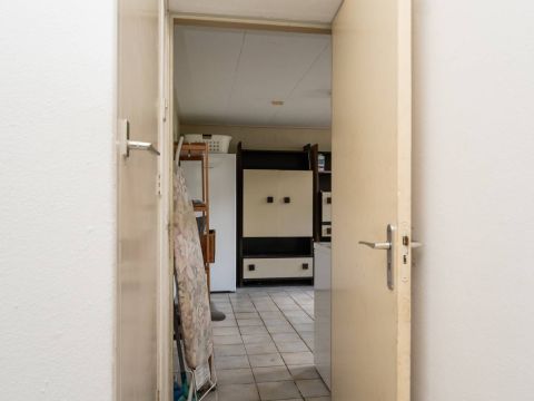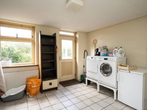 Aansluitend bevindt zich hier de berging met de aansluitingen voor wassen en drogen. Via de achterdeur toegang tot de tuin en het terras.