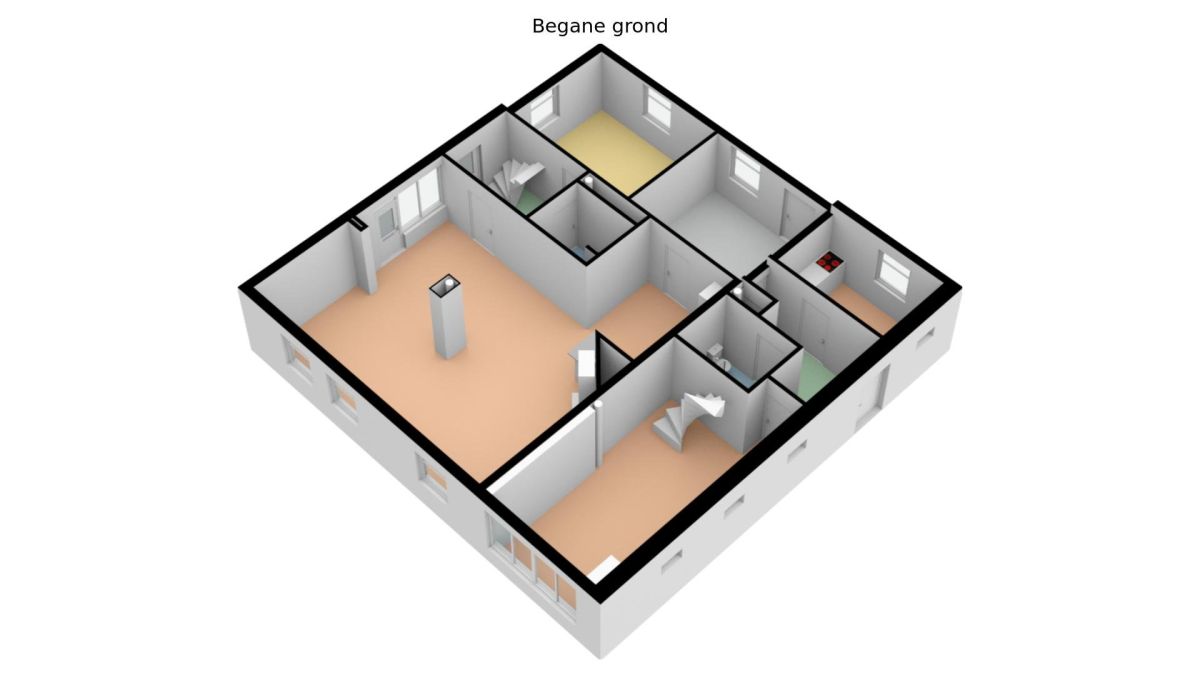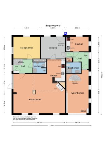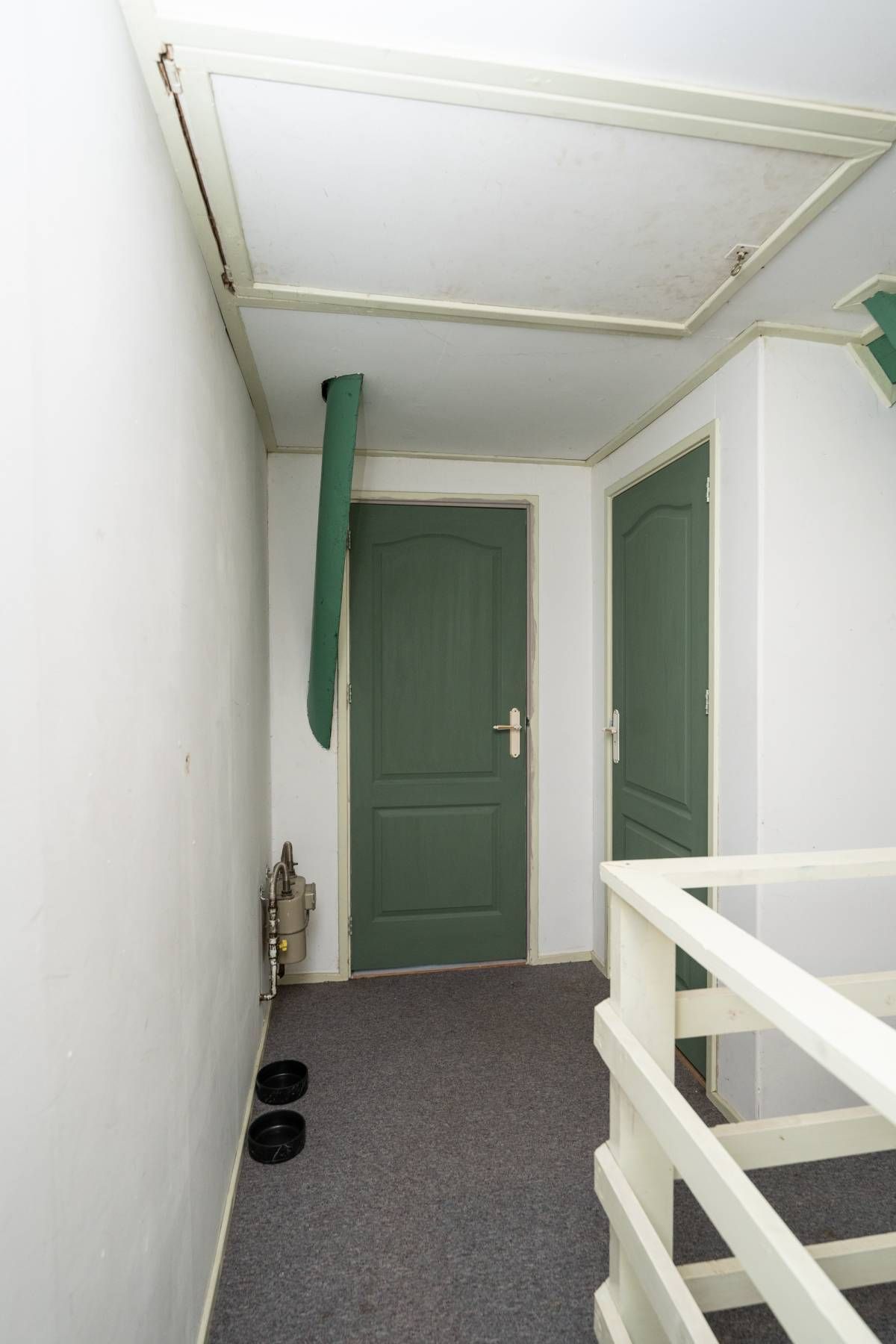 Verder een berging, hal met trapopgang, badkamer en slaapkamer.