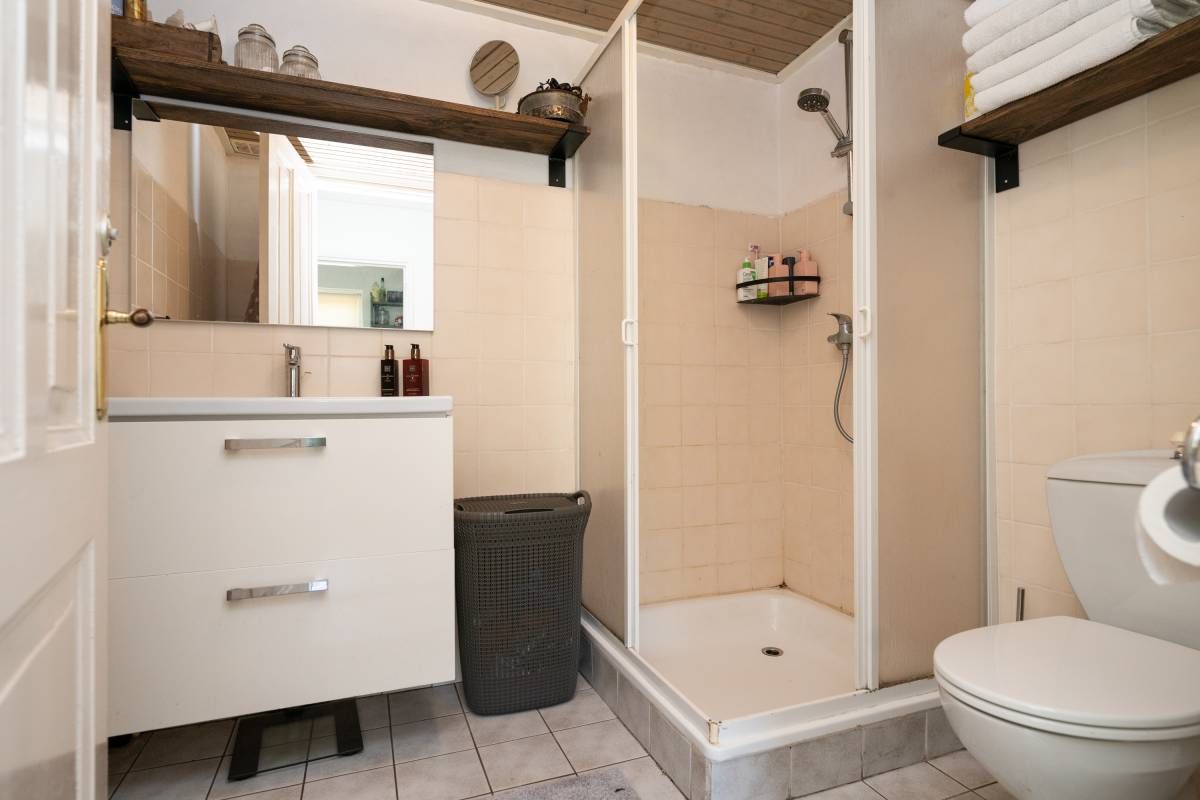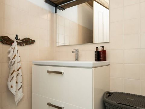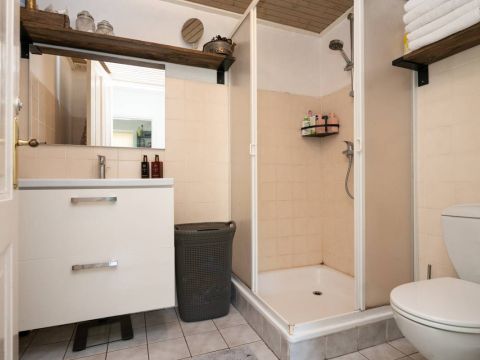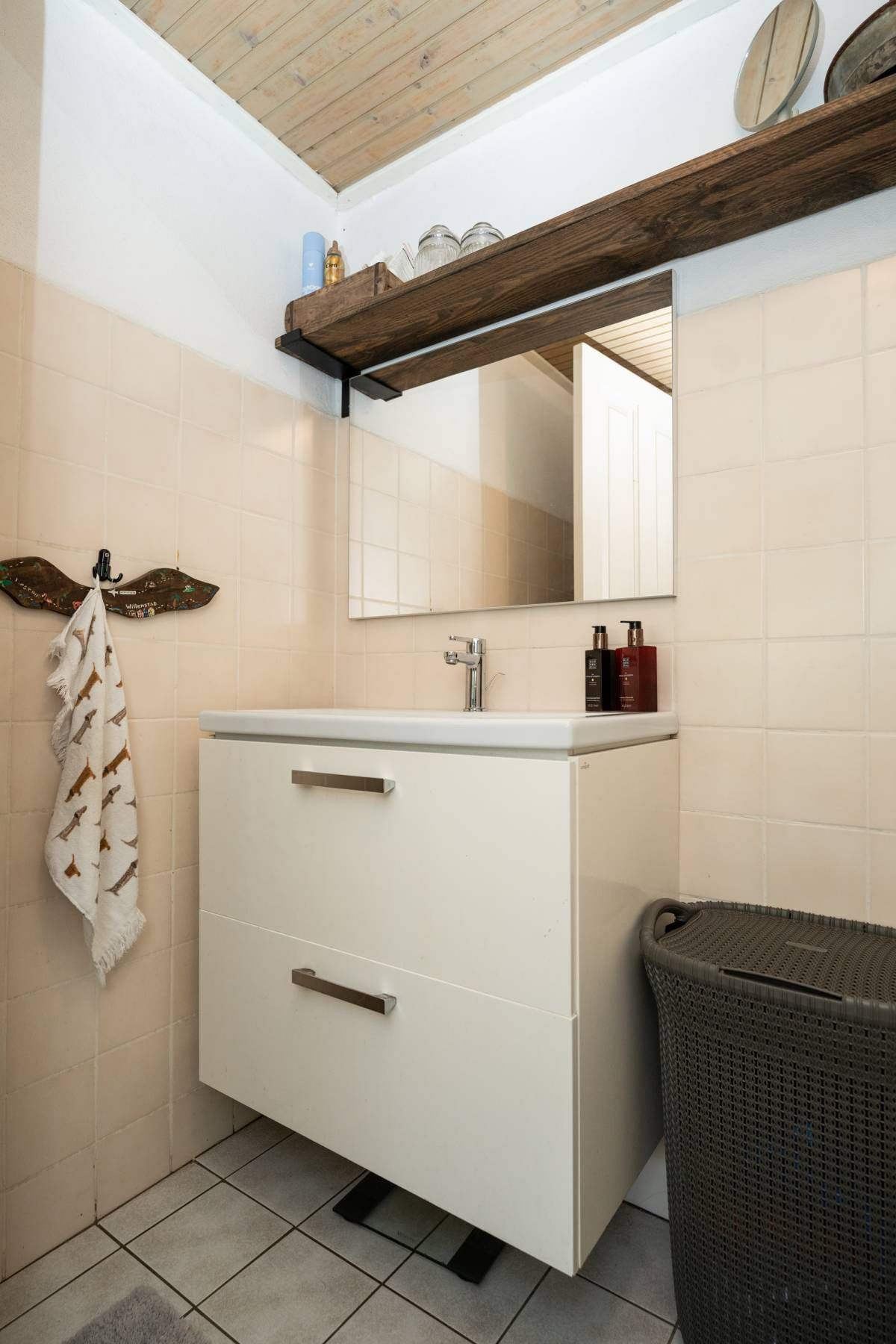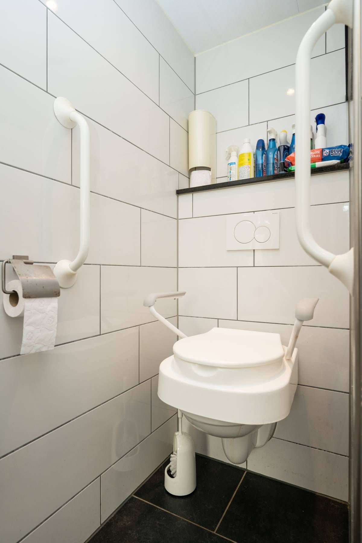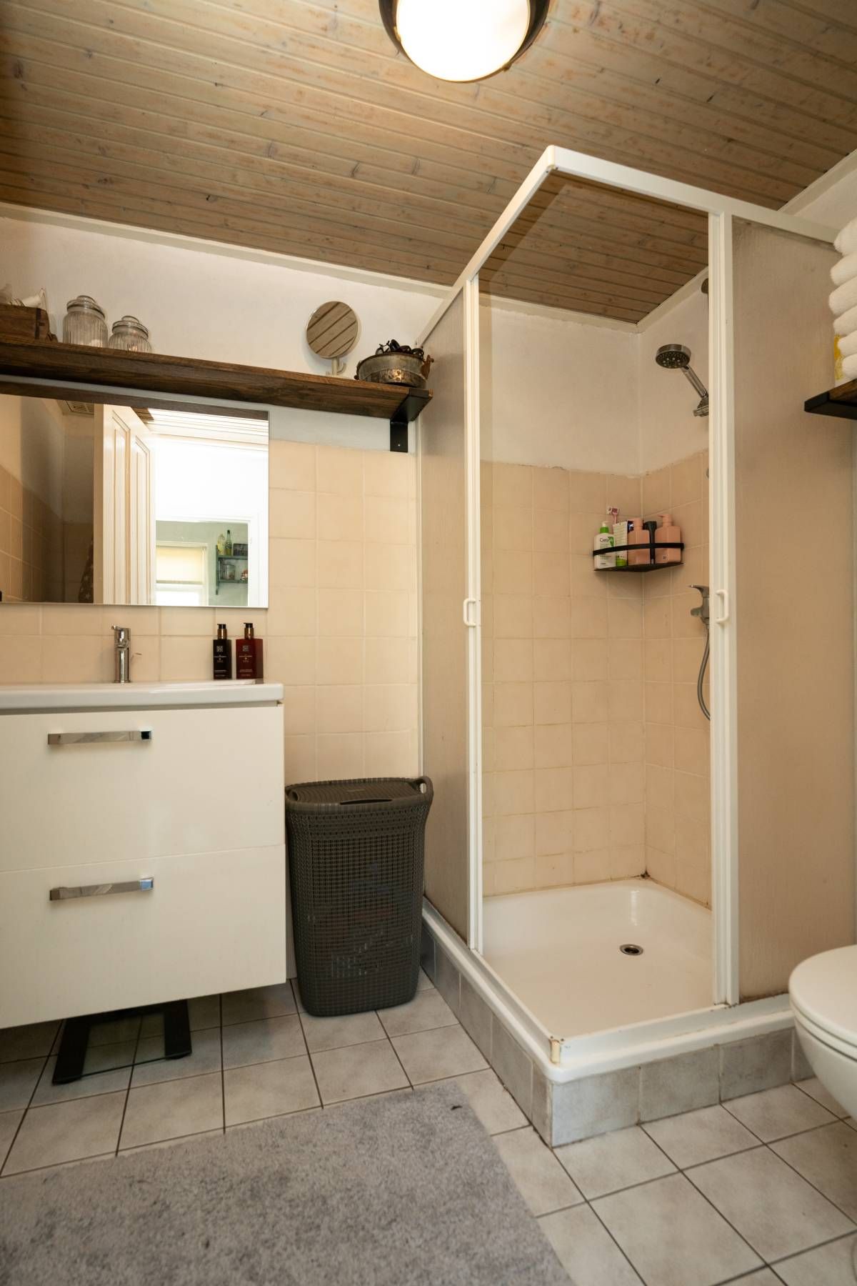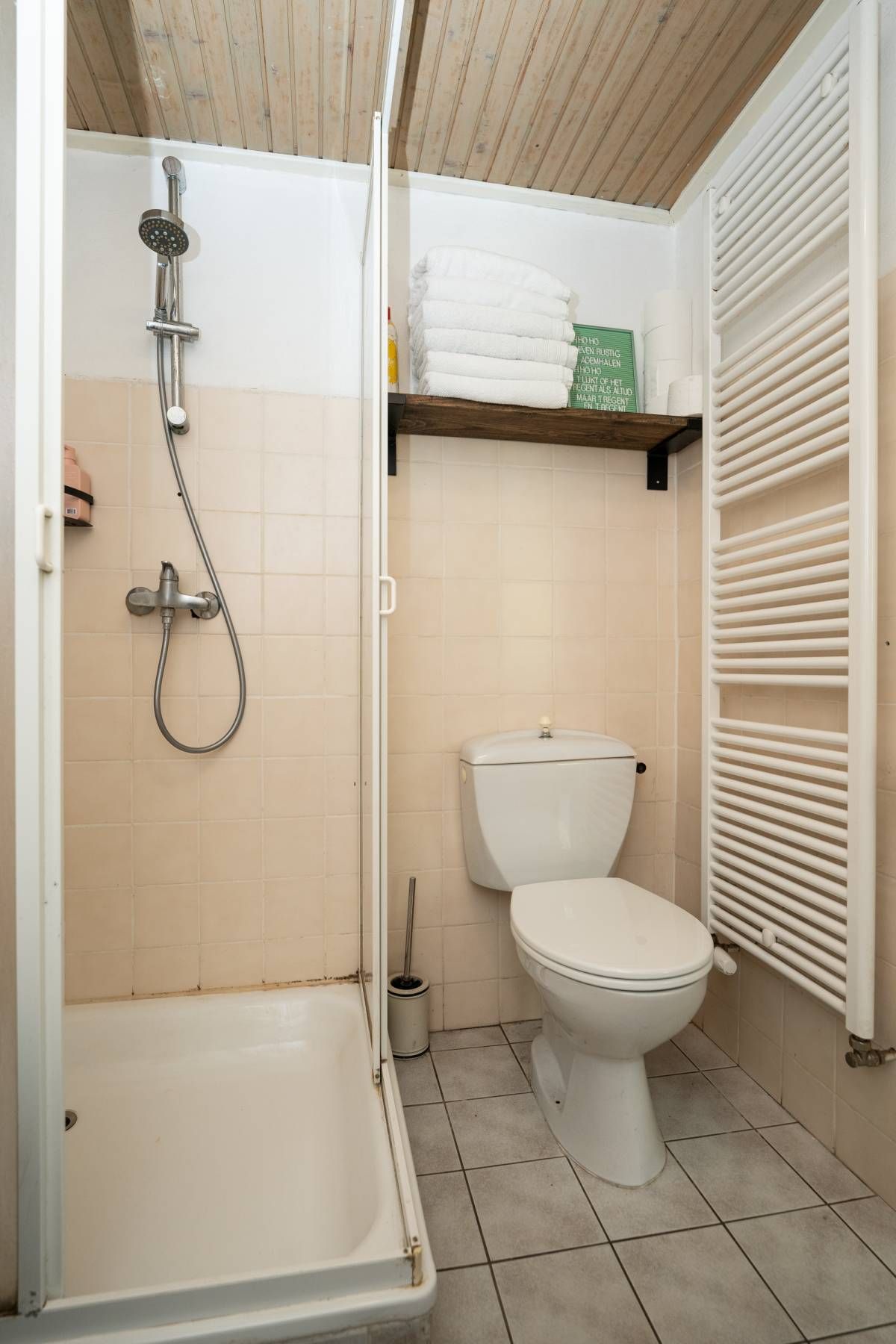 Tevens vindt u op de begane grond een ruime badkamer met douche, wastafelmeubel en toilet.